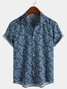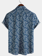 Men's Tropical Navy Blue Short Sleeve Summer Button Up Shirt