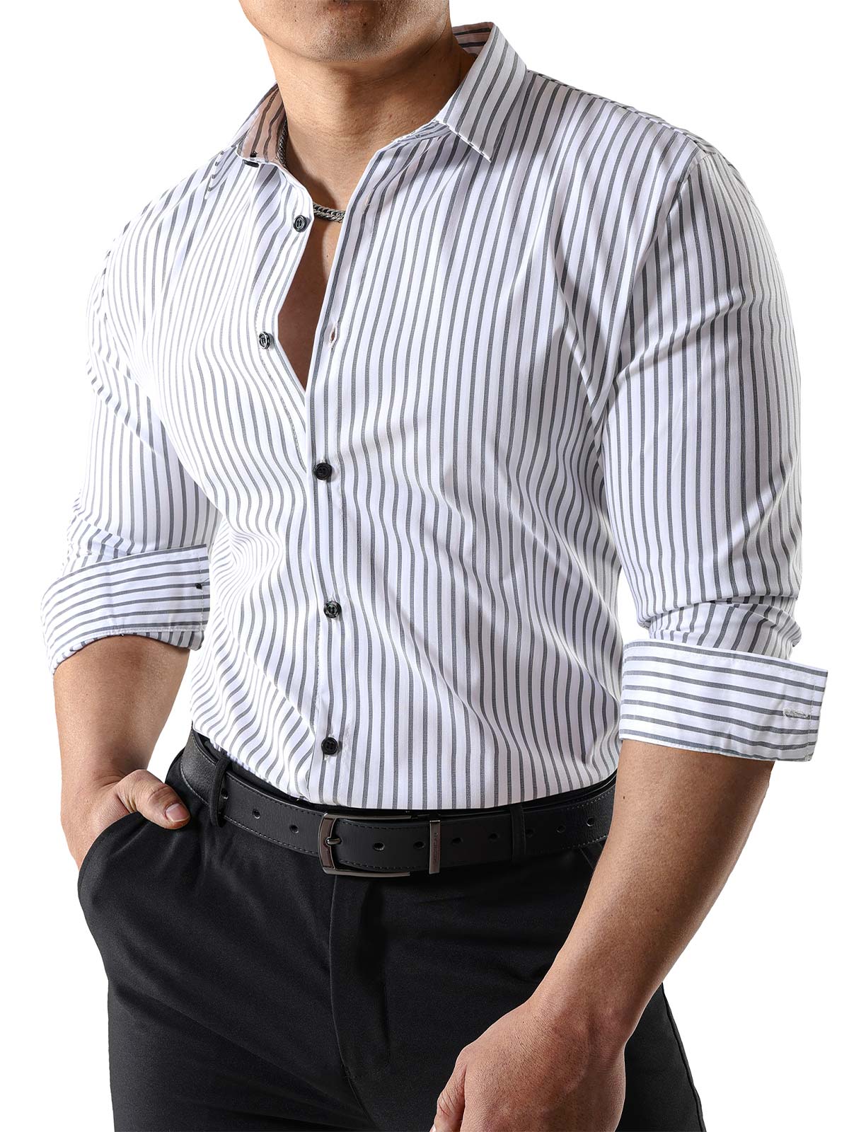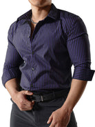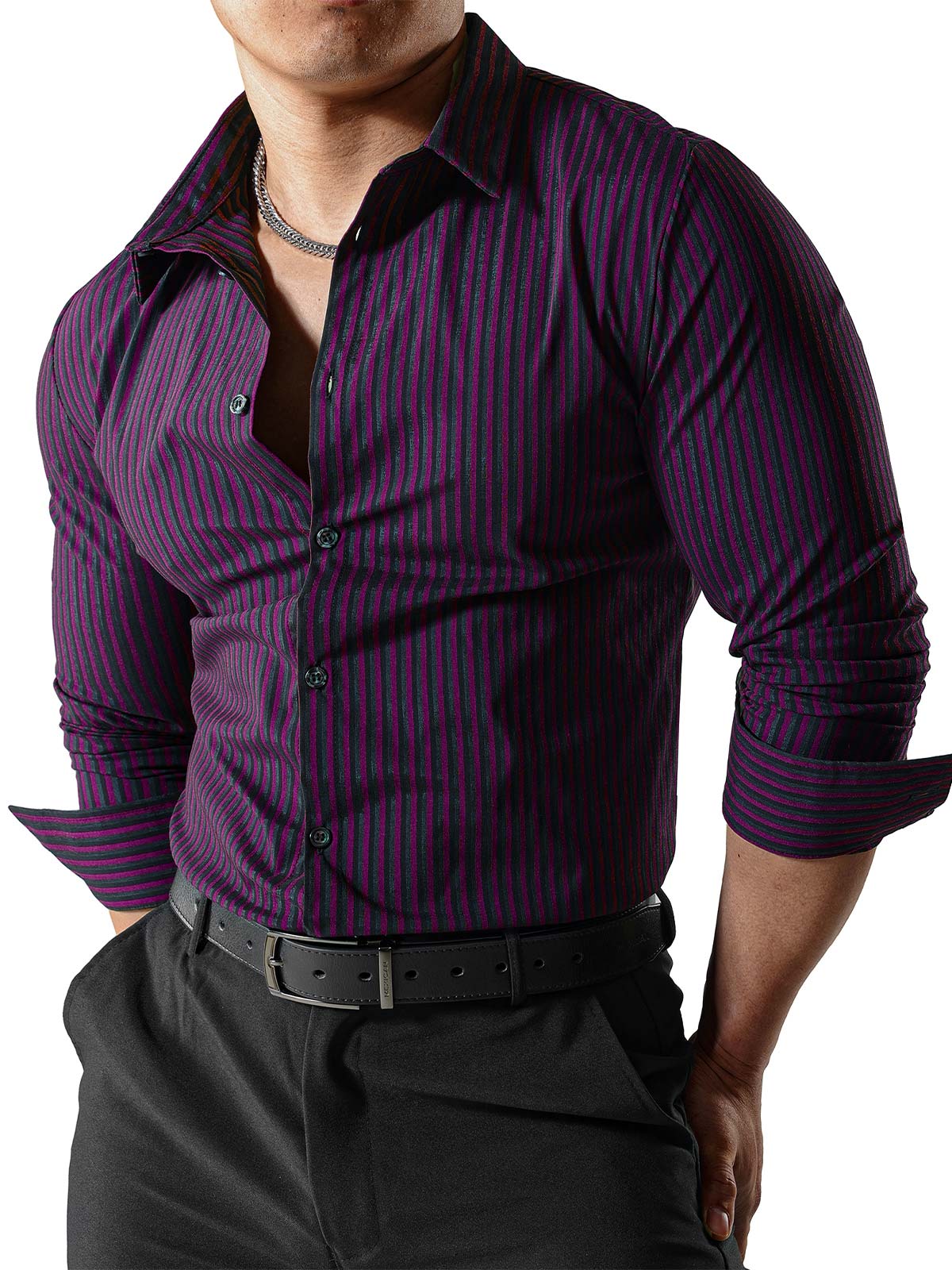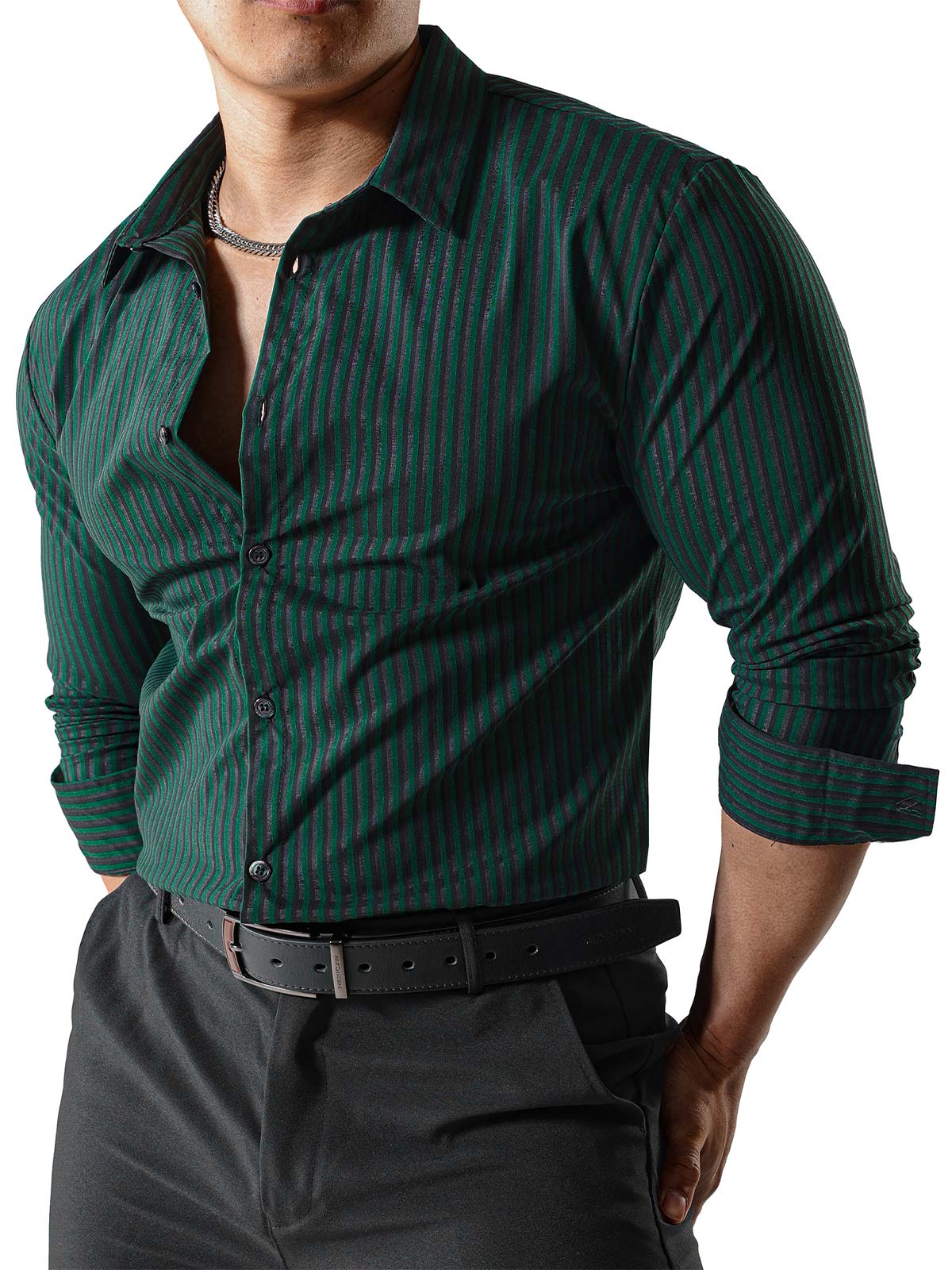 Men's Striped Long Sleeve Textured Wrinkle-Free Shirts