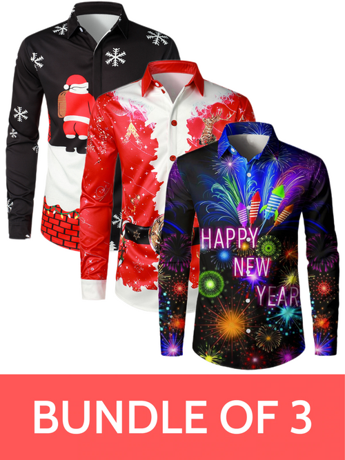 Men's Funny Christmas Happy New Year Holiday Button Long Sleeve Shirt