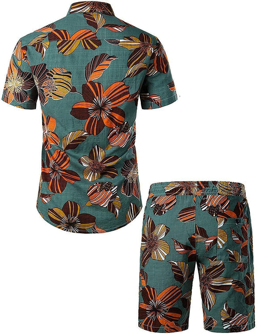 Men's Floral Print Vintage Holiday Brown Hawaiian Short Sleeve Shirt