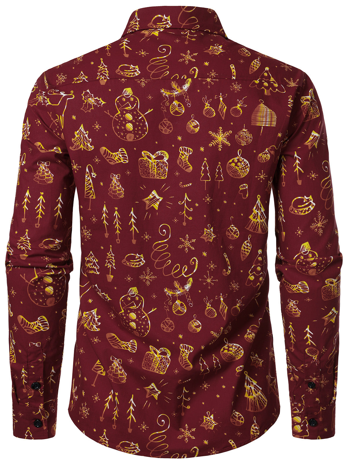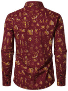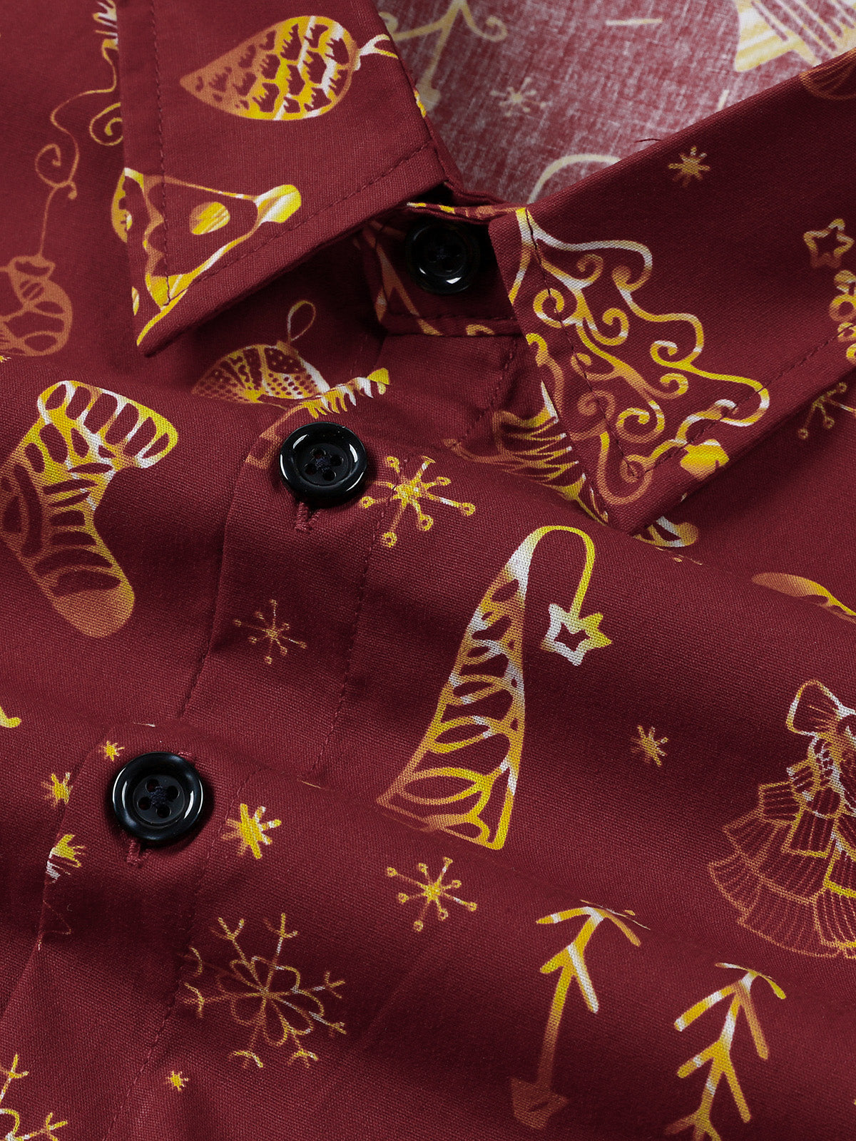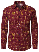 Men's Christmas Long Sleeve Xmas Party Holiday Cotton Shirt Red