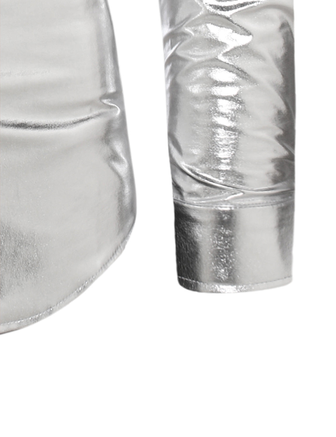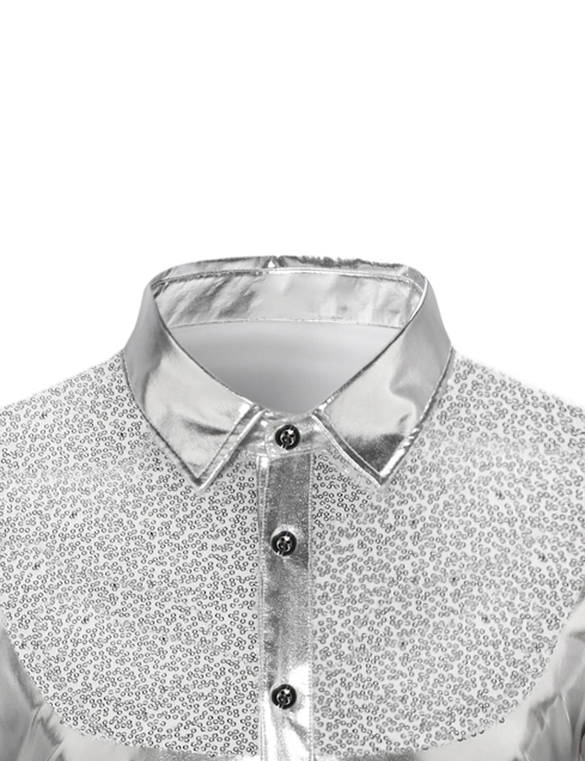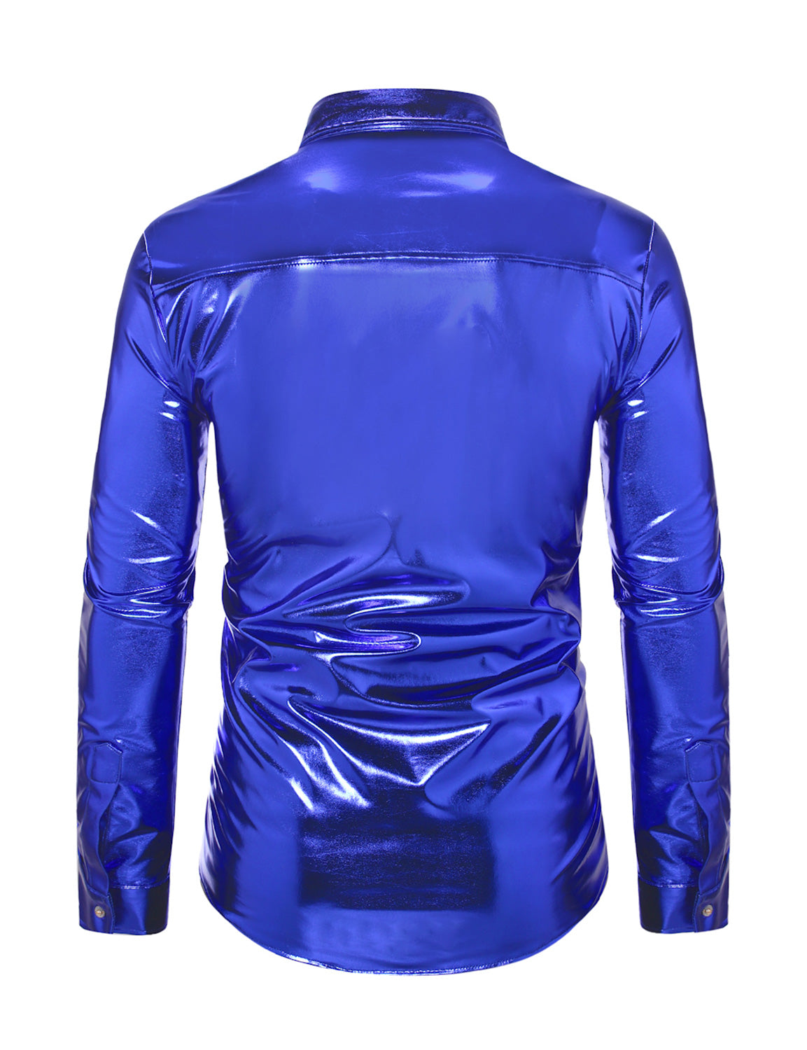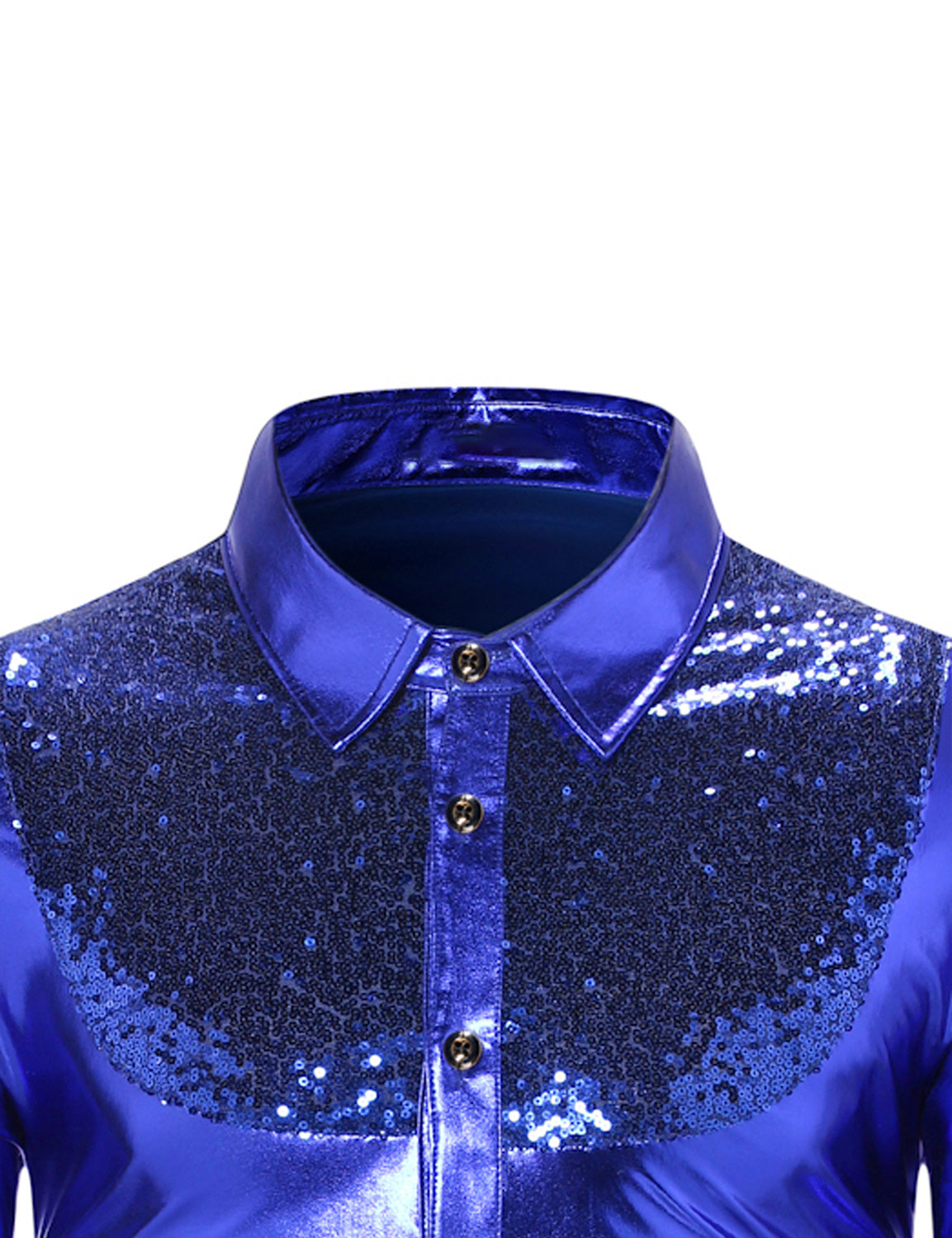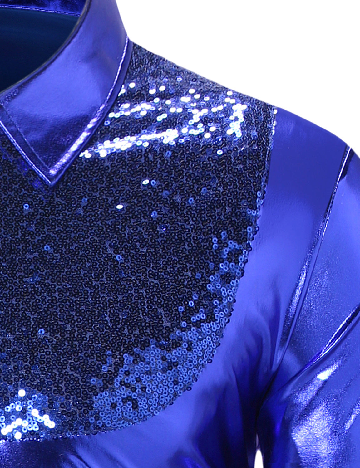 Men's Button Up Luxury Shiny Tuxedo Party Costume Long Sleeve Dress Shirt