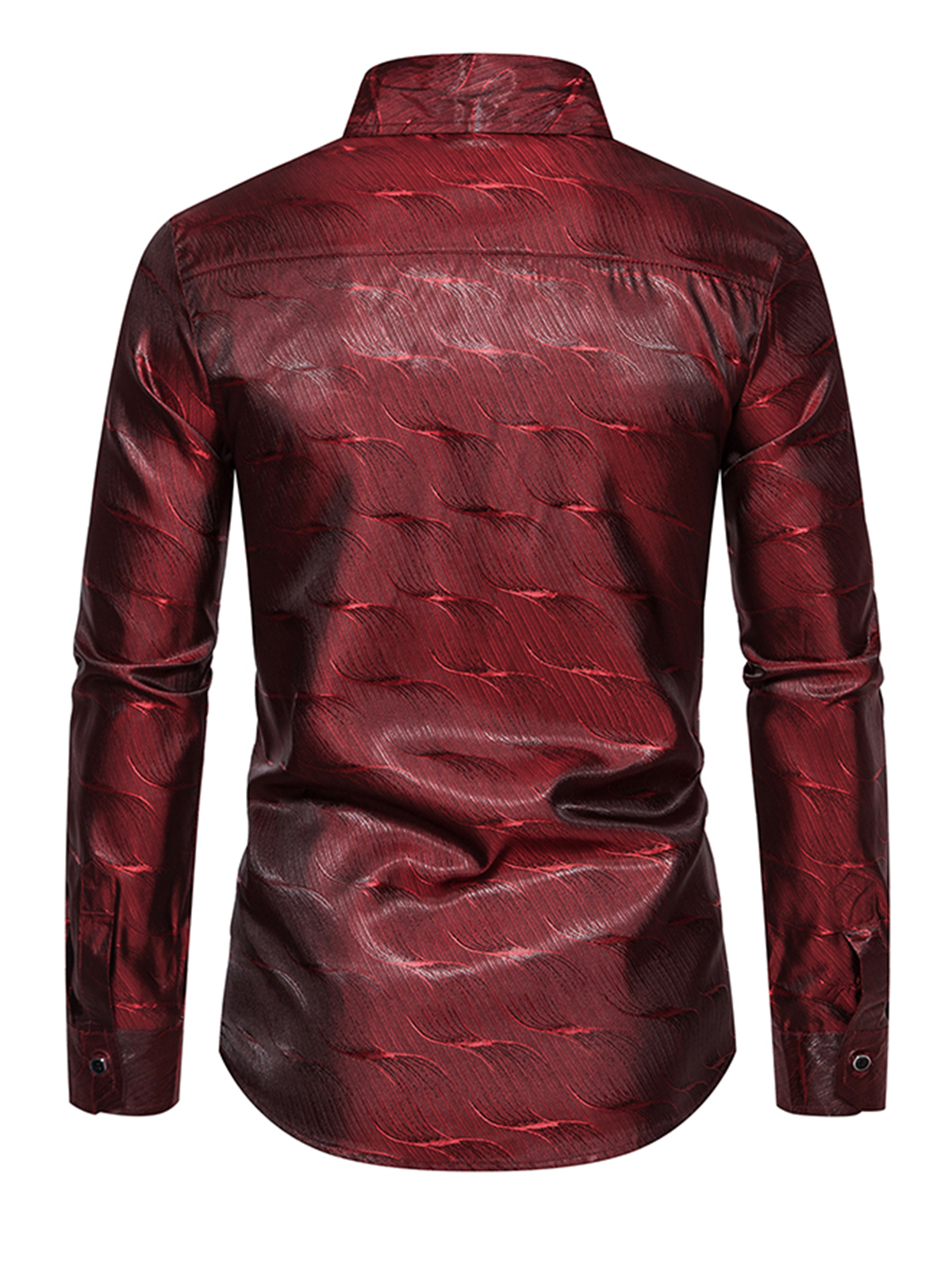 Men's Casual Party Button Up Jacquard Disco Long Sleeve Dress Shirt
