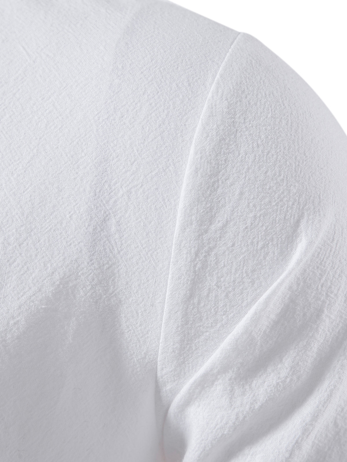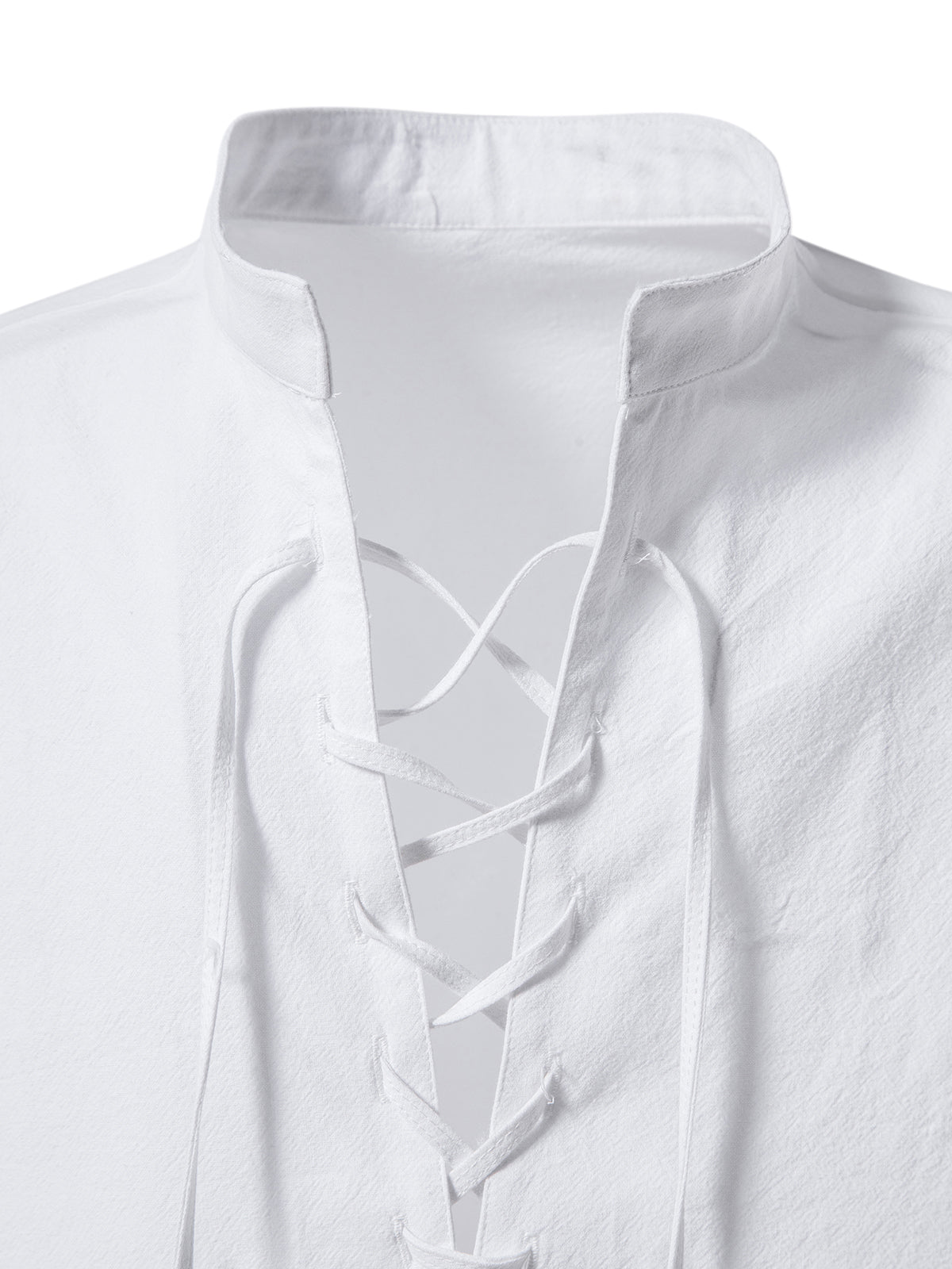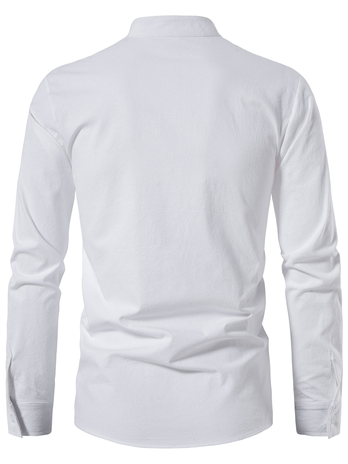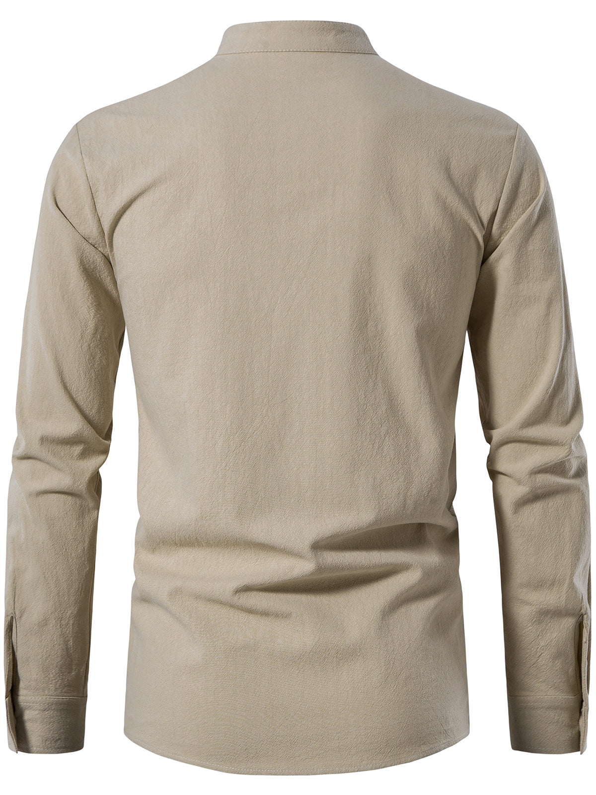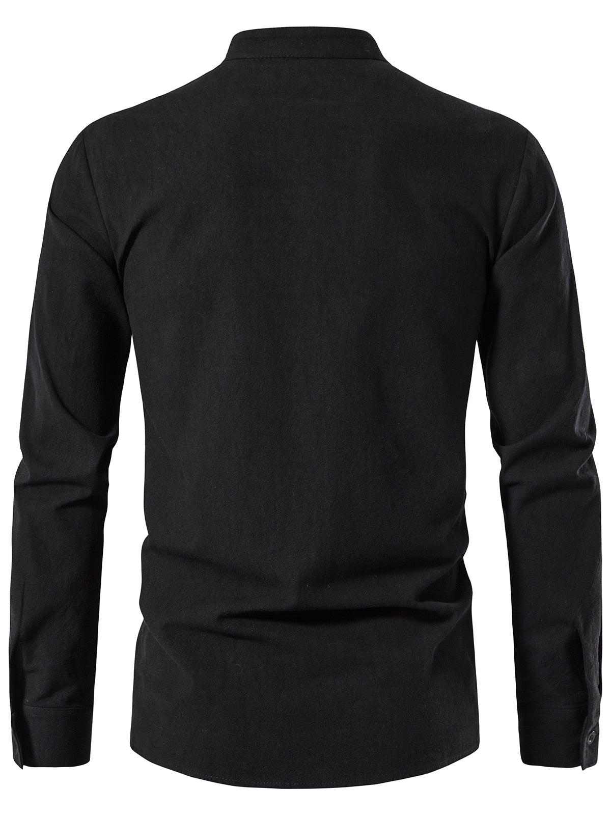 Men's Retro Solid Color Drawstring Breathable Cotton Long Sleeve Shirt