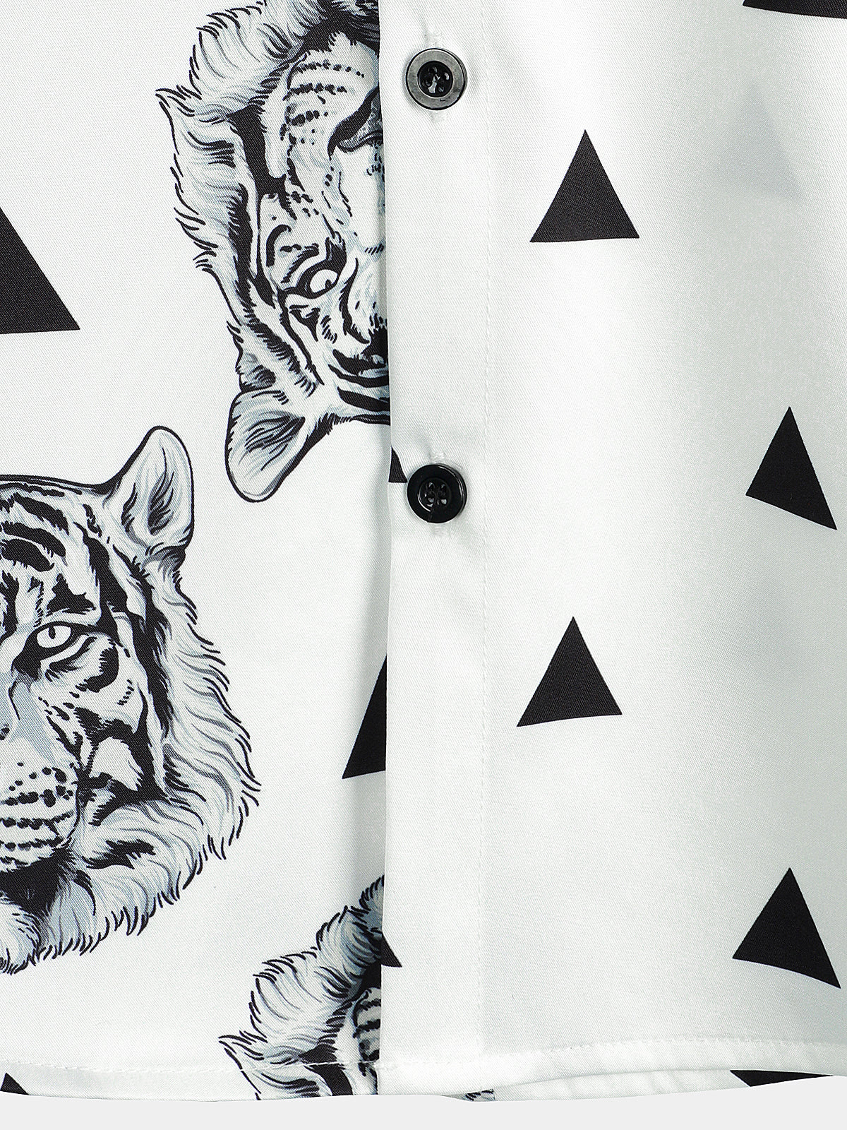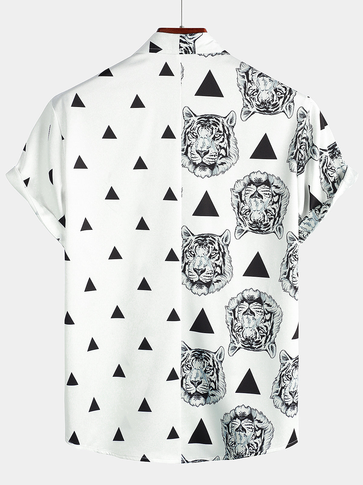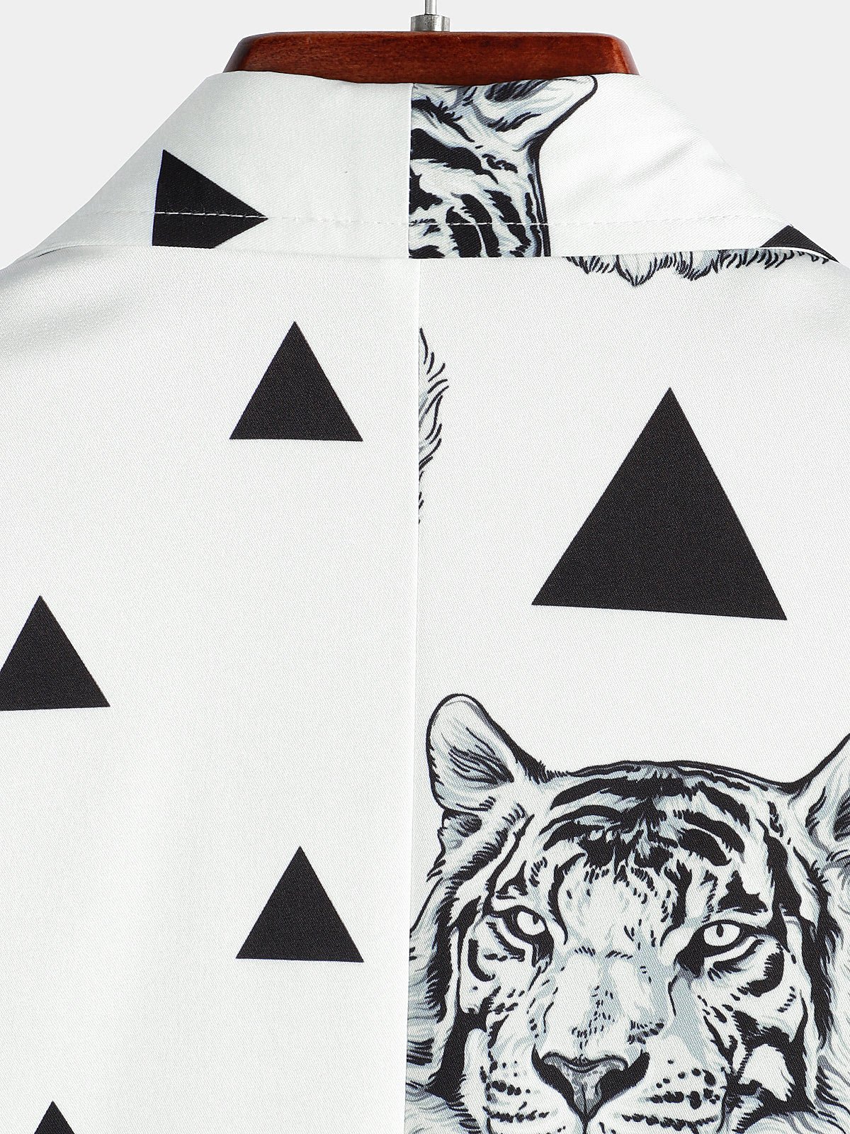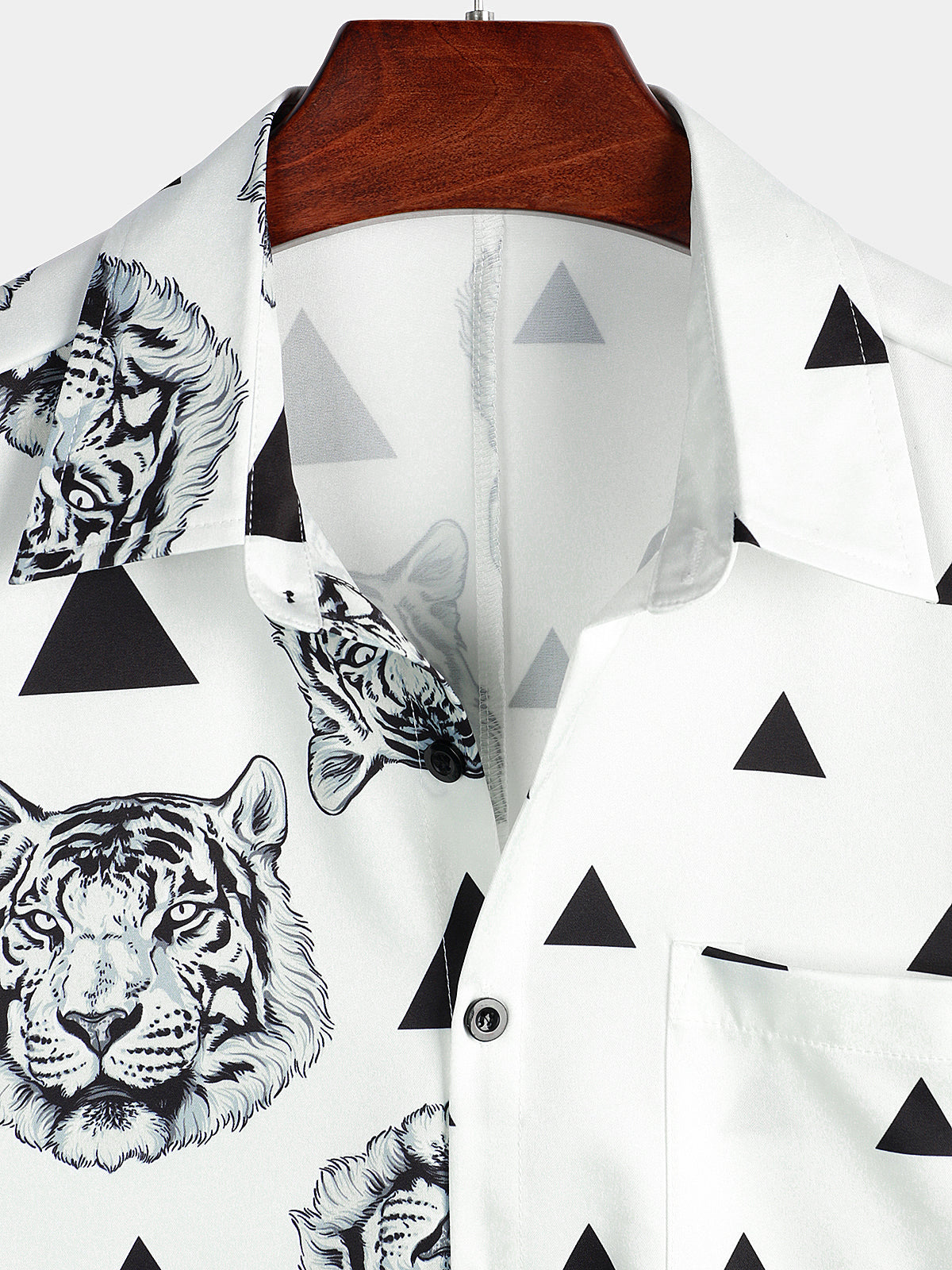 Men's Tiger Print Summer Pocket Casual Short Sleeve Shirt