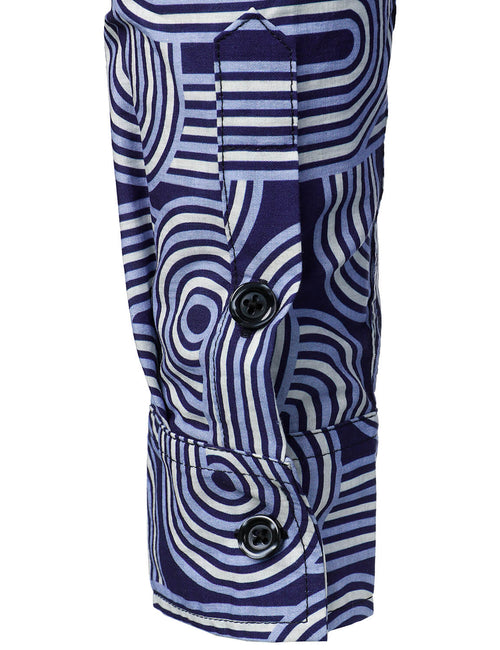 Men's Blue Cocktail Print Casual Long Sleeve Cotton Holiday Parties Shirt