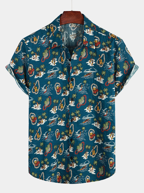 Men's Casual Holiday Short Sleeve Button Up Retro Shirt