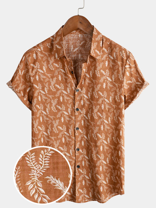 Men's Floral Print Vintage Holiday Brown Hawaiian Short Sleeve Shirt