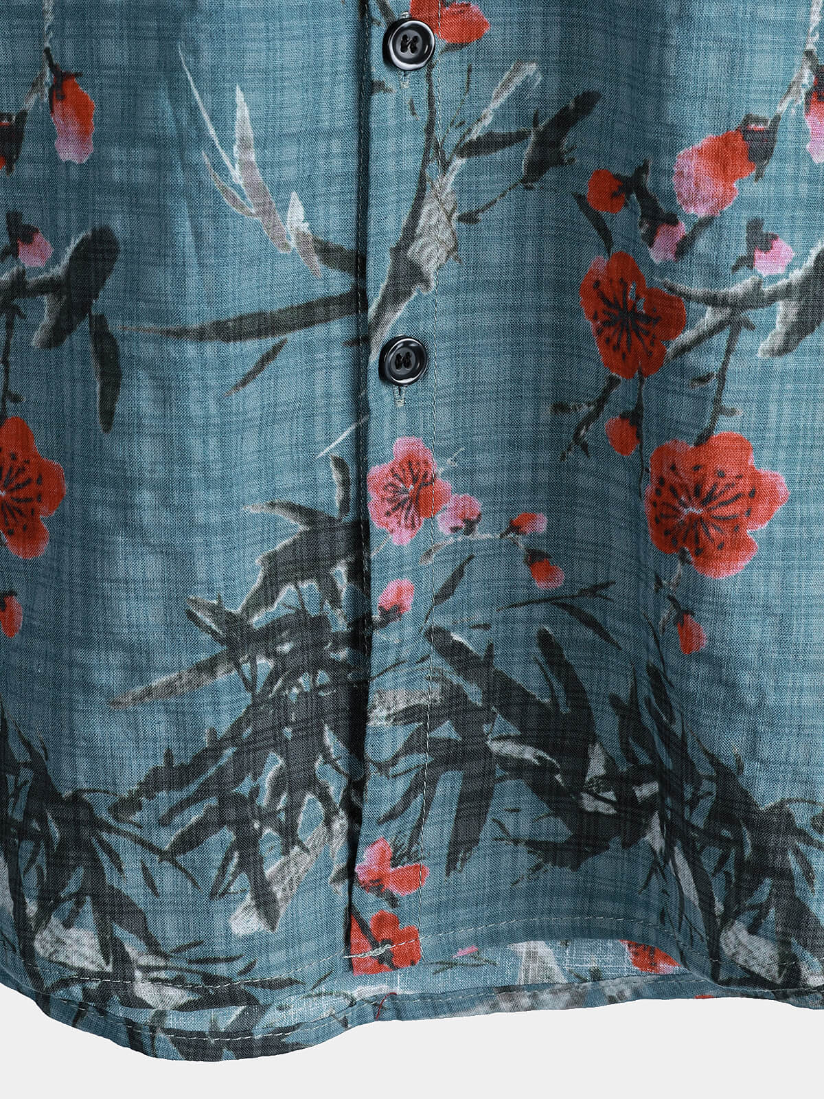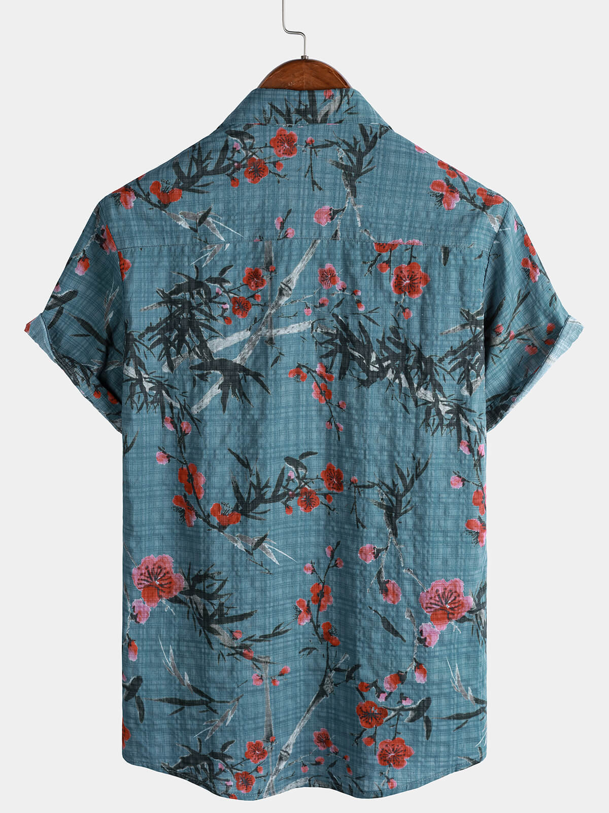 Men's Blossom Print Summer Holiday Short Sleeve Shirt