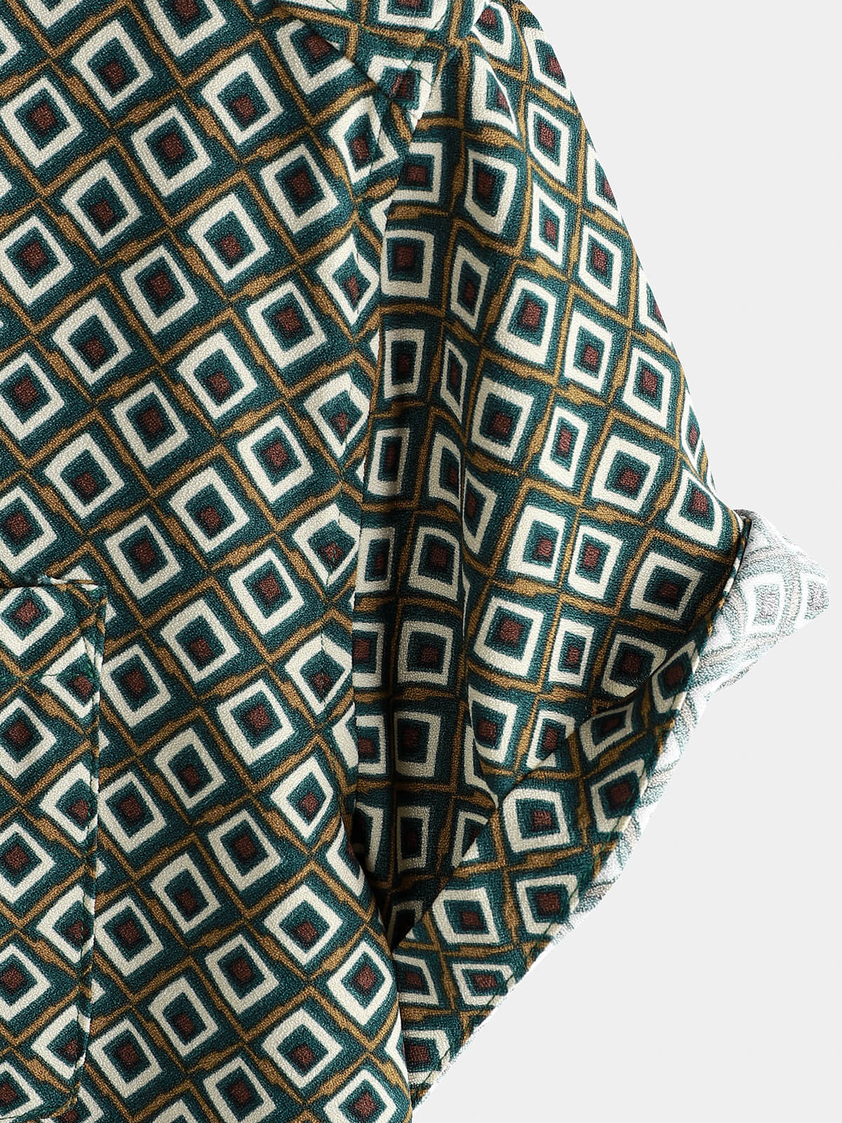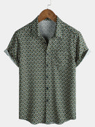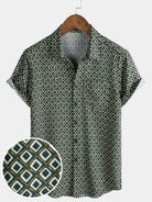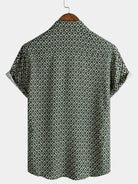 Men's Geometric Print Holiday Pocket Short Sleeve Casual Shirt