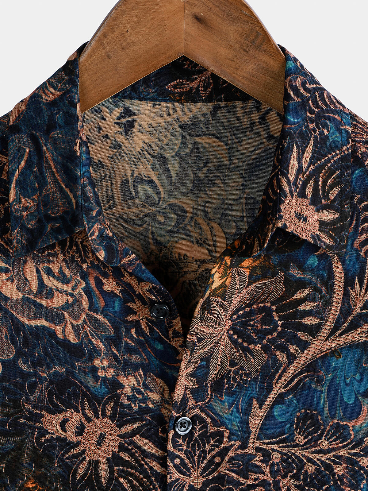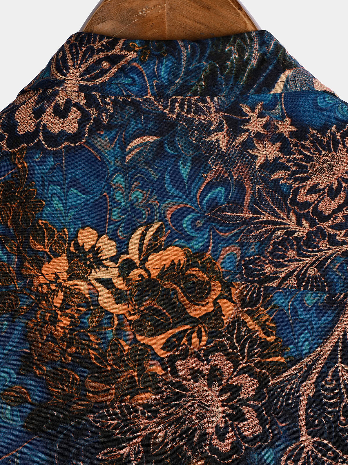 Men's Retro Floral 100%Rayon Short Sleeve Resort Shirt