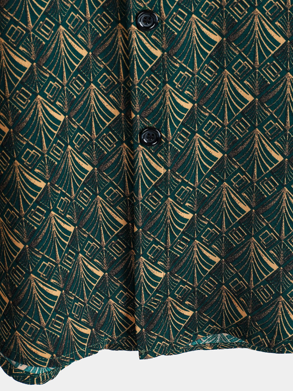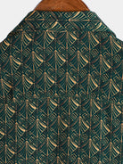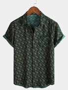 Men's Retro Geometric Print Pocket Short Sleeve Holiday Shirt