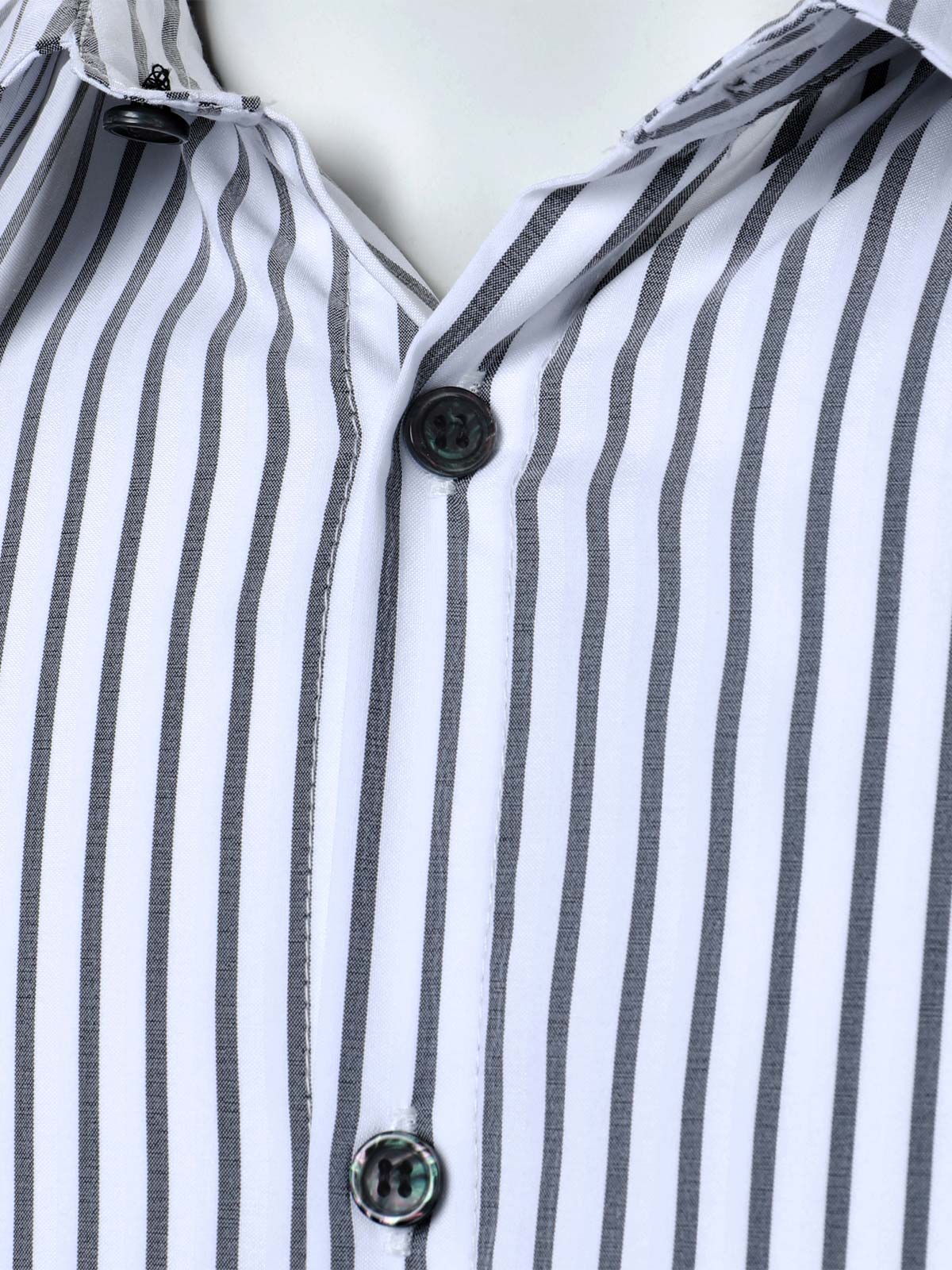 Men's Summer Black And White Vertical Striped Pocket Short Sleeve Shirt