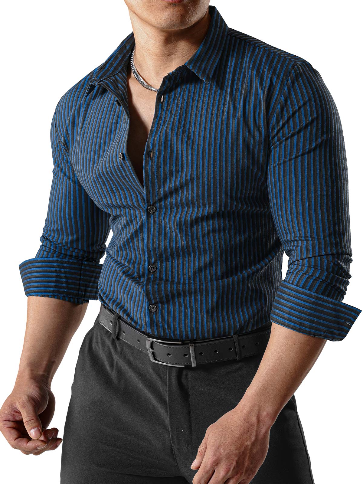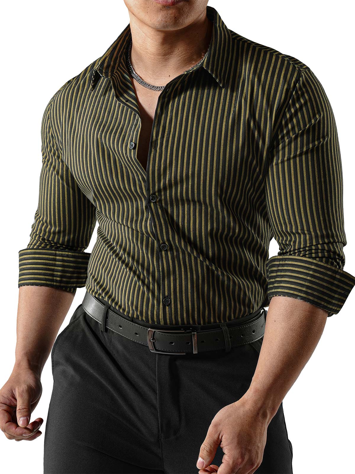 Men's Striped Long Sleeve Textured Wrinkle-Free Shirts