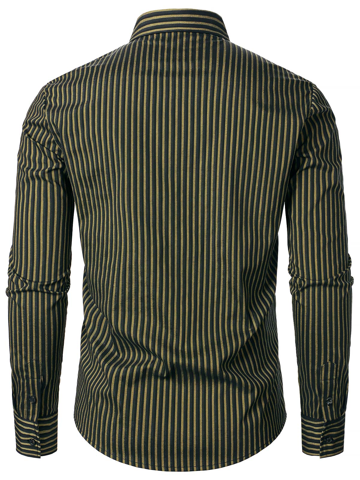 Men's Casual Button Up Retro Yellow And Green Vertical Striped Pocket Short Sleeve Shirt