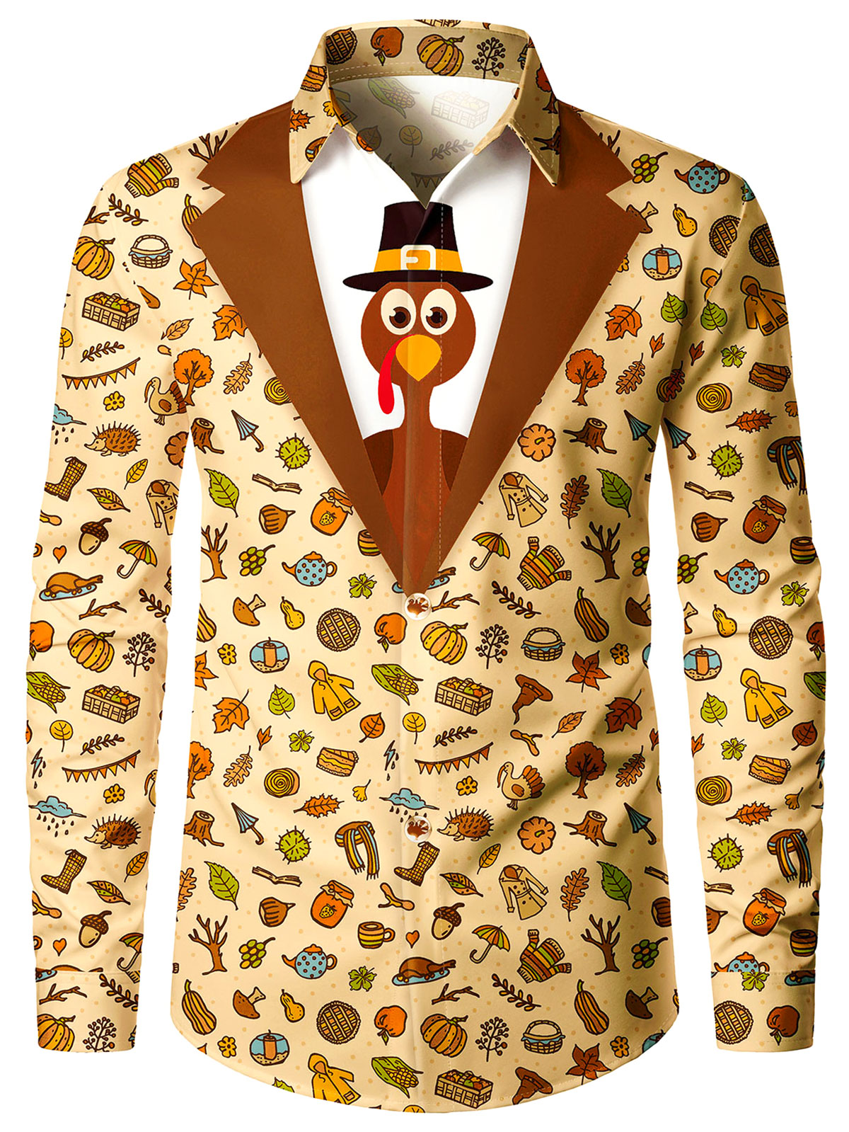 Men's Funny Thanksgiving Print Holiday Long Sleeve Shirt