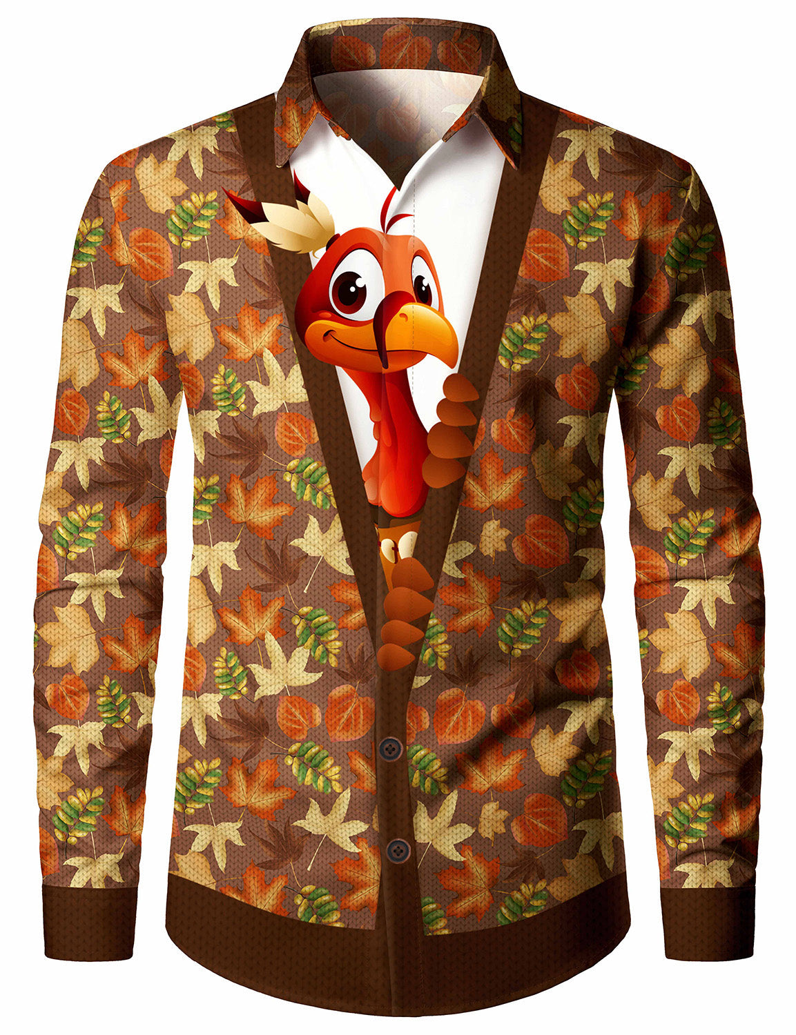 Men's Thanksgiving Day Turkey Themed Long Sleeve Shirt