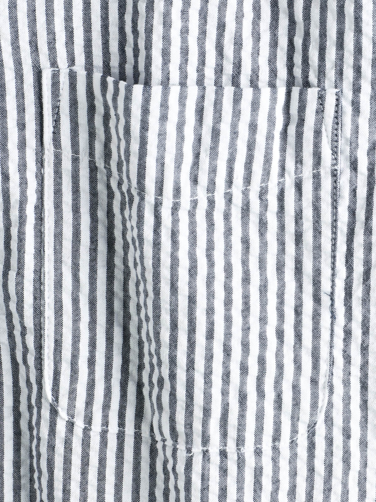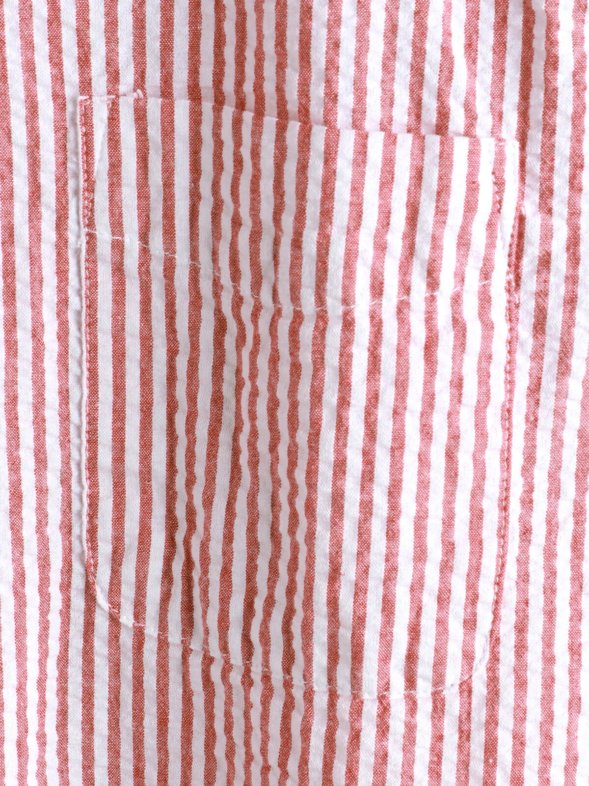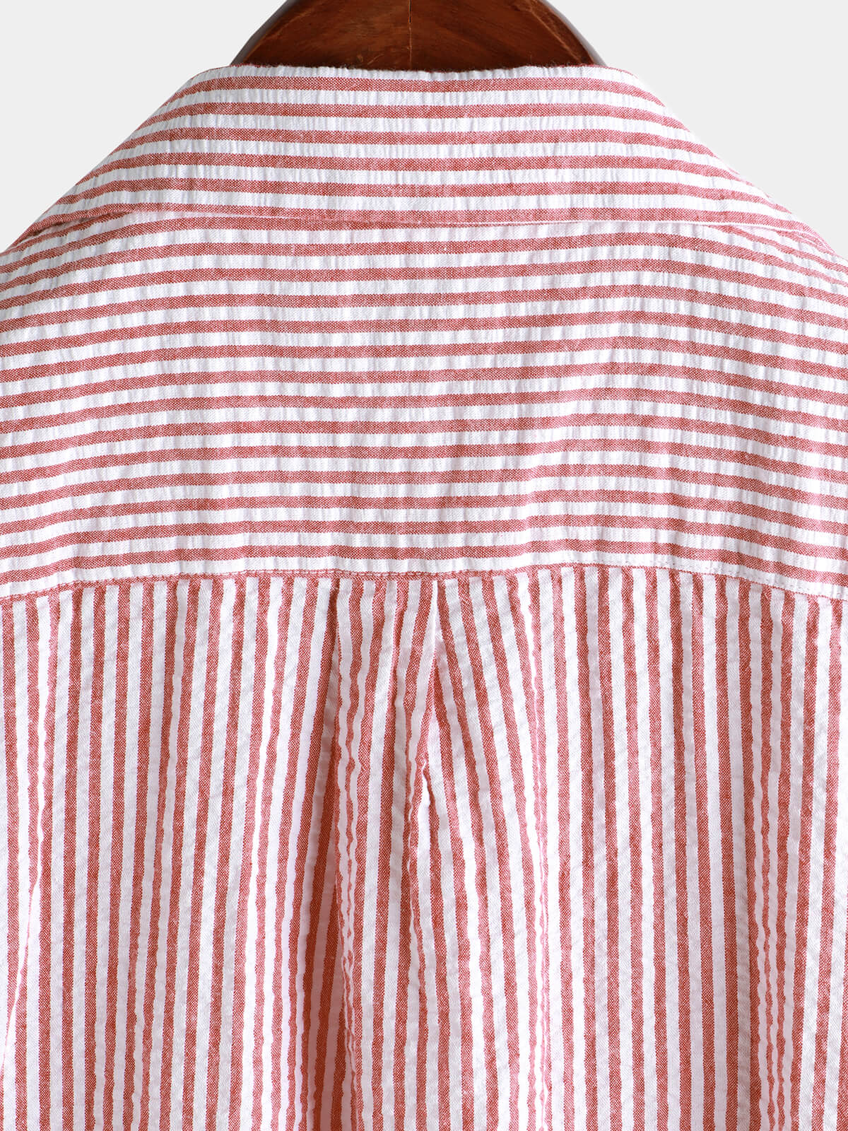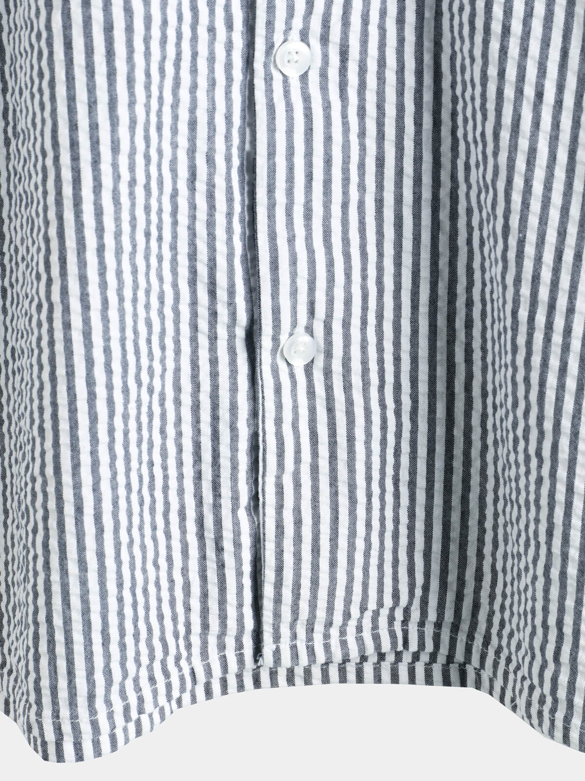 Men's Breathable Striped Cotton Button Up Summer Cuban Collar Camp Short Sleeve Beach Shirt