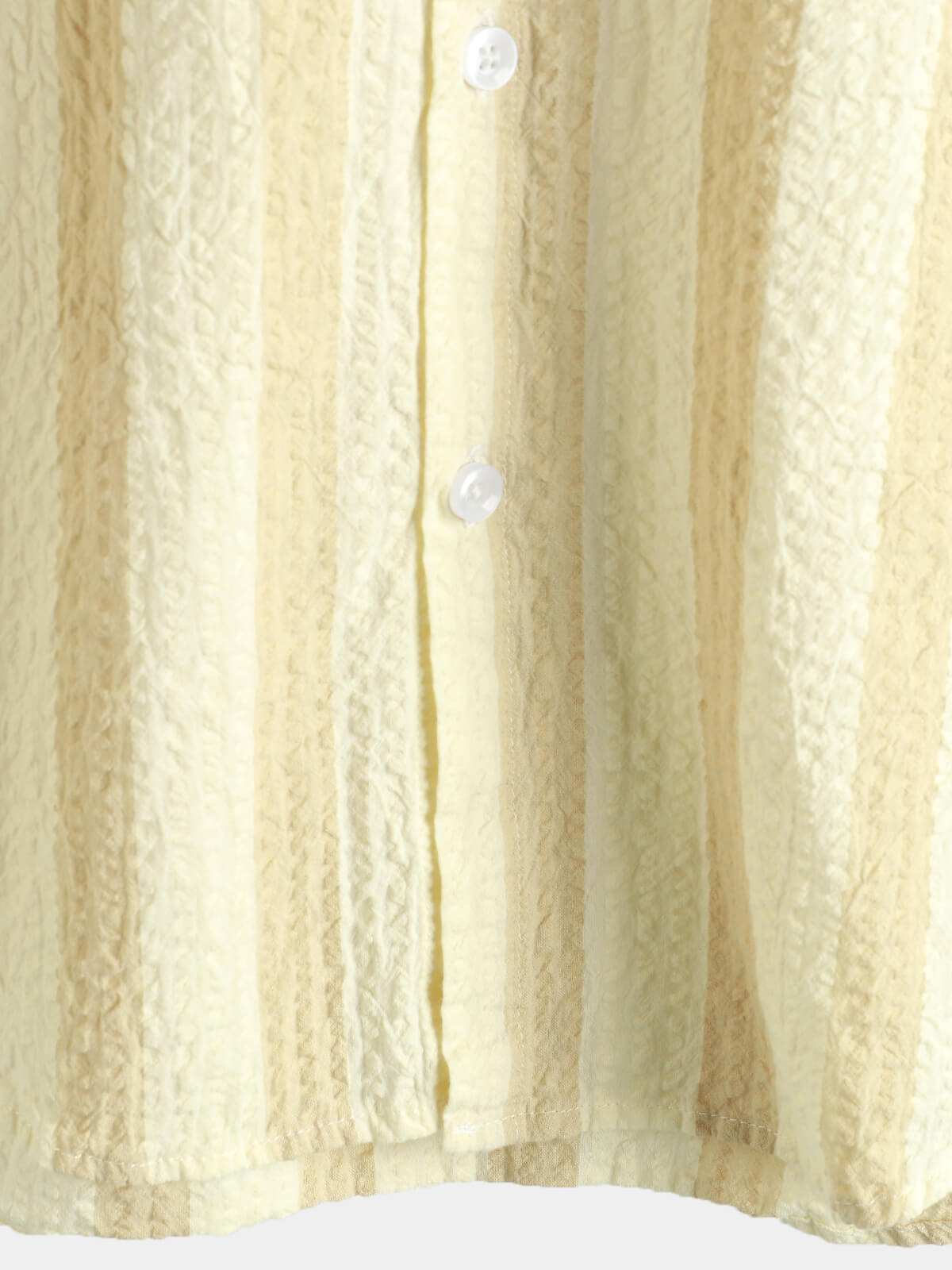 Men's Striped Cotton Casual Pocket Hawaiian Holiday Button Up Short Sleeve Shirt