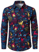 Men's Christmas Cotton Blue Long Sleeve Shirt