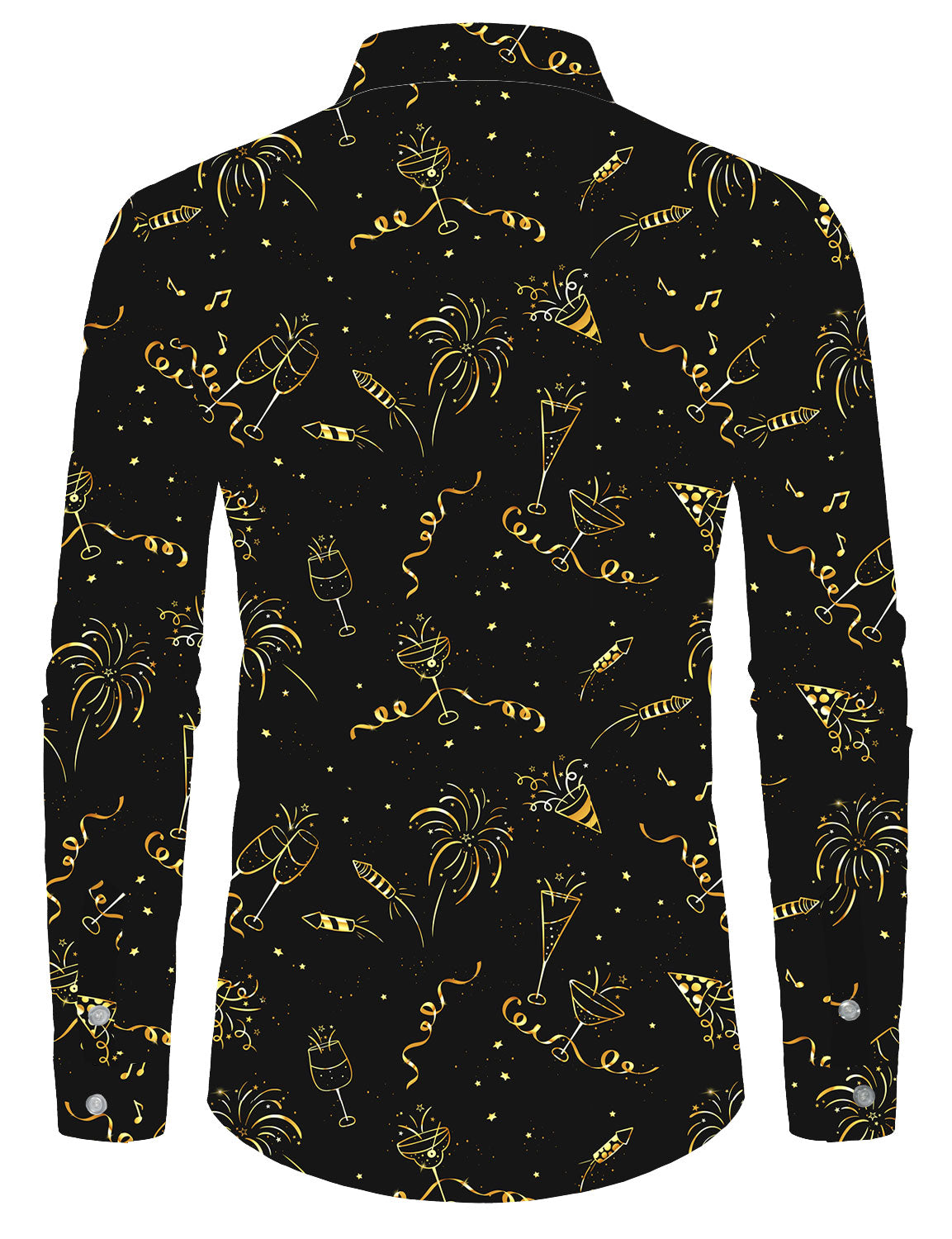 Men's Holiday Fireworks Print New Year Long Sleeve Shirt