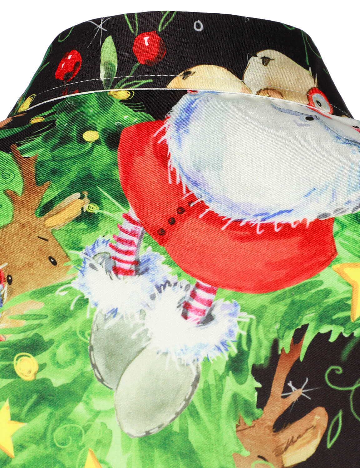 Men's Cute Gnome And Christmas Tree Button Up Long Sleeve Shirt