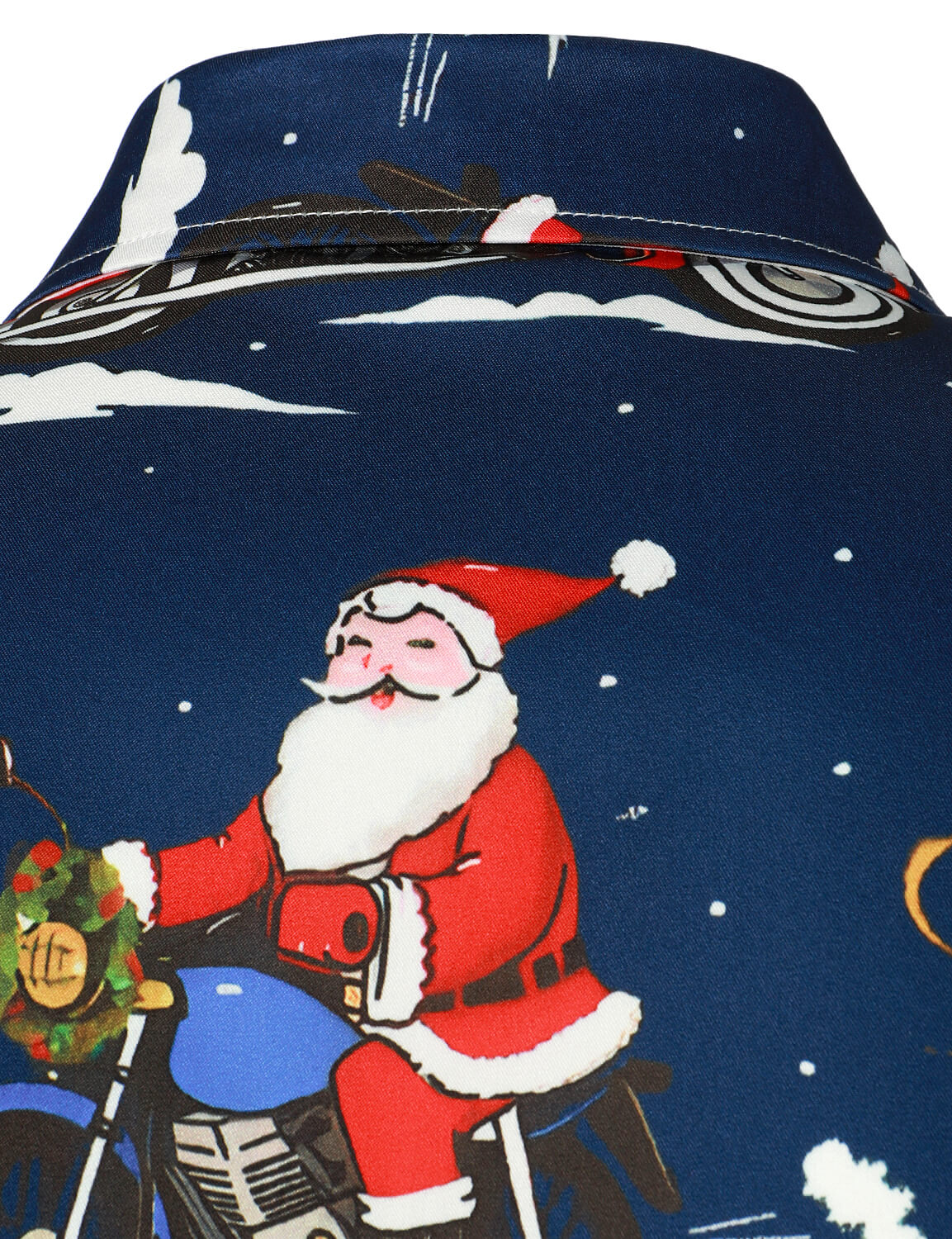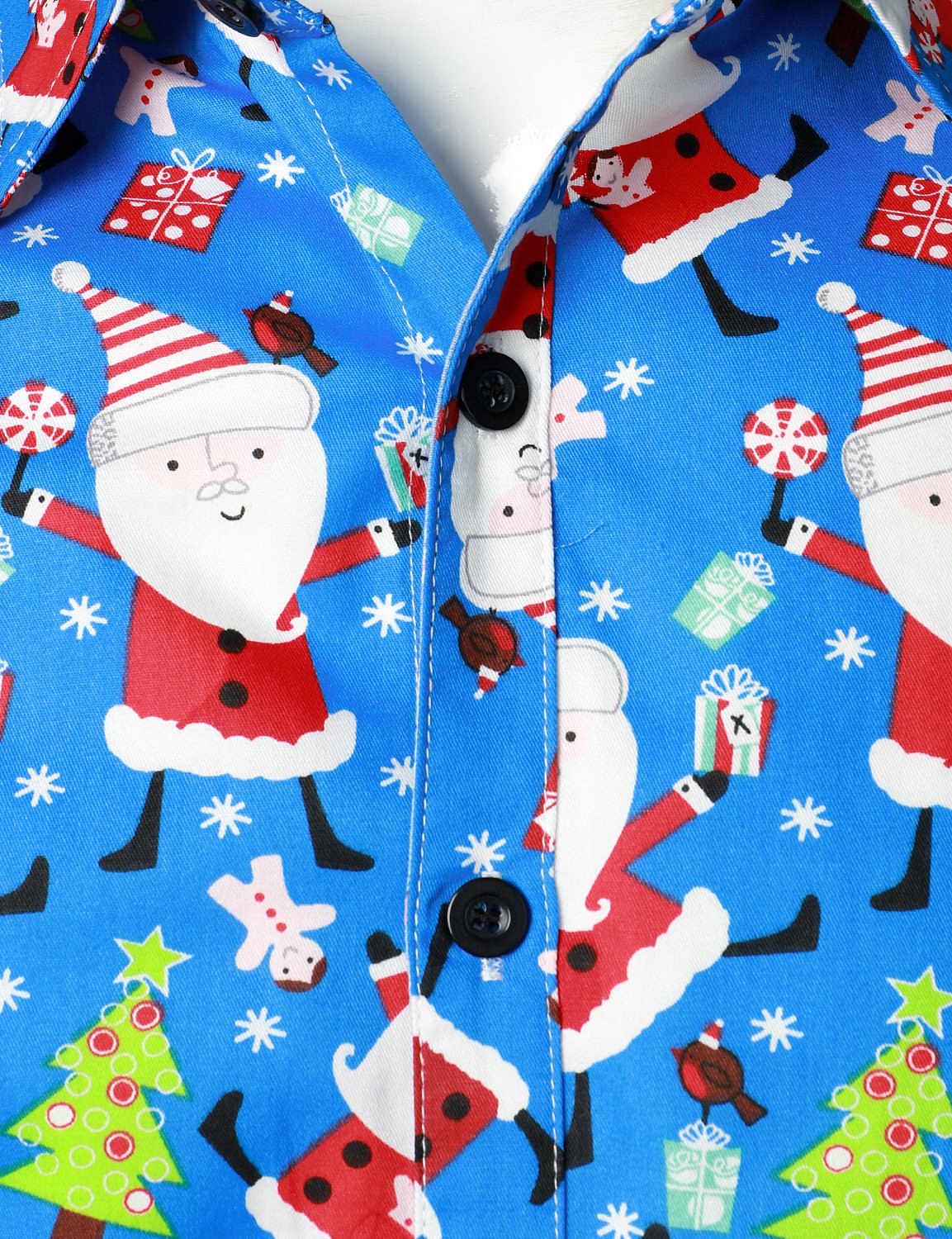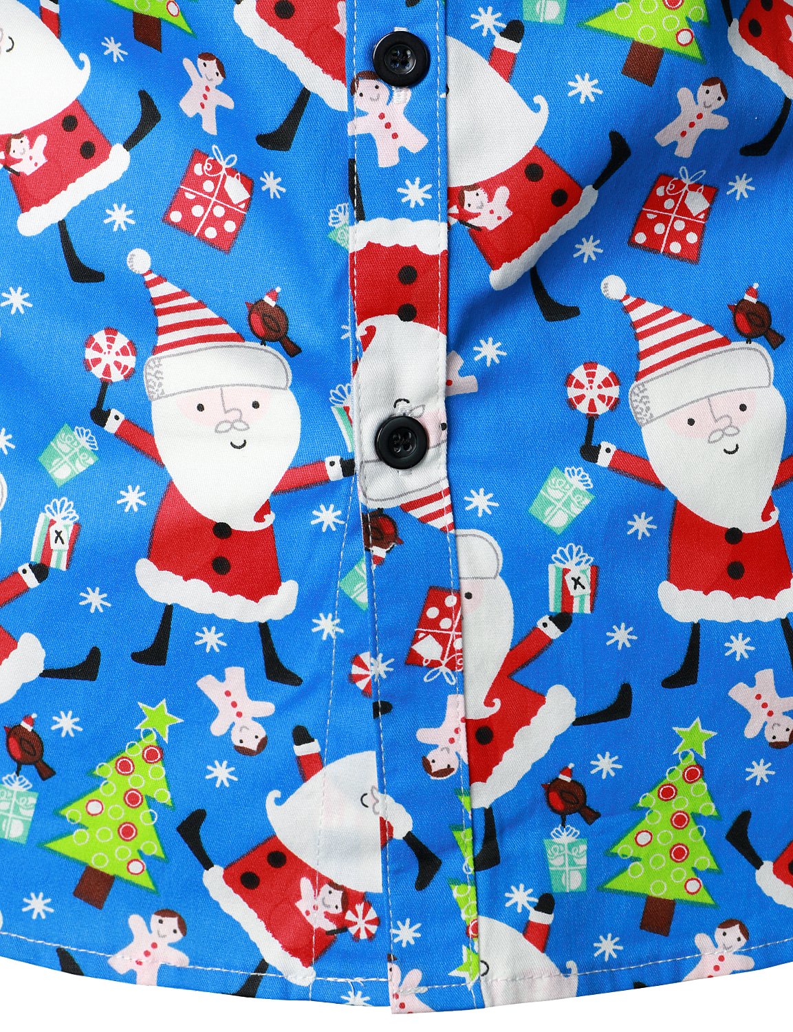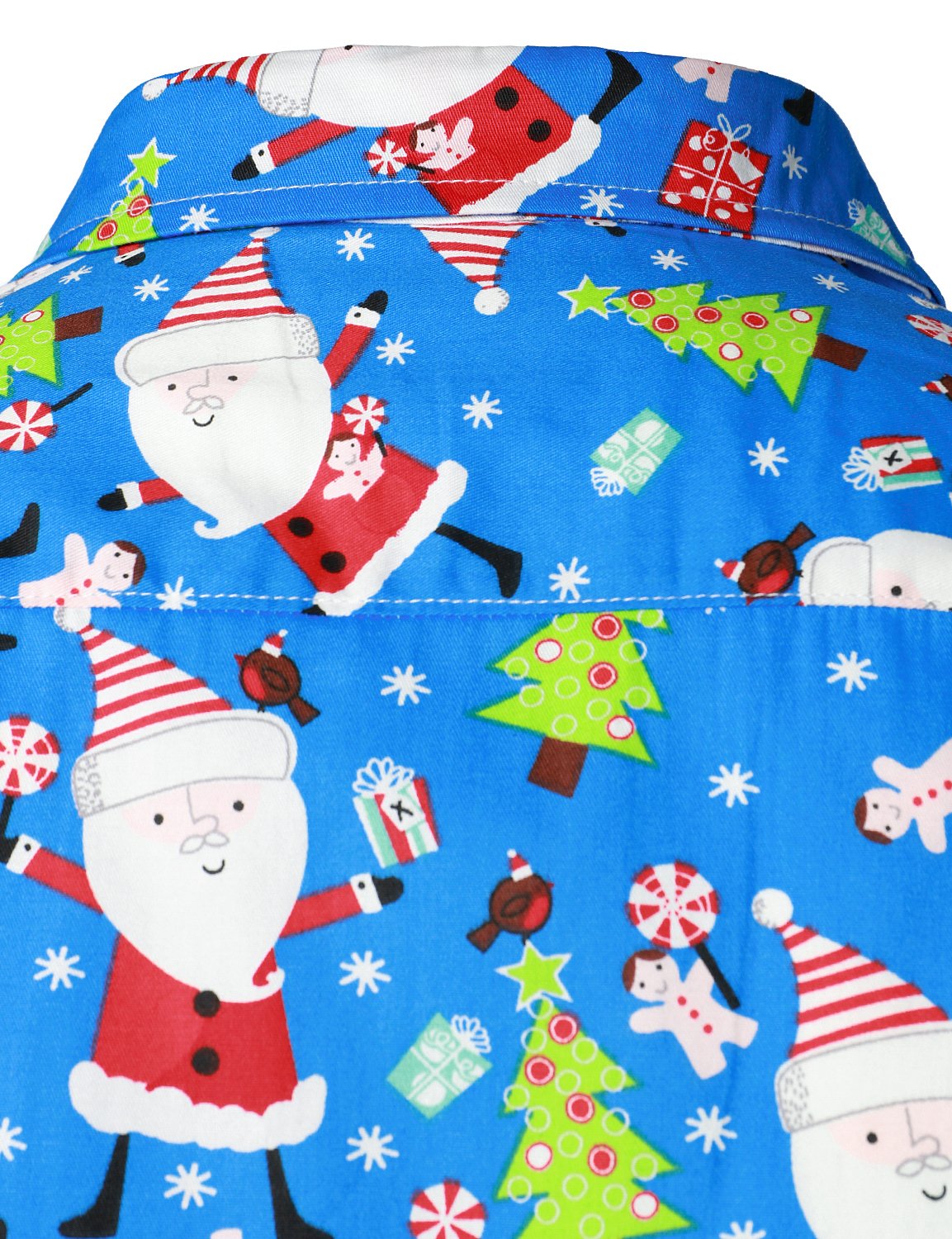Men's Christmas Print Regular Fit Blue Long Sleeve Santa Dress Shirt