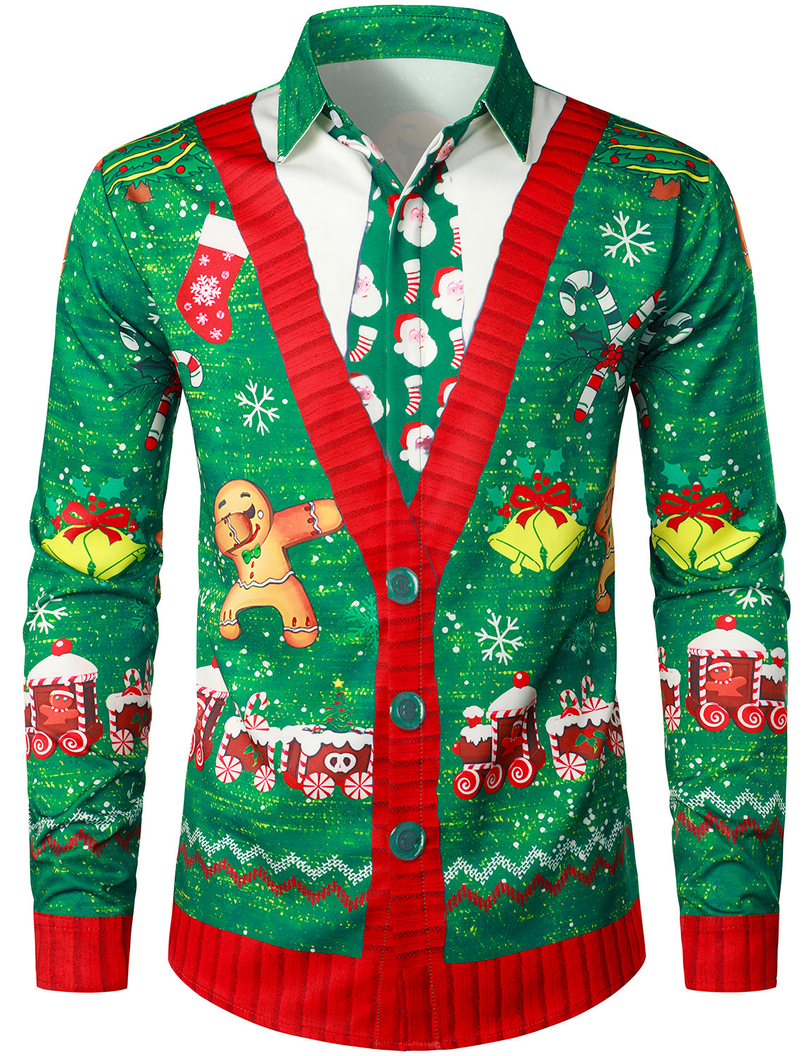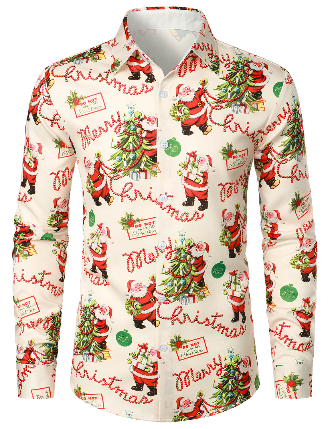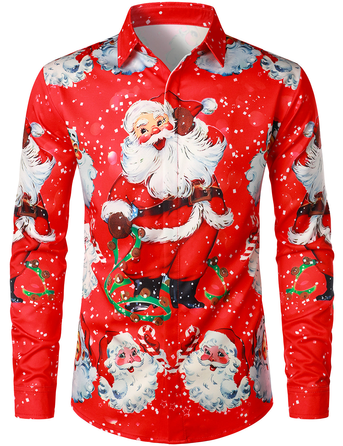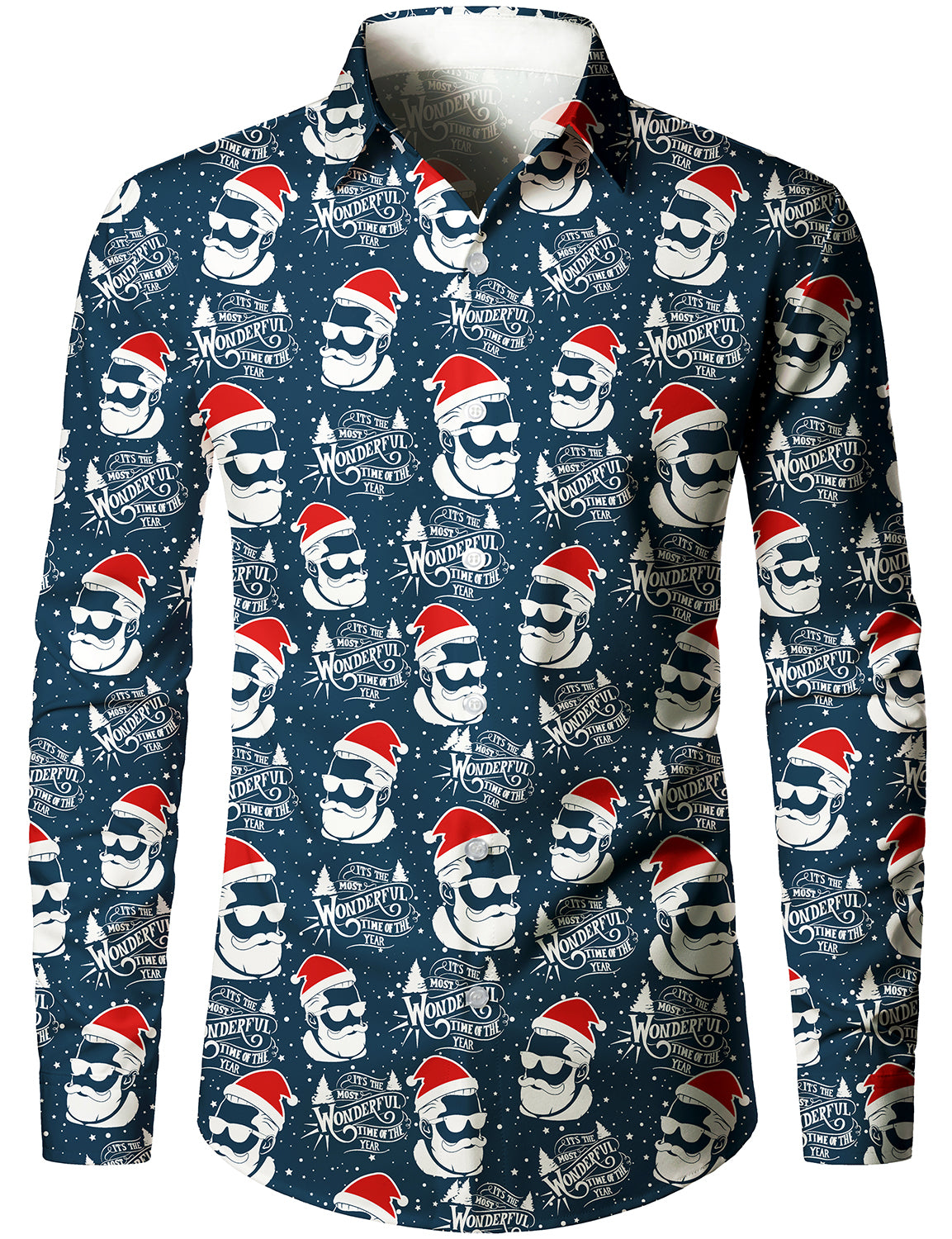 Men's Santa Claus Christmas Gifts Button UP Party Funny Holiday Long Sleeve Shirt