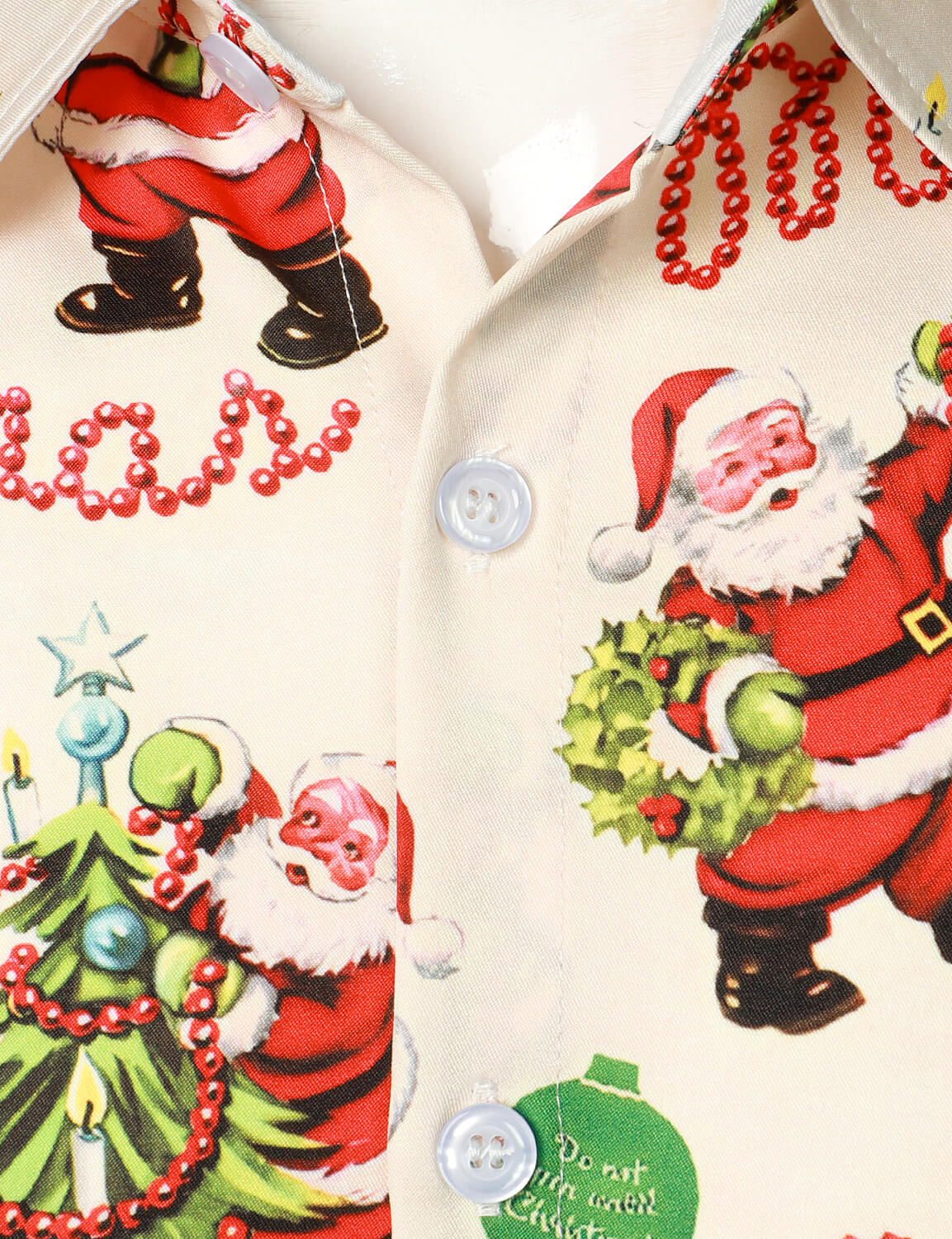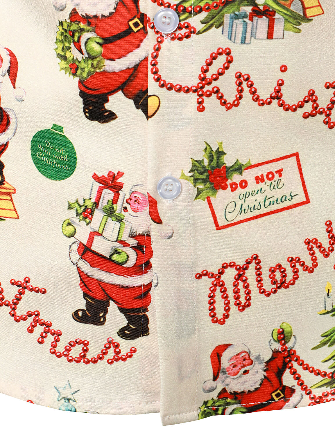 Men's Merry Christmas Holiday Cute Santa Claus Vintage Button Long Sleeve Shirt