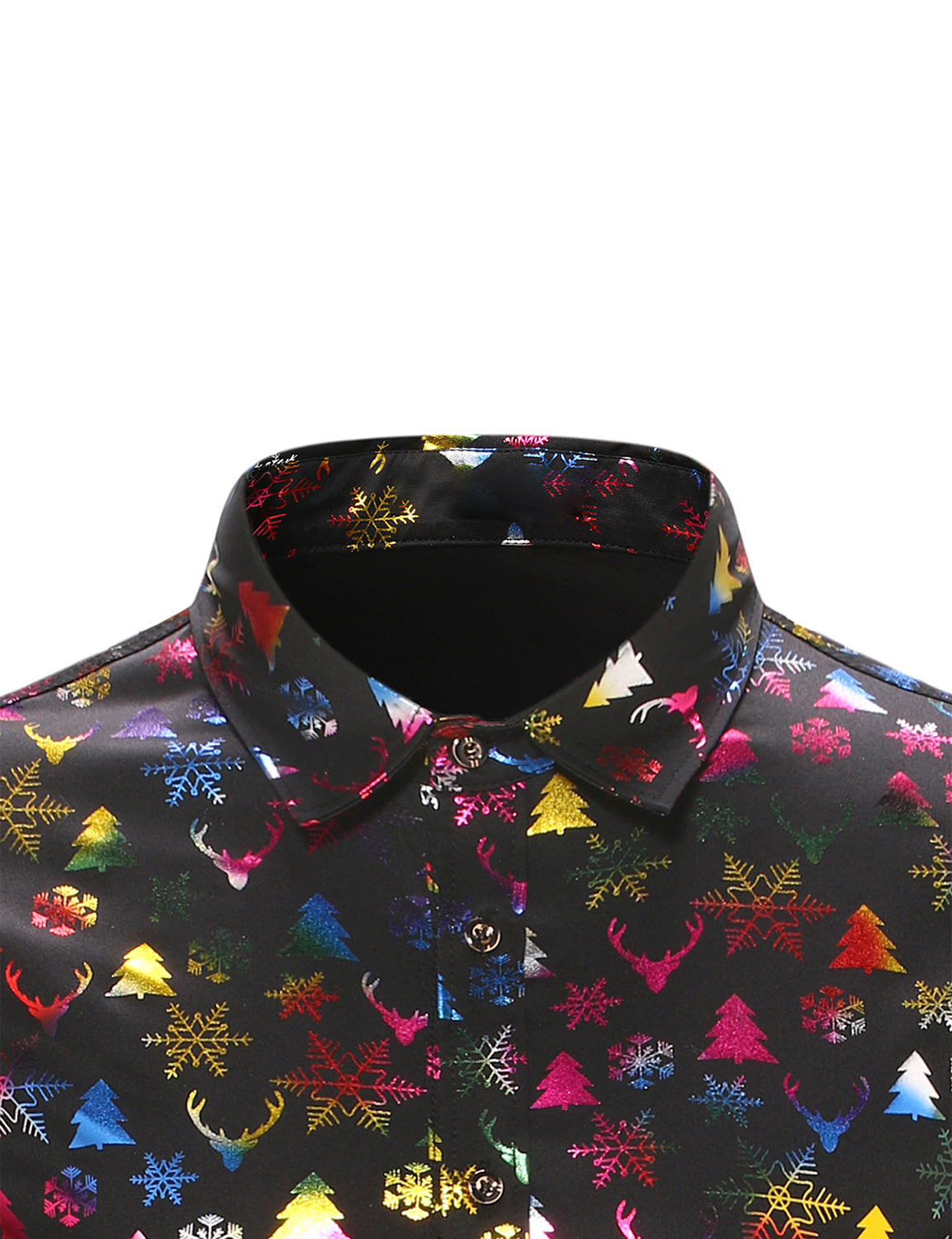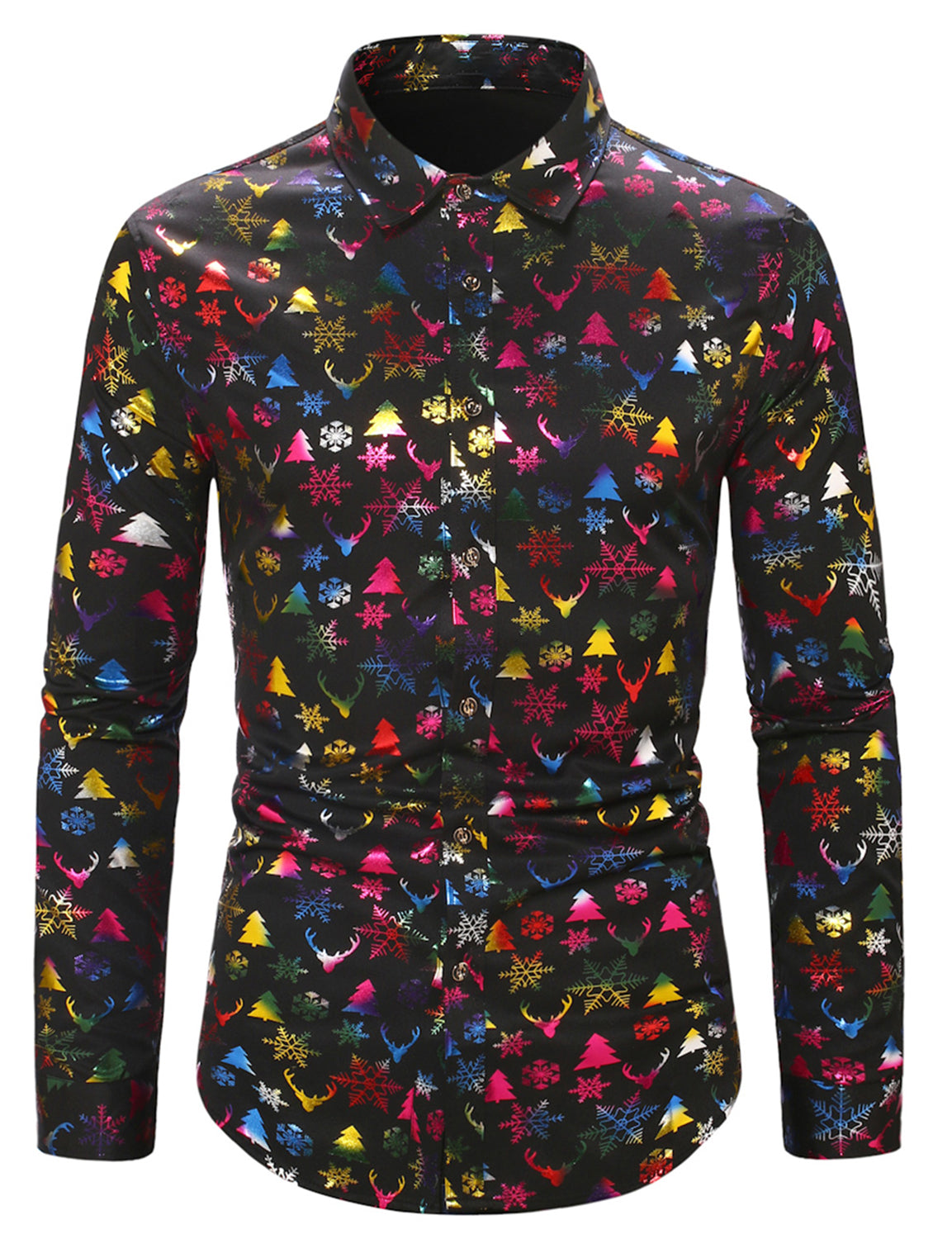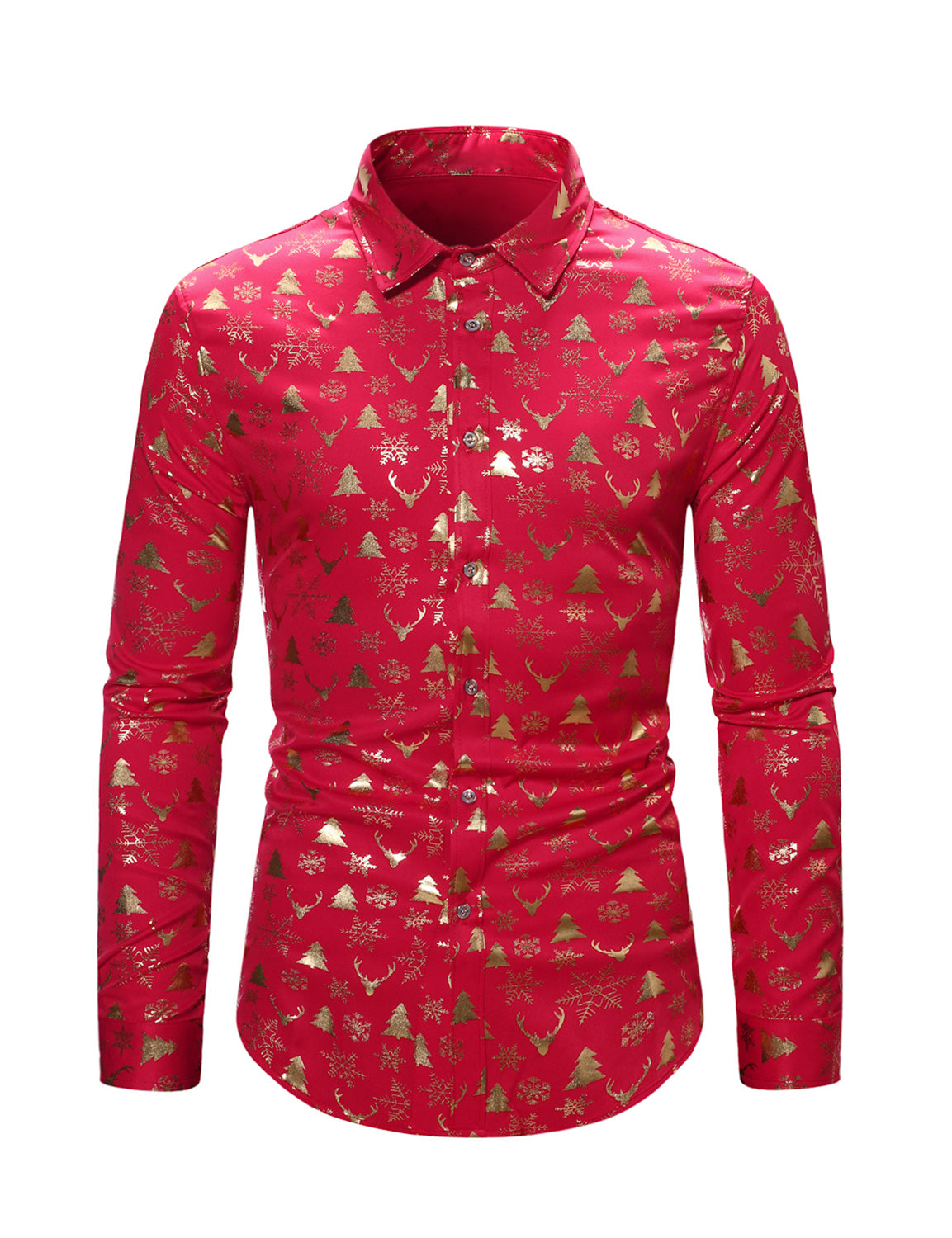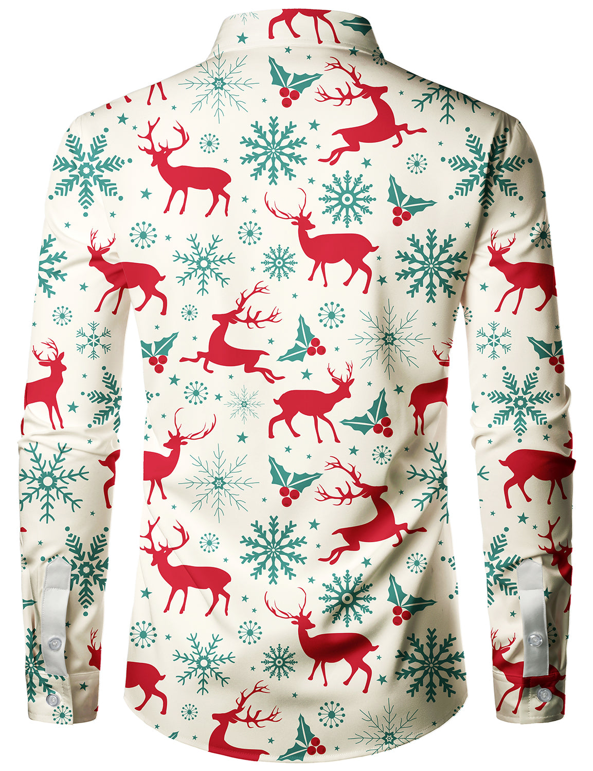 Men's Christmas Elk Print Snowflake Xmas Holiday Button Up Long Sleeve Shirt