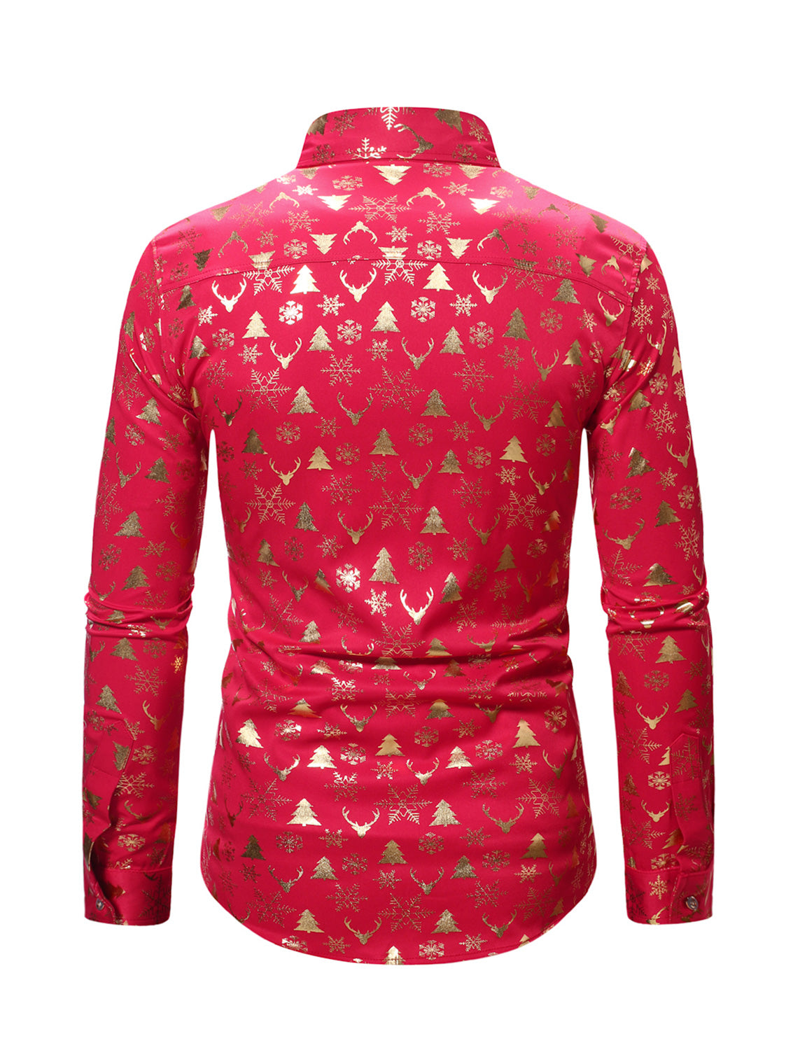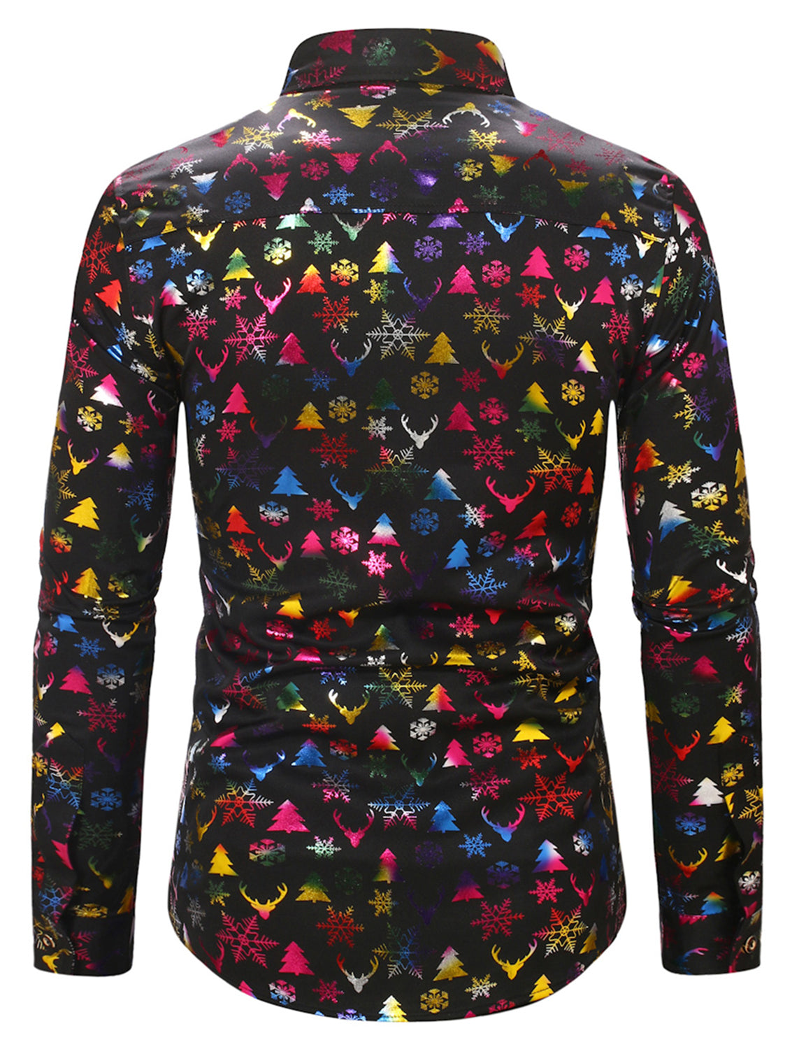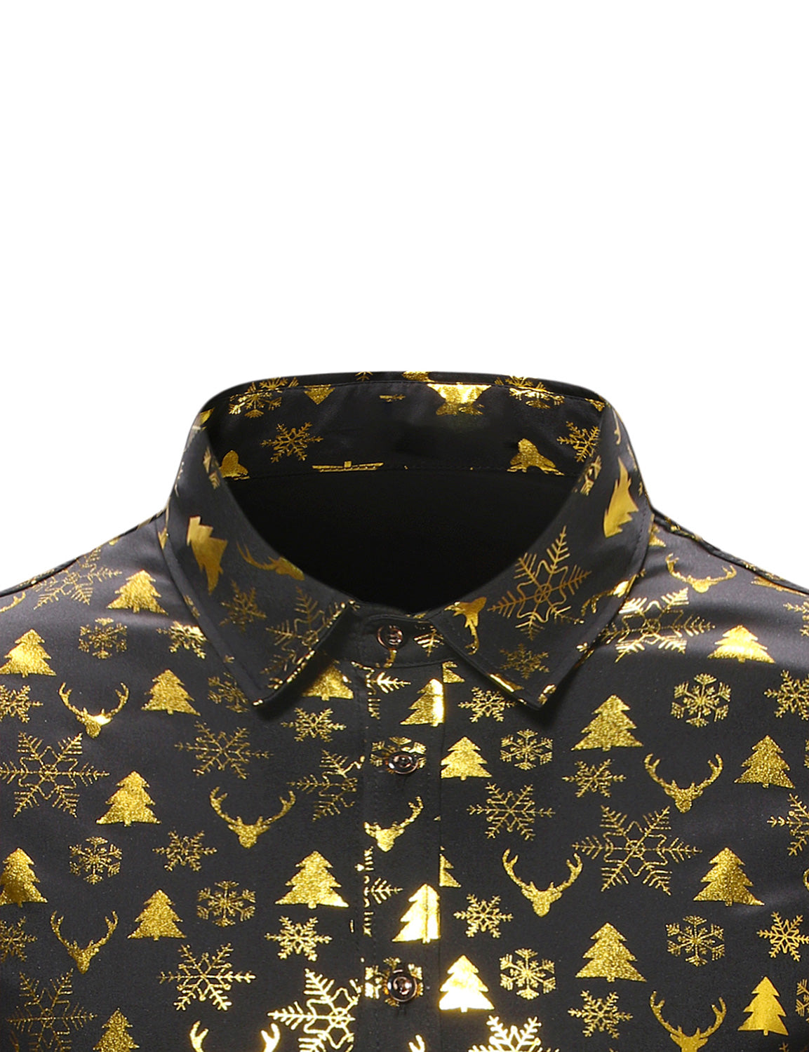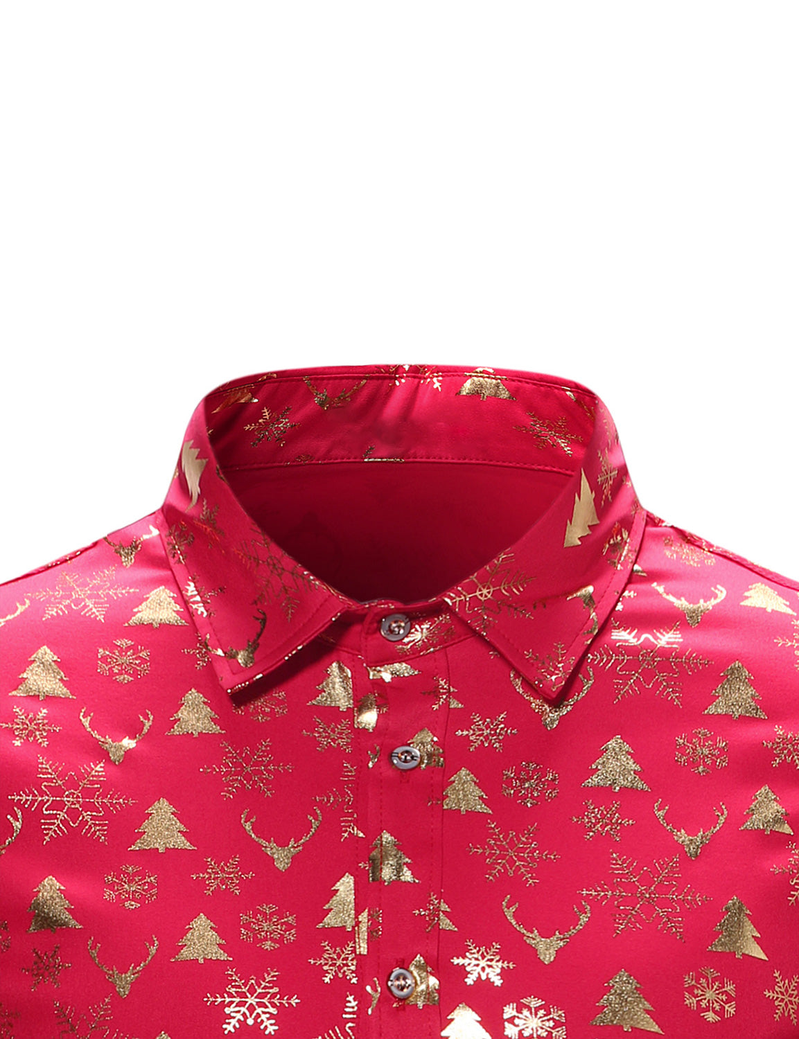 Men's Christmas Elk Print Snowflake Xmas Holiday Button Up Long Sleeve Shirt