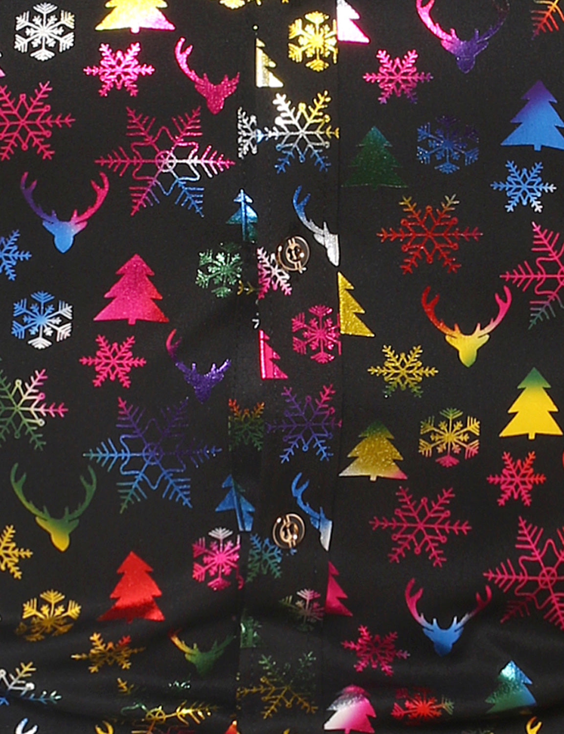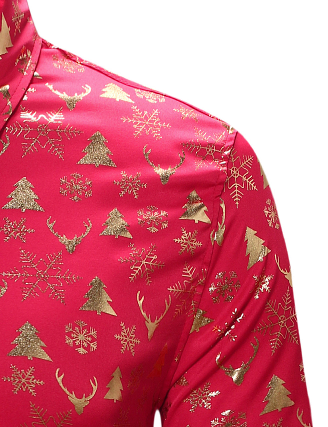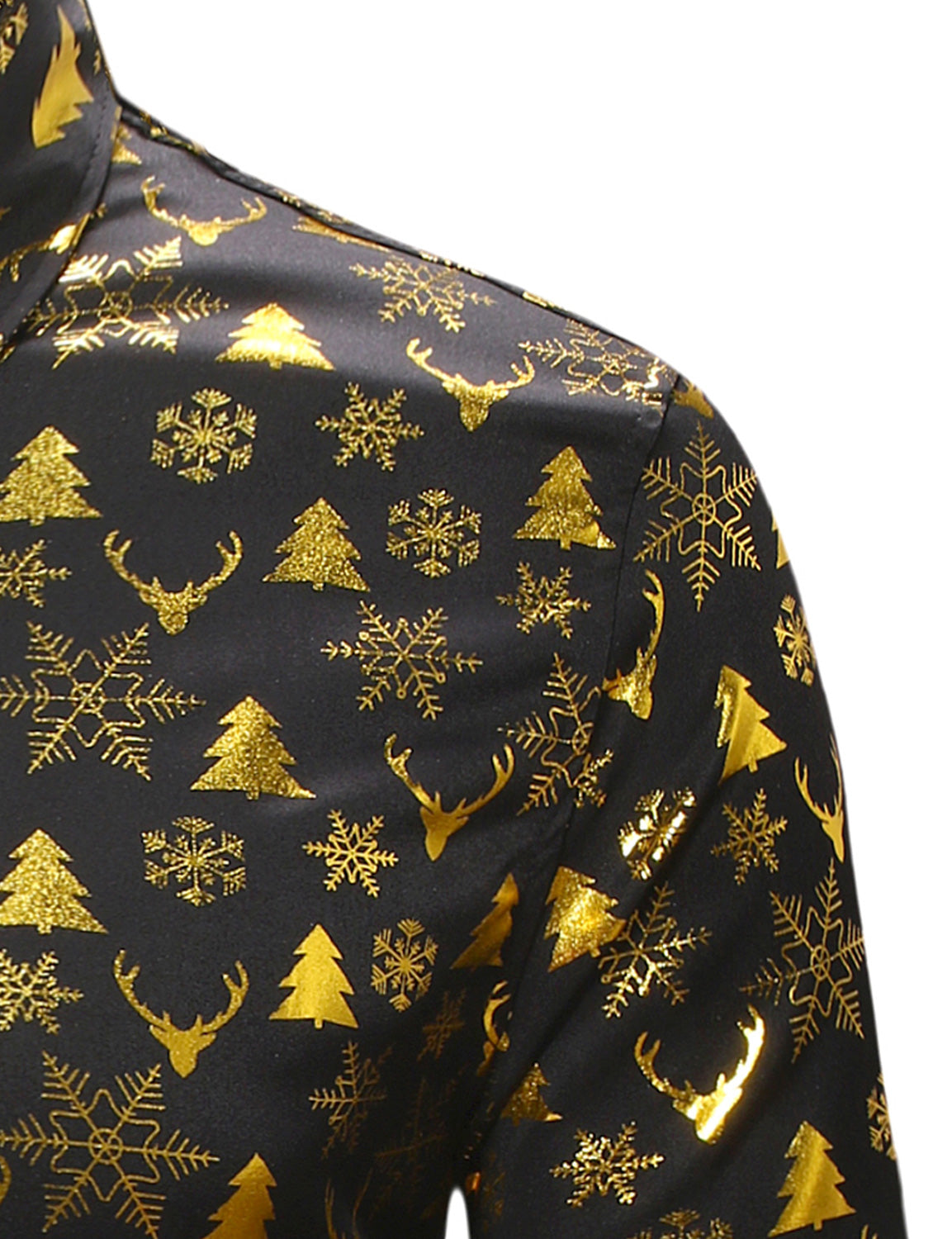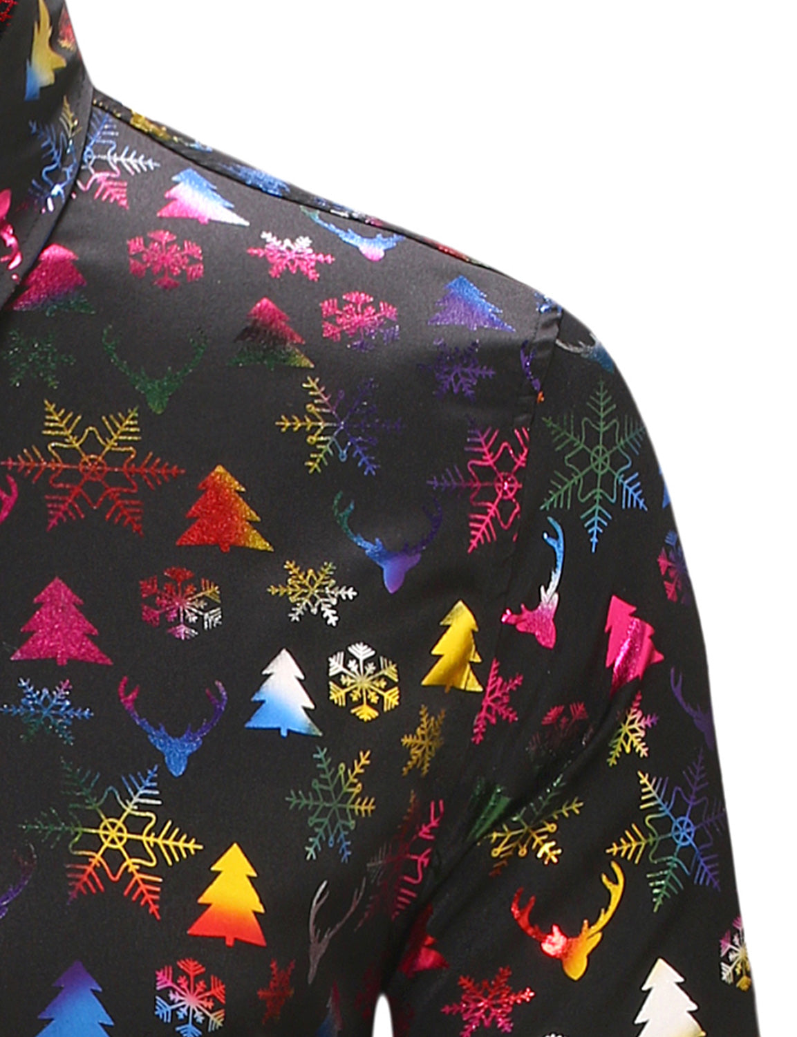 Men's Christmas Elk Print Snowflake Xmas Holiday Button Up Long Sleeve Shirt