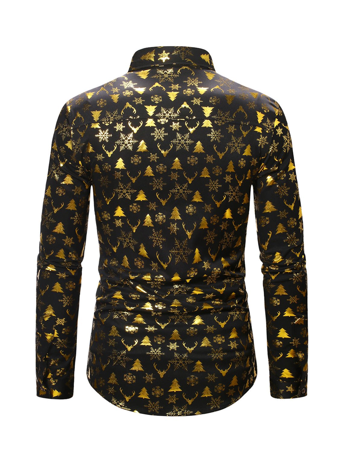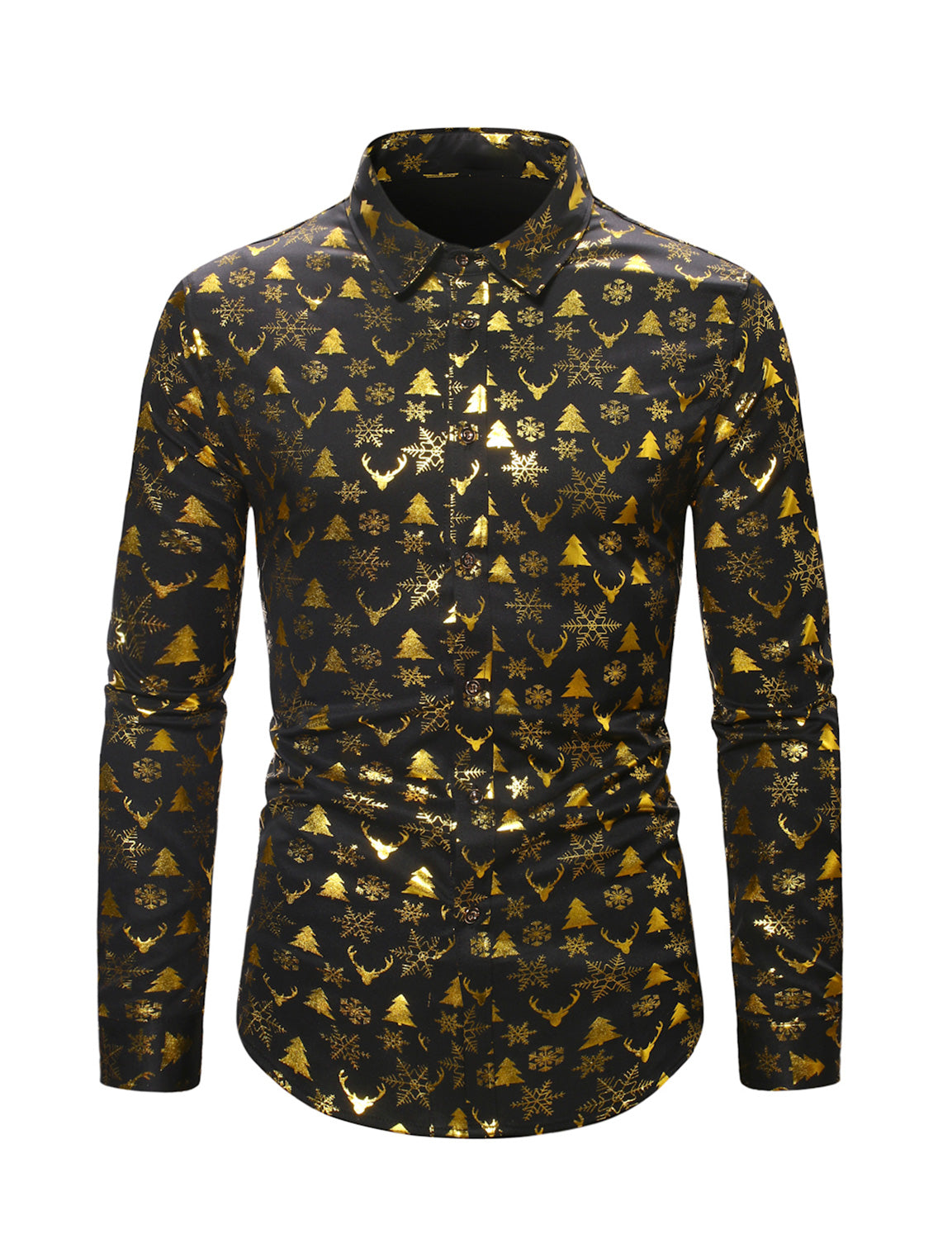 Men's Vintage Gold Christmas Holiday Print Long Sleeve Shirt