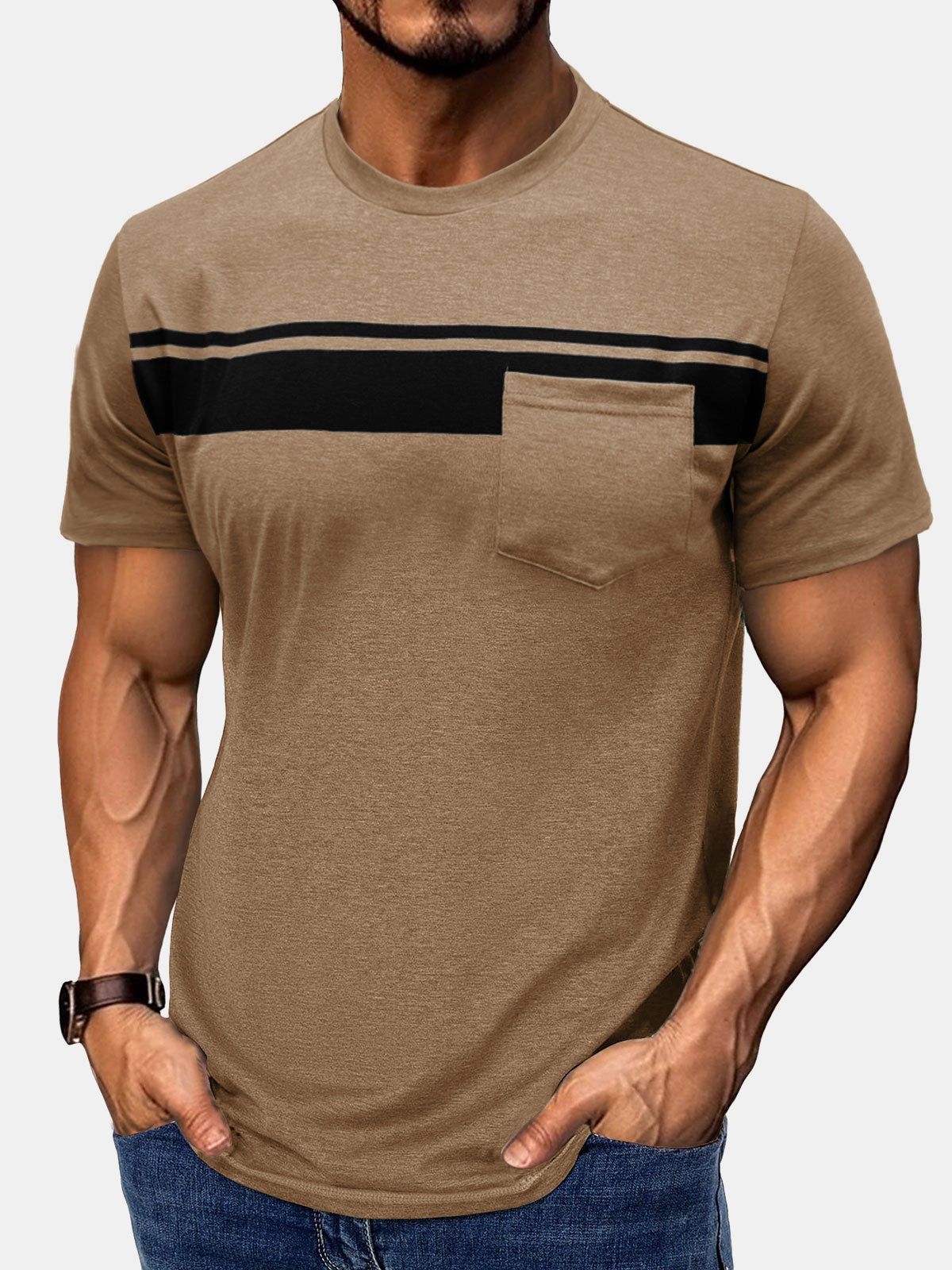 Men's Comfort Striped Patchwork Pocket T-Shirt