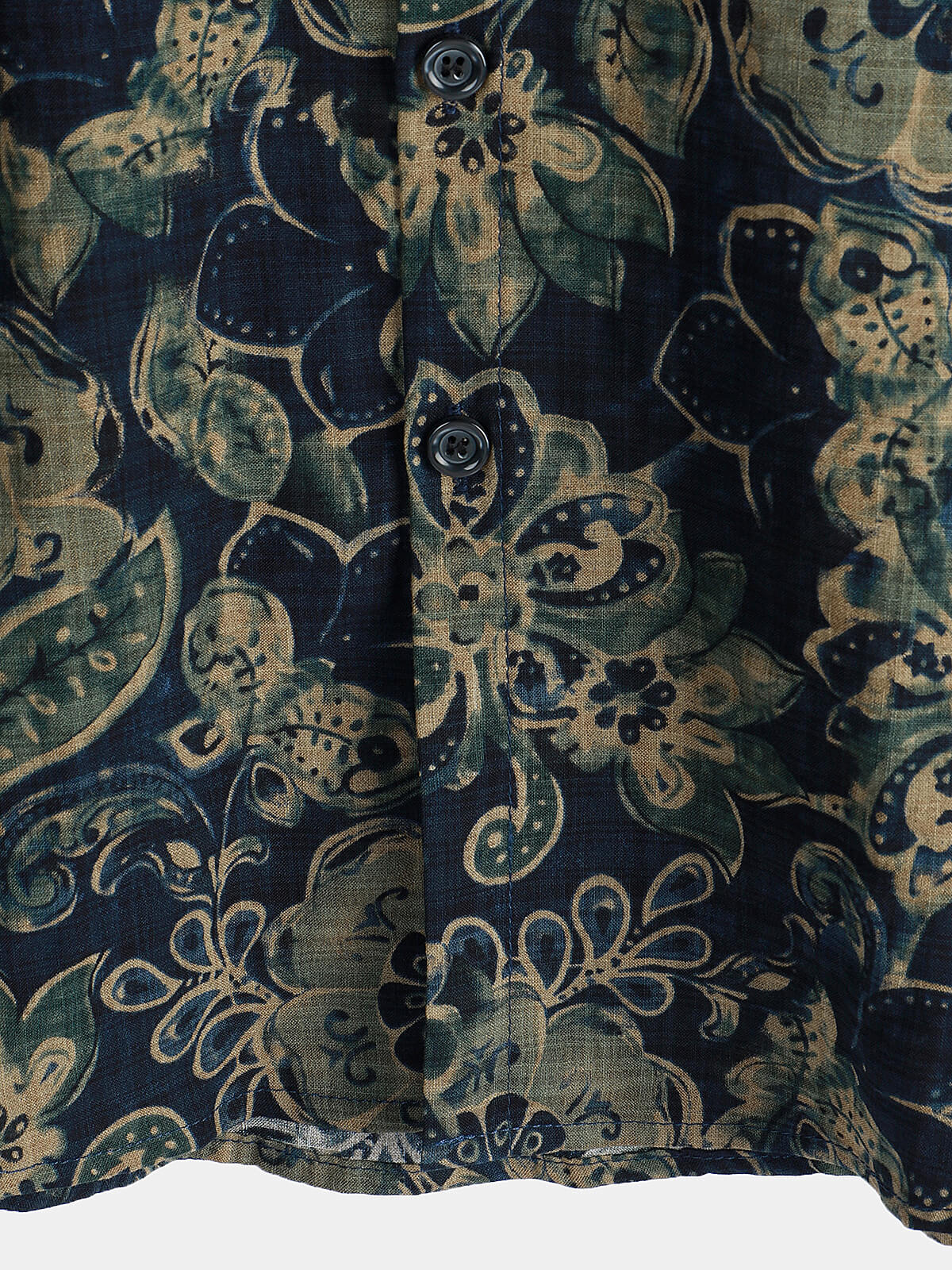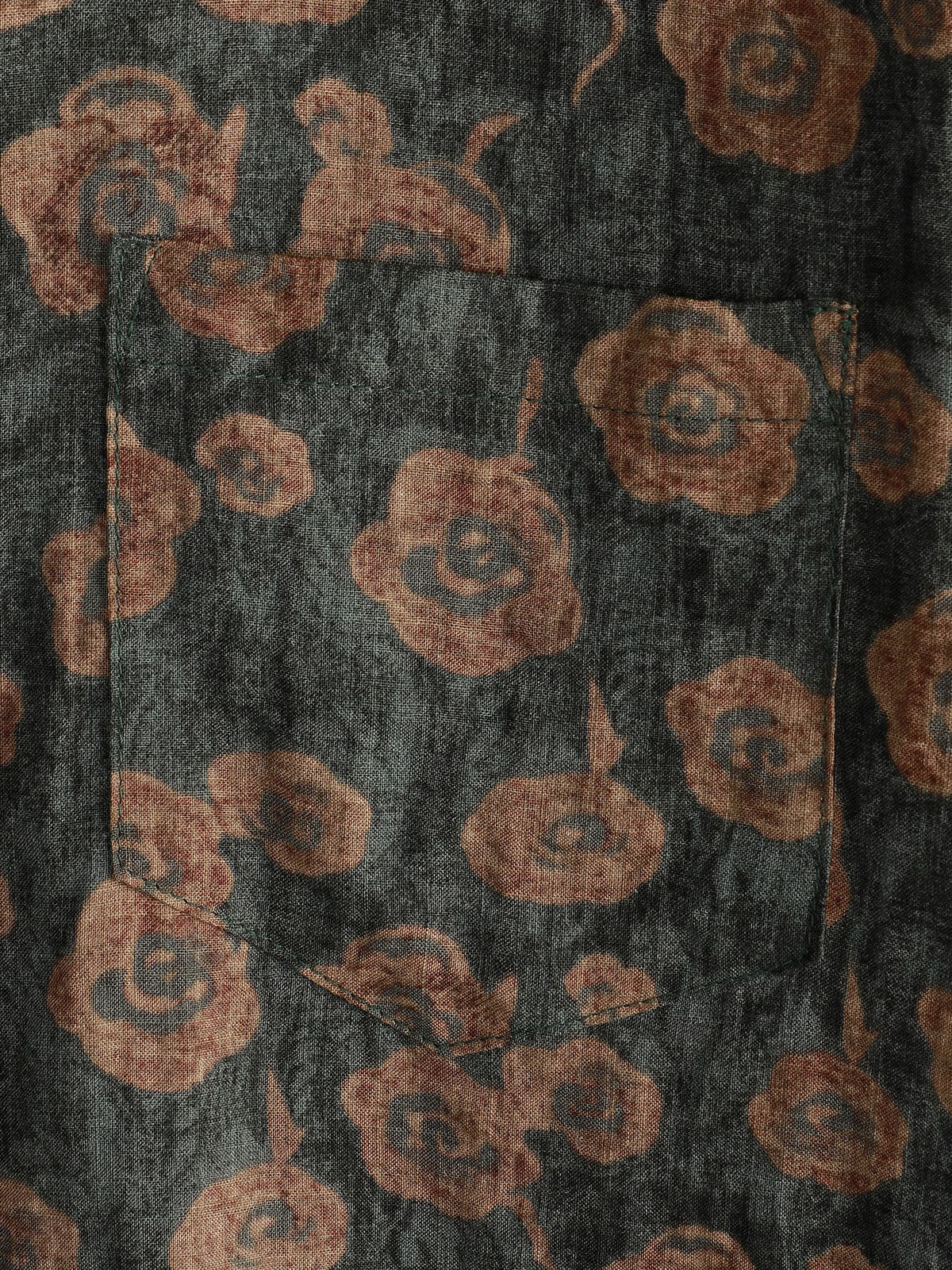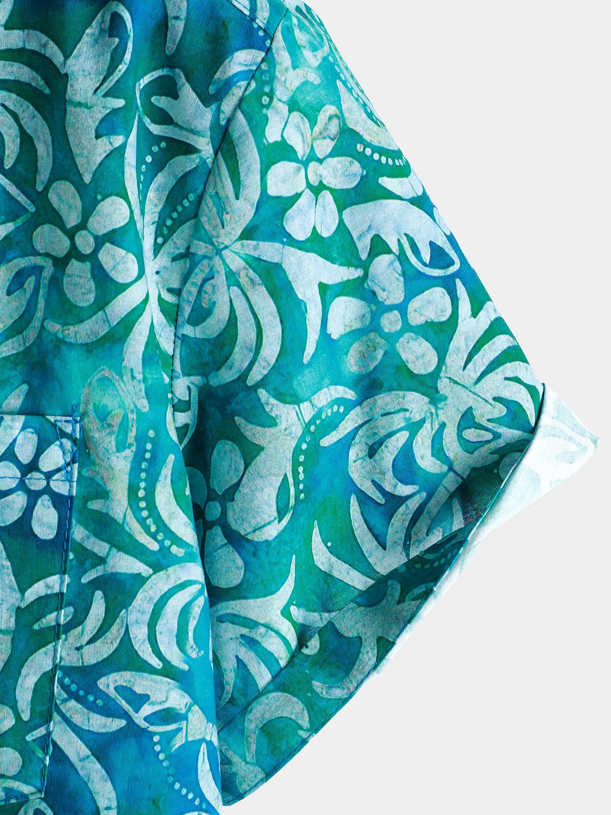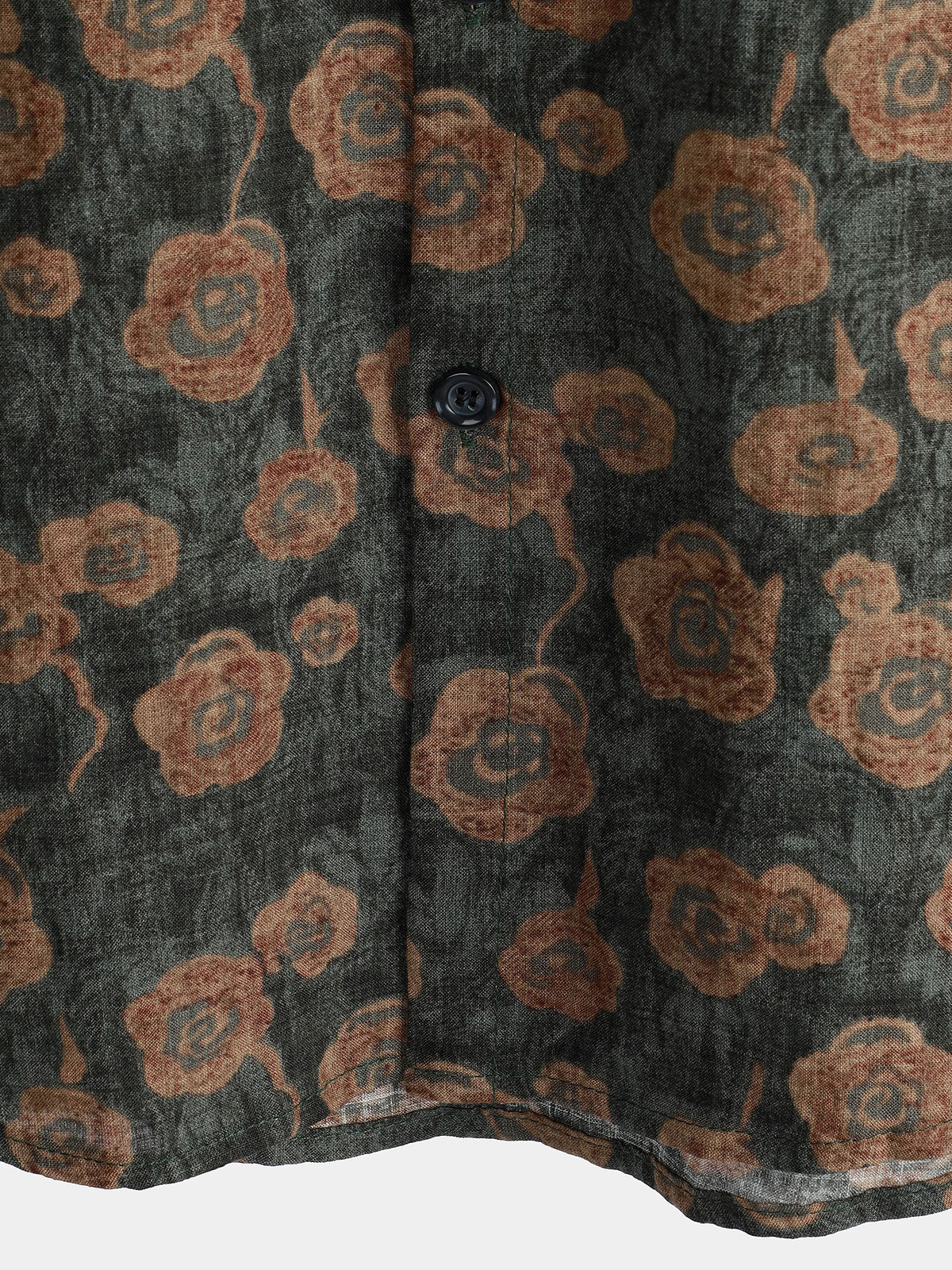 Men's Short Sleeve Casual Holiday Vintage Floral Button Green Cotton Shirt
