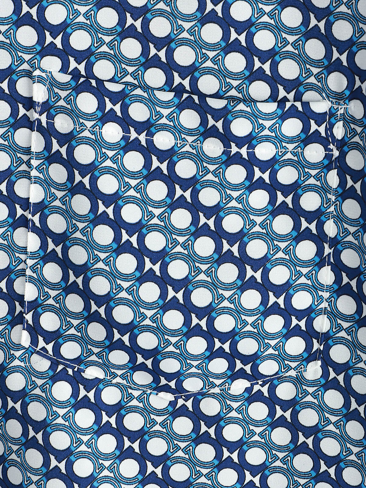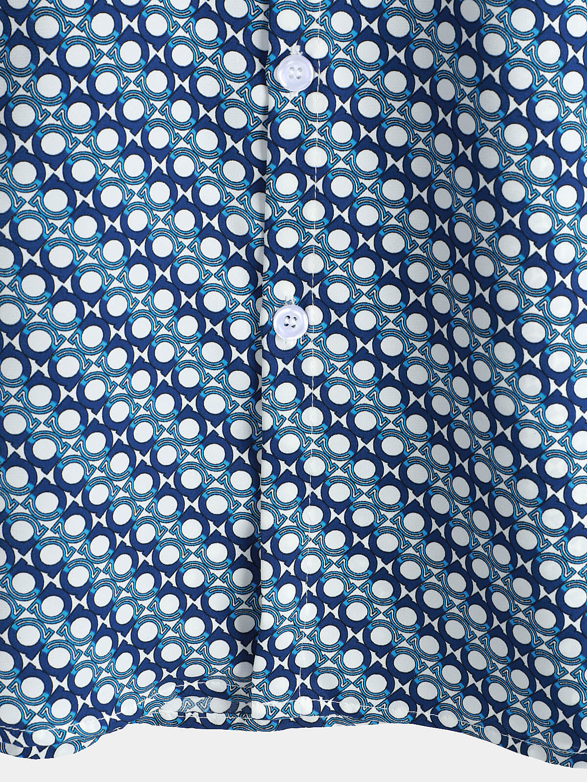 Men's Blue Cocktail Print Casual Long Sleeve Cotton Holiday Parties Shirt