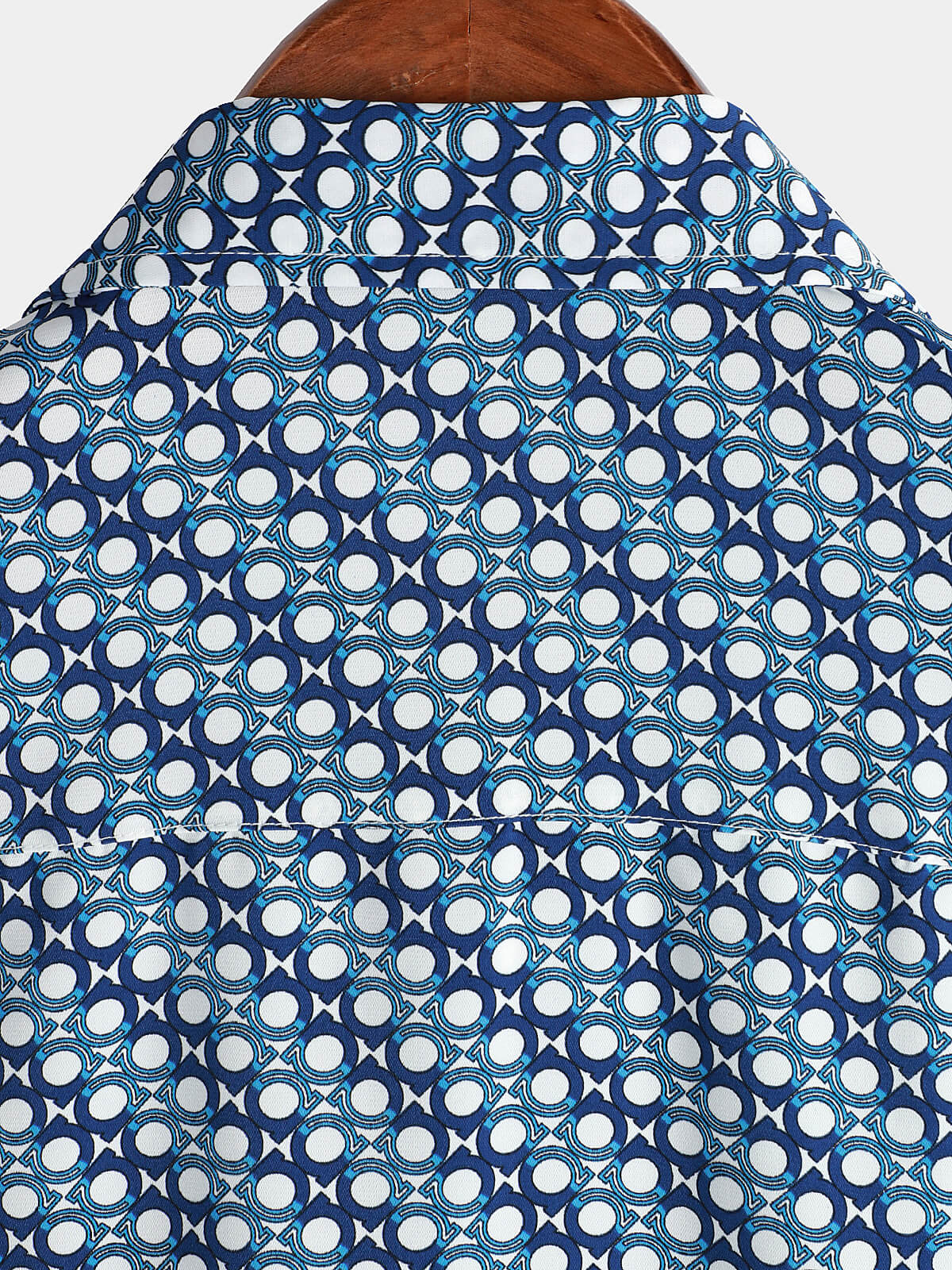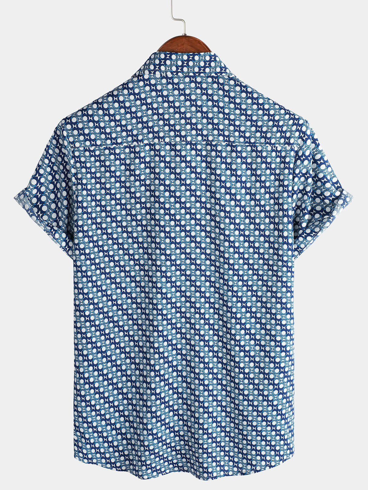 Men's Casual Holiday Summer Short Sleeve Blue Button Up Shirt