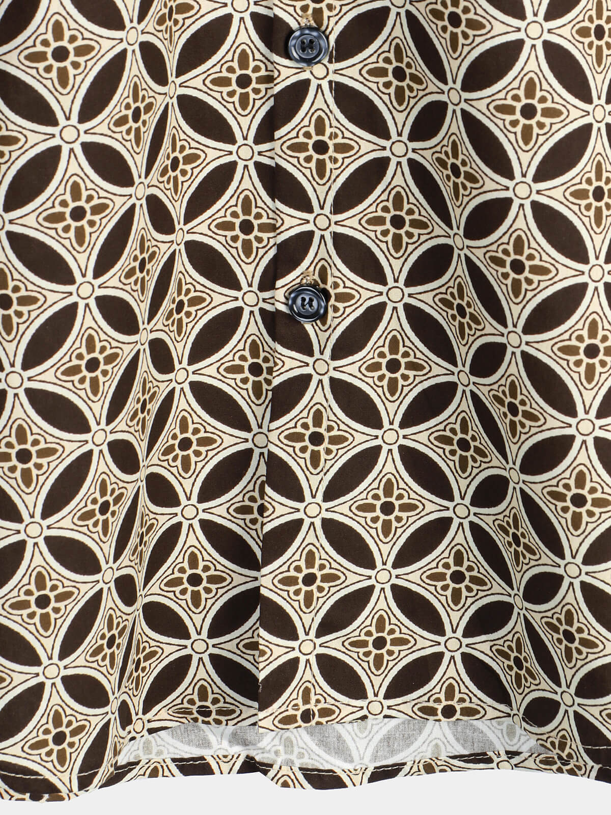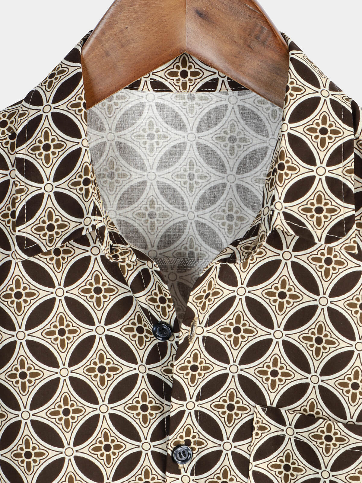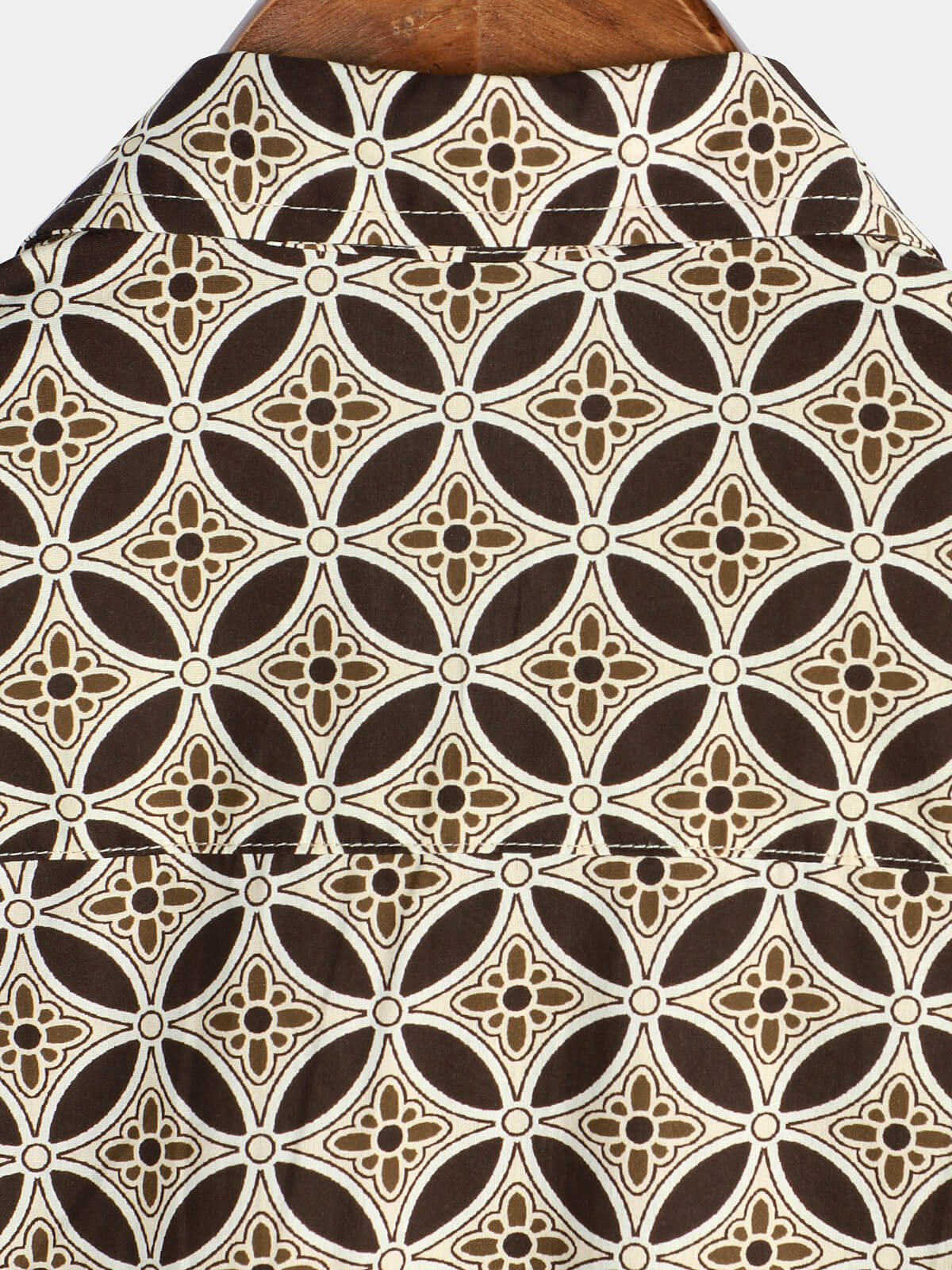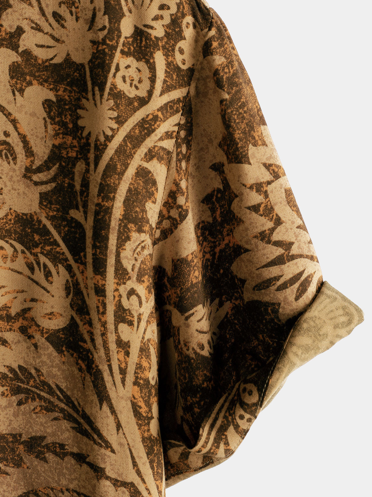Men's Floral Print Vintage Holiday Brown Hawaiian Short Sleeve Shirt