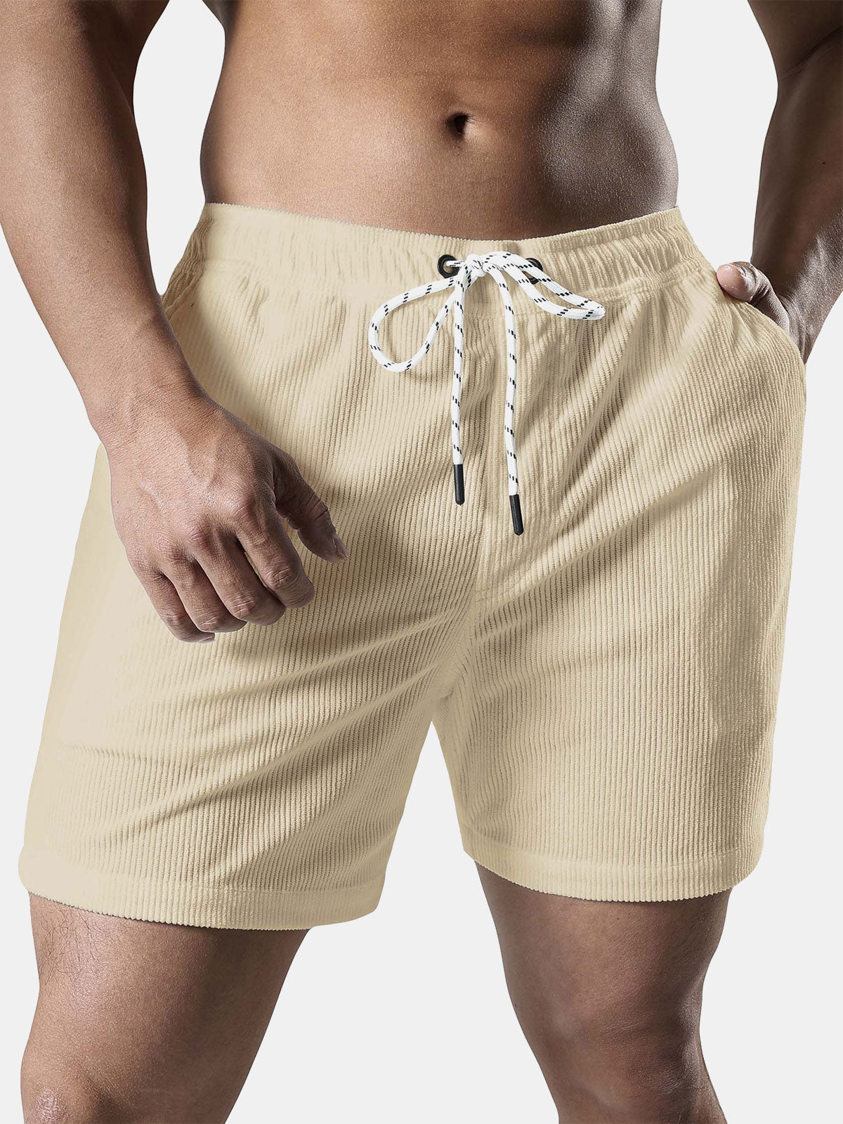Men's Casual Drawstring Corduroy Pocket Shorts