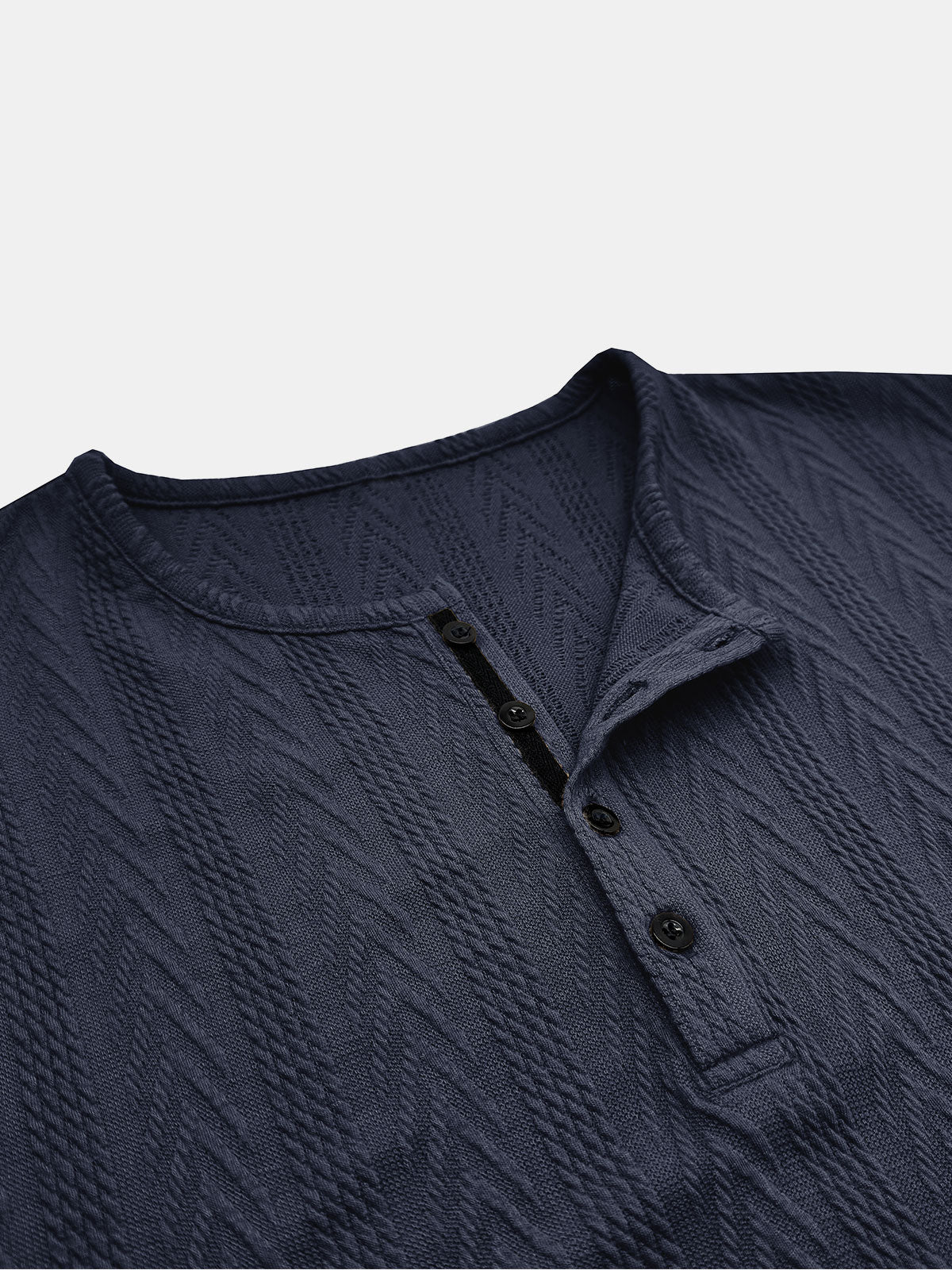 Men's Solid Color Henley Short Sleeve Summer T-Shirt