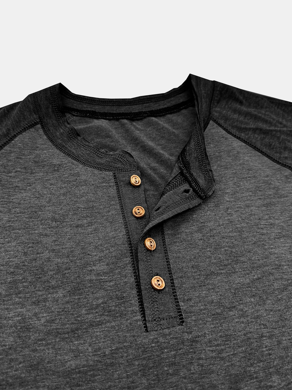 Men's Casual Henley Two-tone Short Sleeve T-Shirt