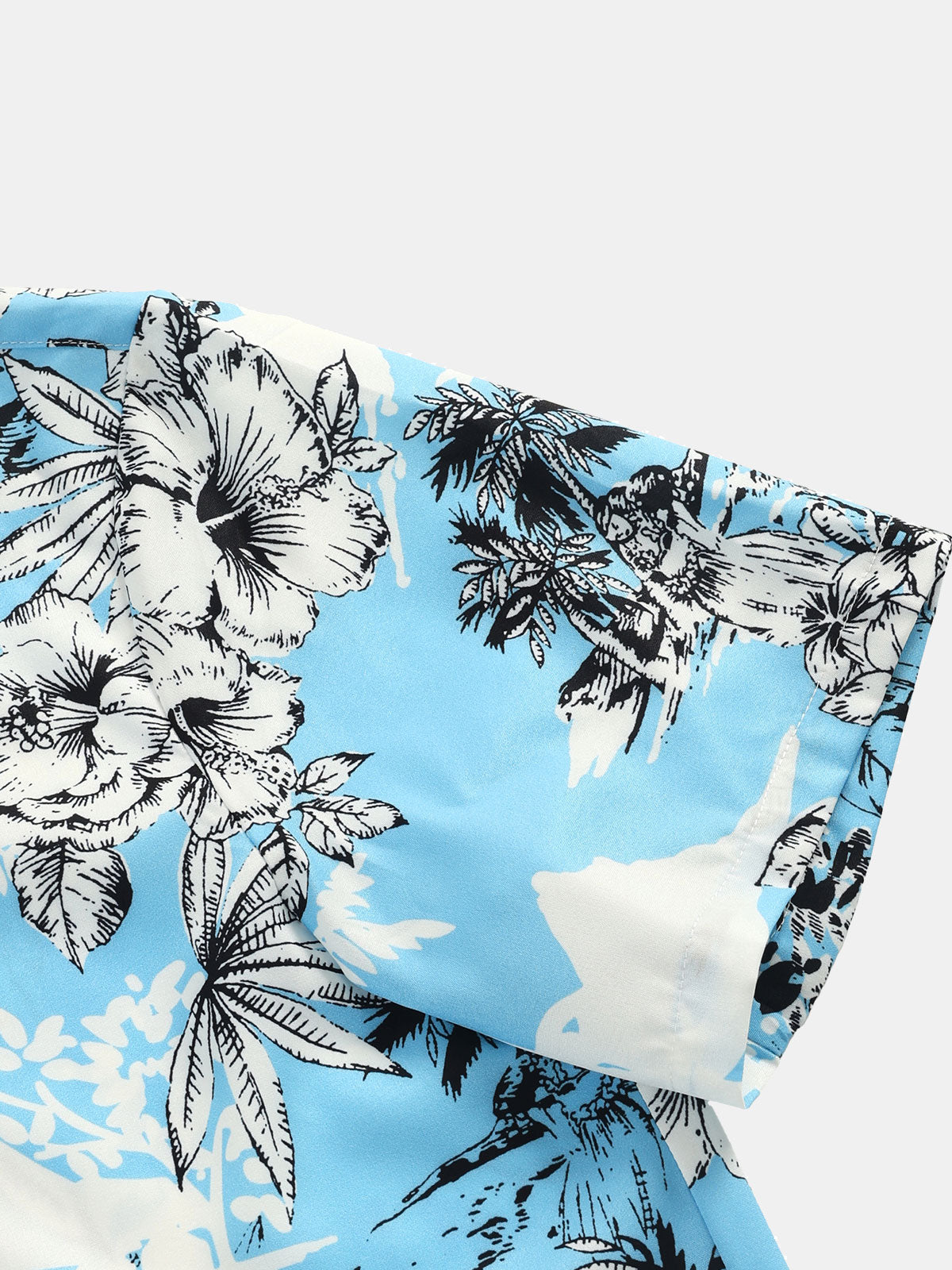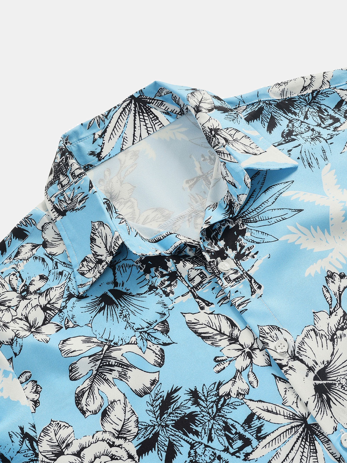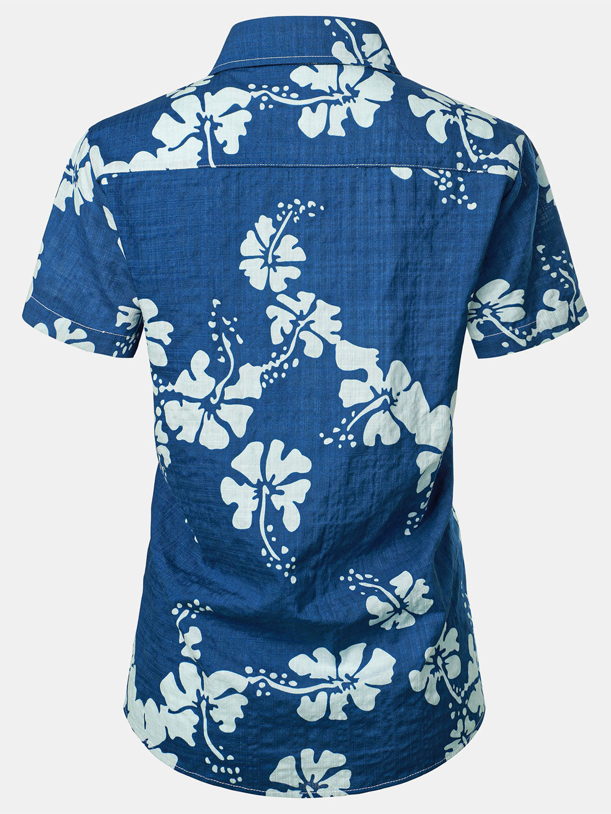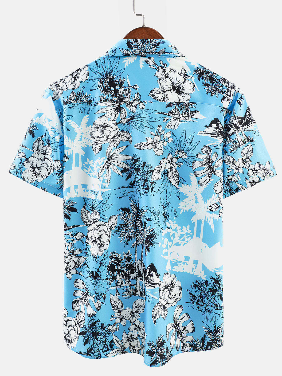 Men's Blue Floral Print Hawaiian Short Sleeve Shirt