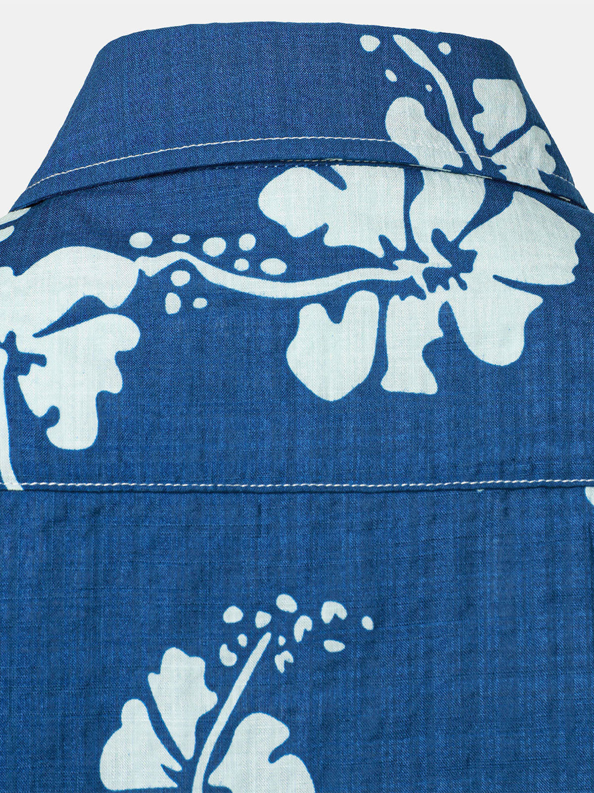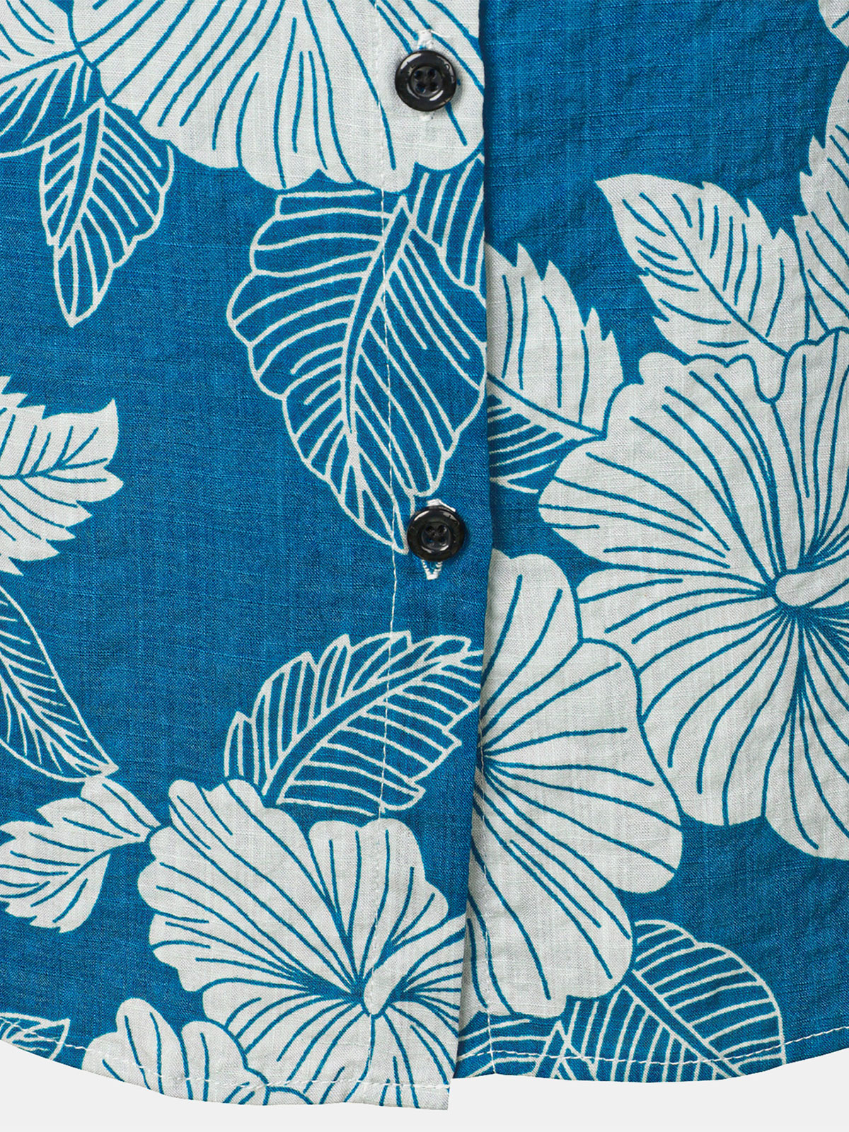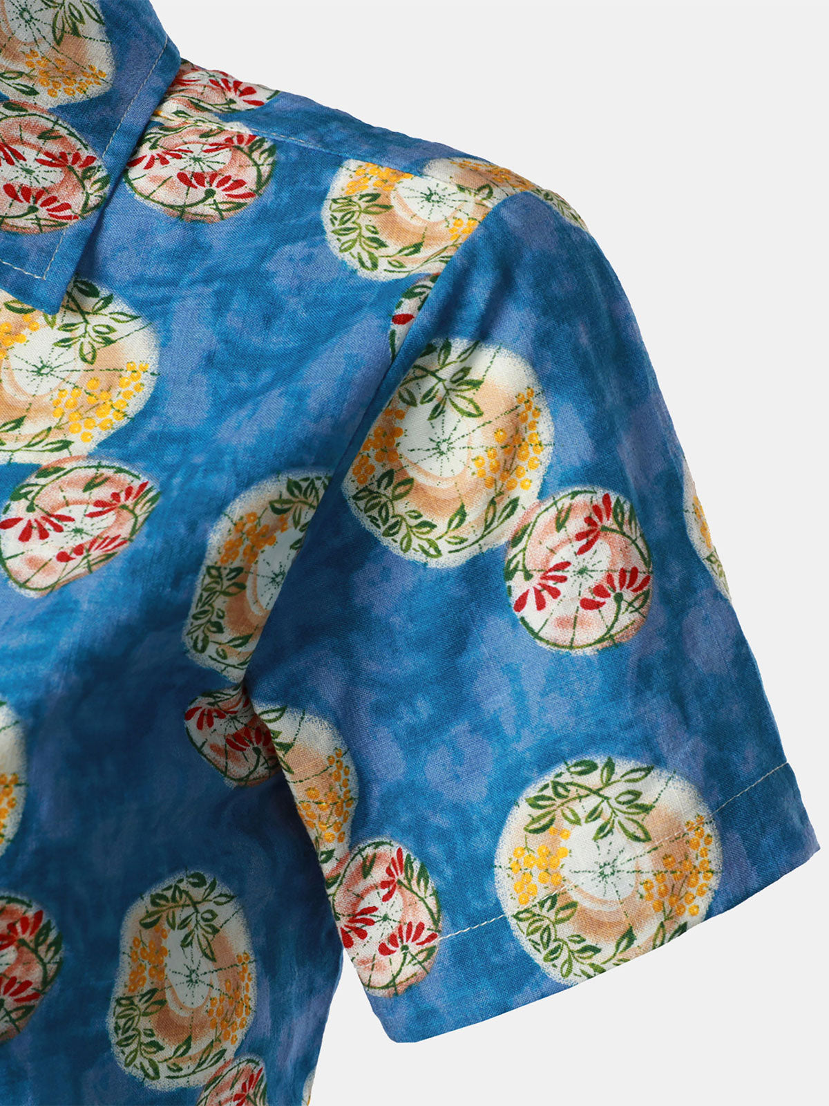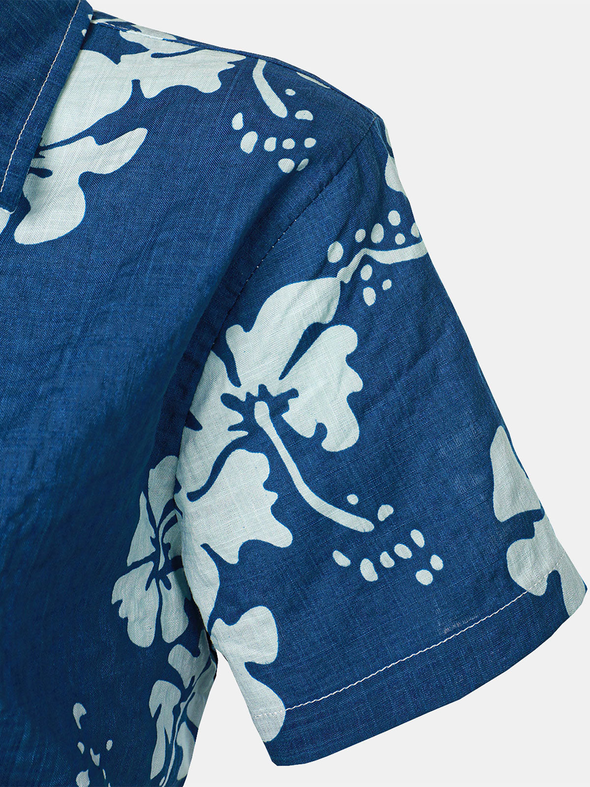 Men's Blue Floral Print Hawaiian Short Sleeve Shirt