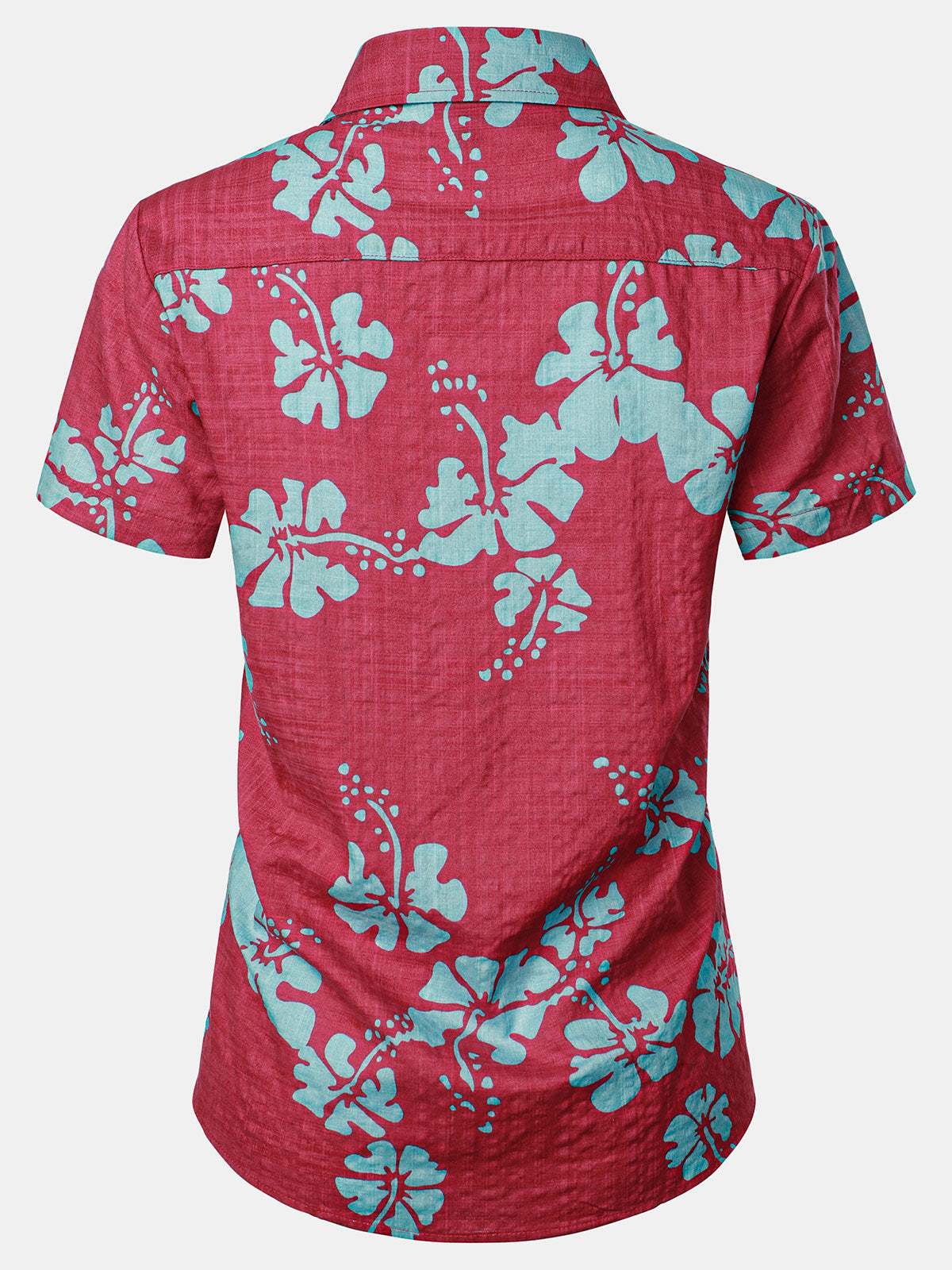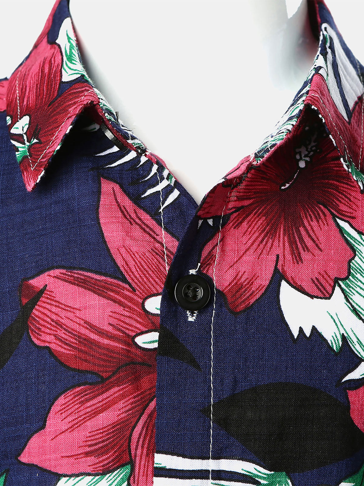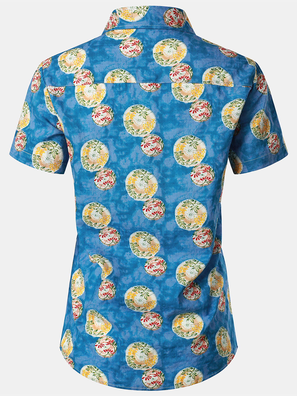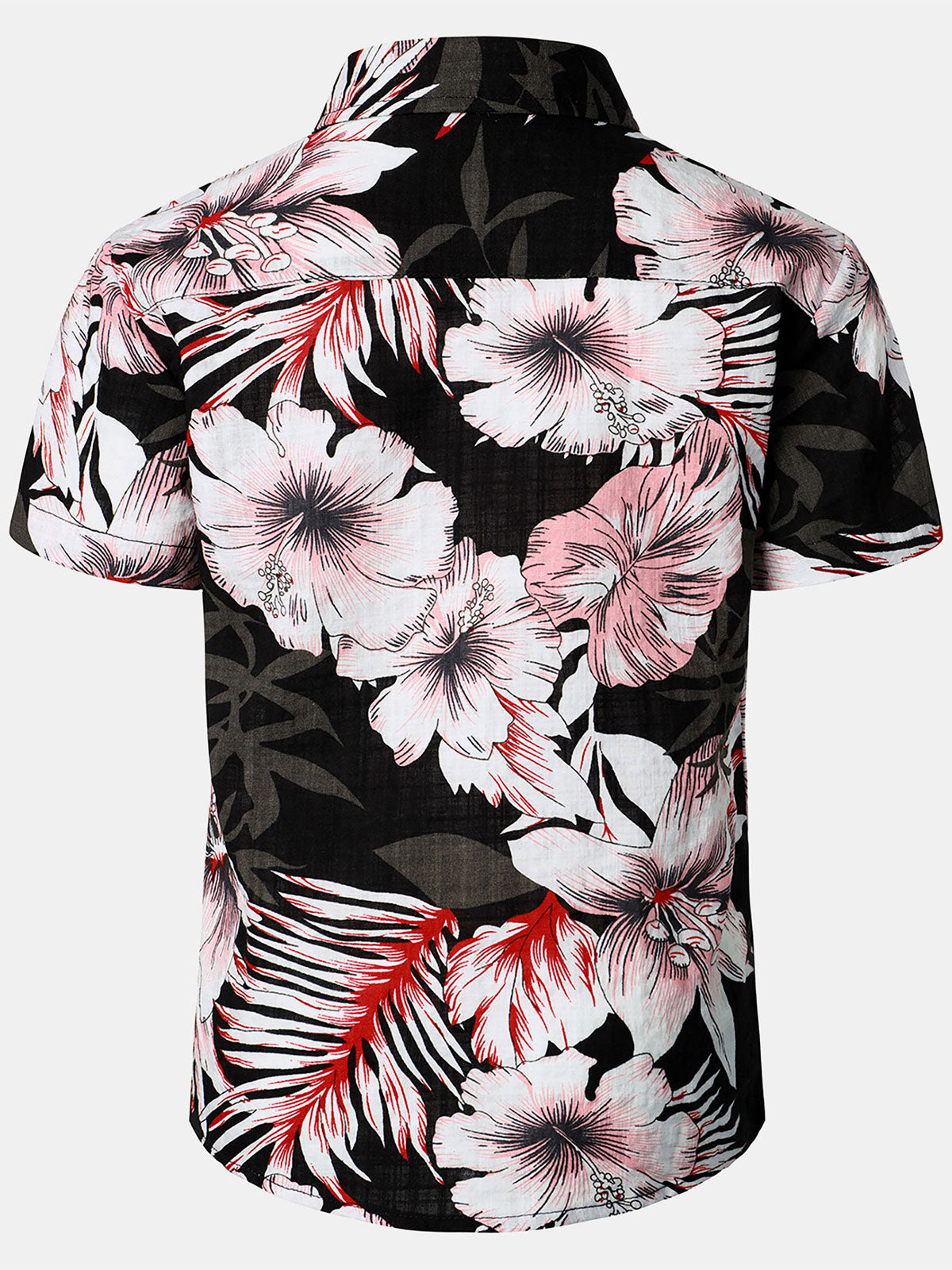 Men's Vintage Floral Holiday Pocket Summer Short Sleeve Button Up Shirt