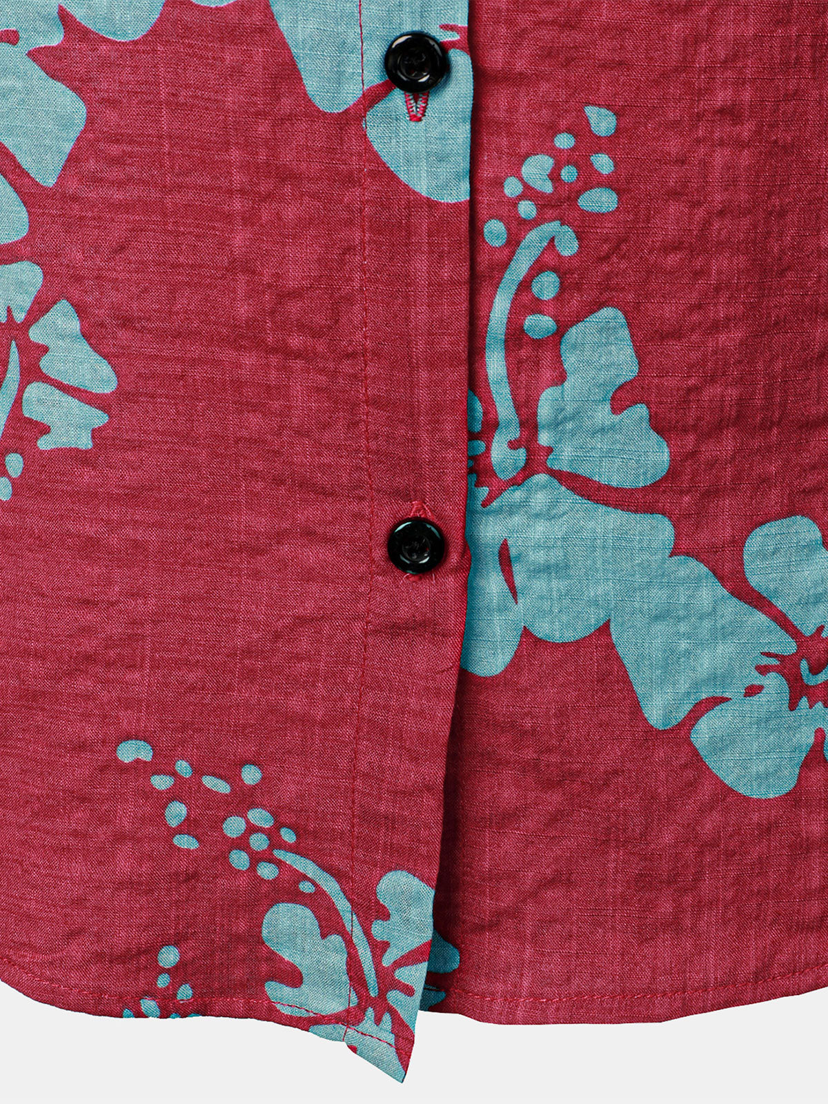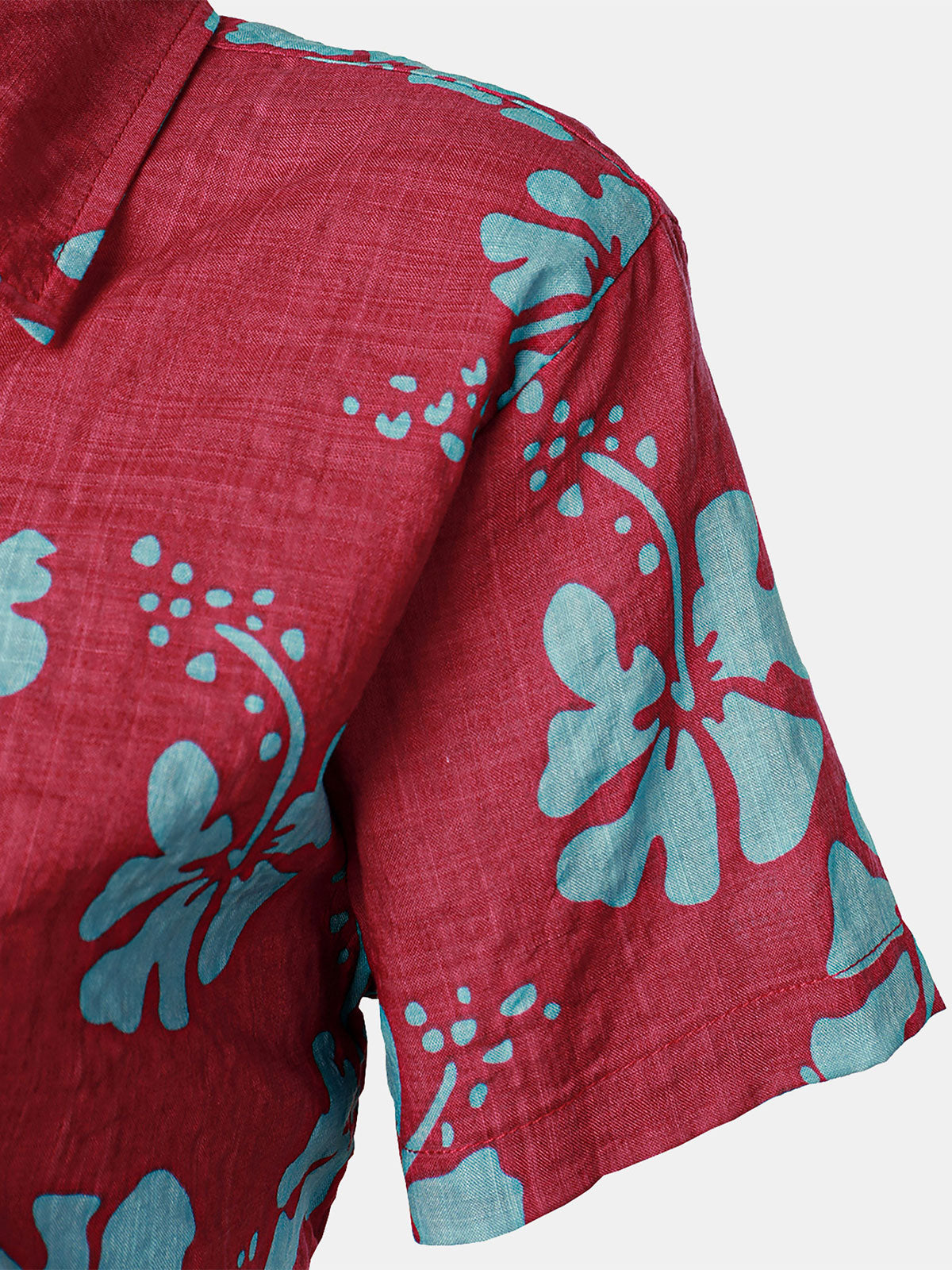 Children's Hawaiian Floral Print Tropical Aloha Holiday Beach Short Sleeve Shirt