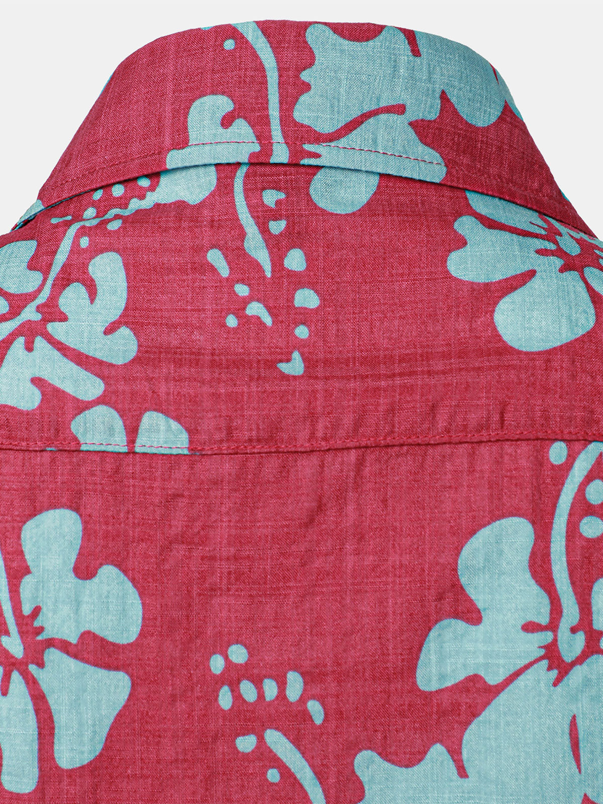 Men's Red Flower Tropical Hawaiian Matching Shirt and Shorts Set