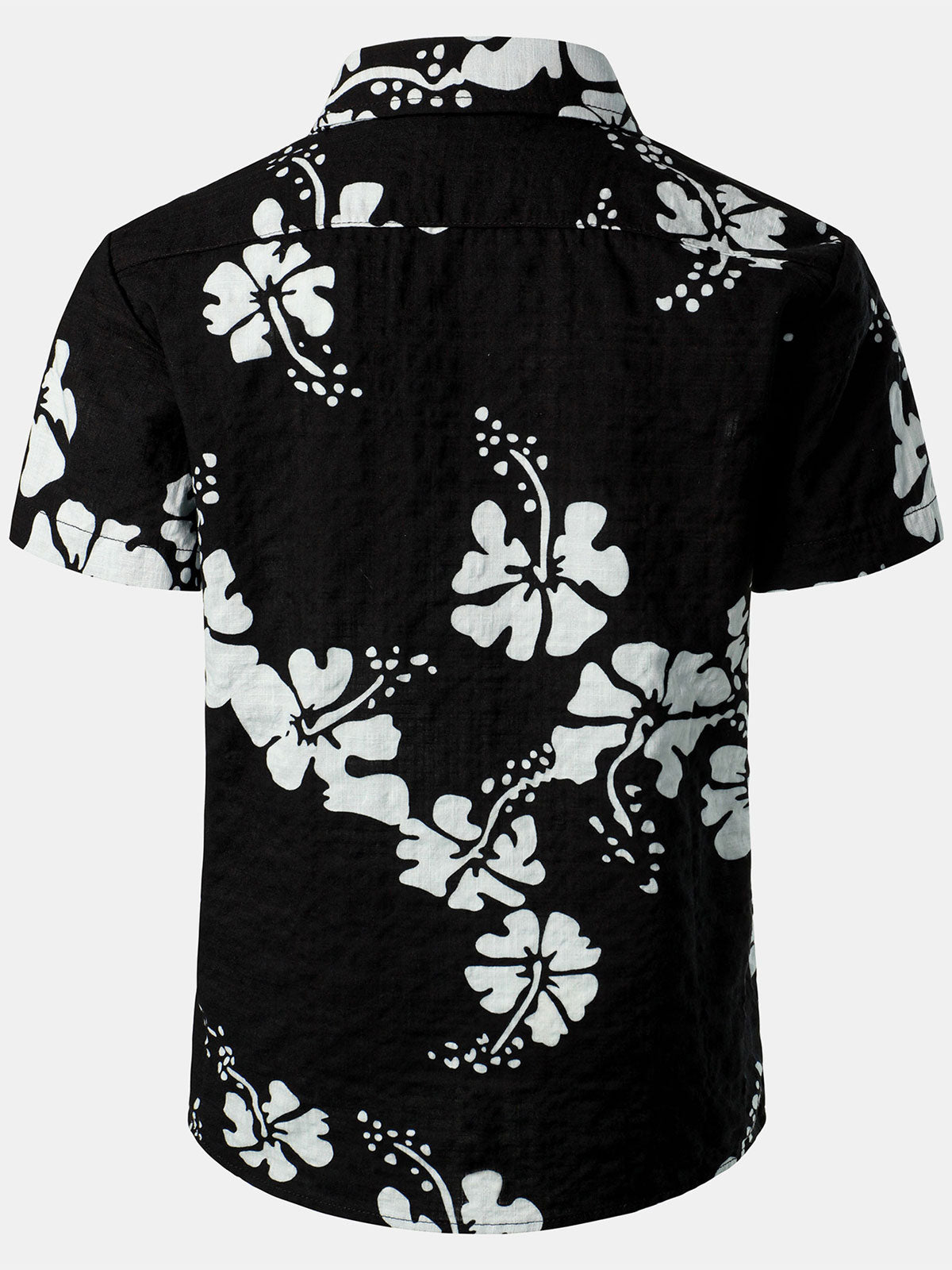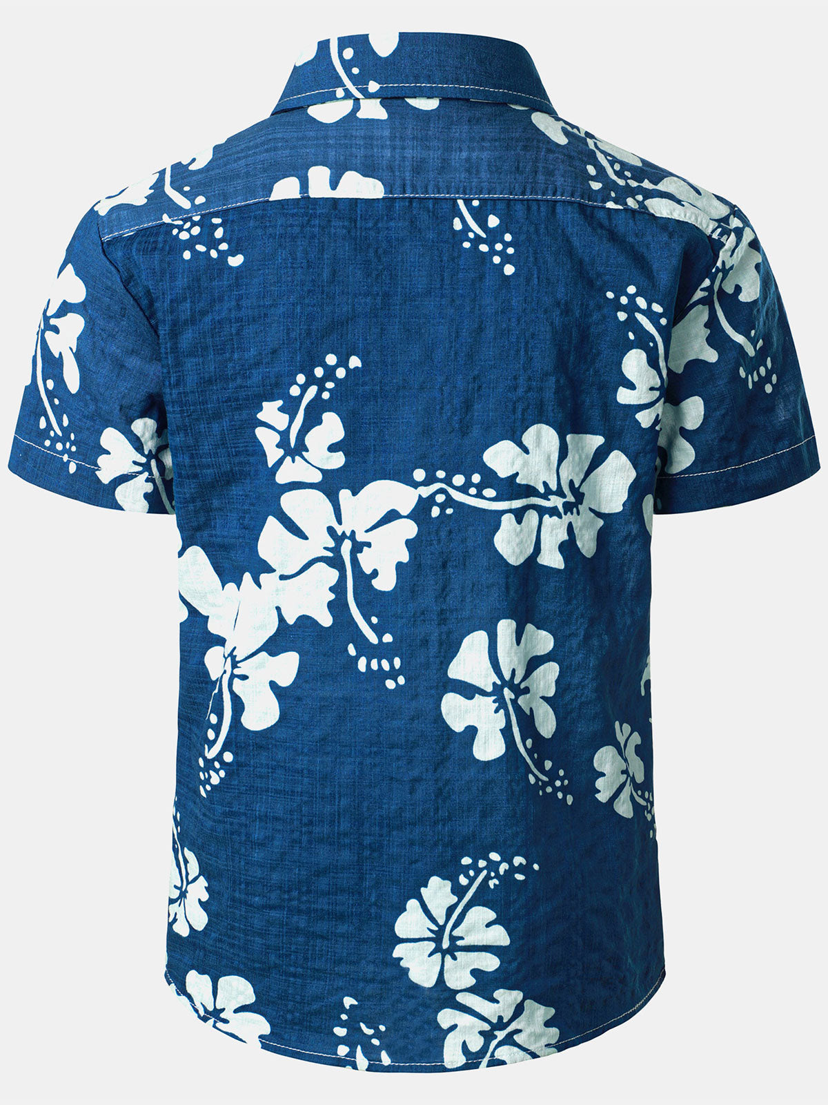 Children's Hawaiian Floral Print Tropical Aloha Holiday Summer Beach Short Sleeve Shirt