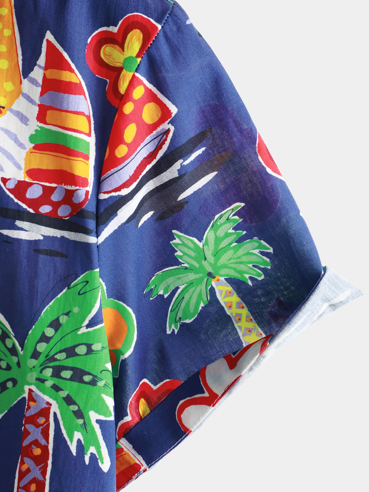 Men‘s 100% Cotton Tropical Summer Beach Short Sleeve Button Shirt