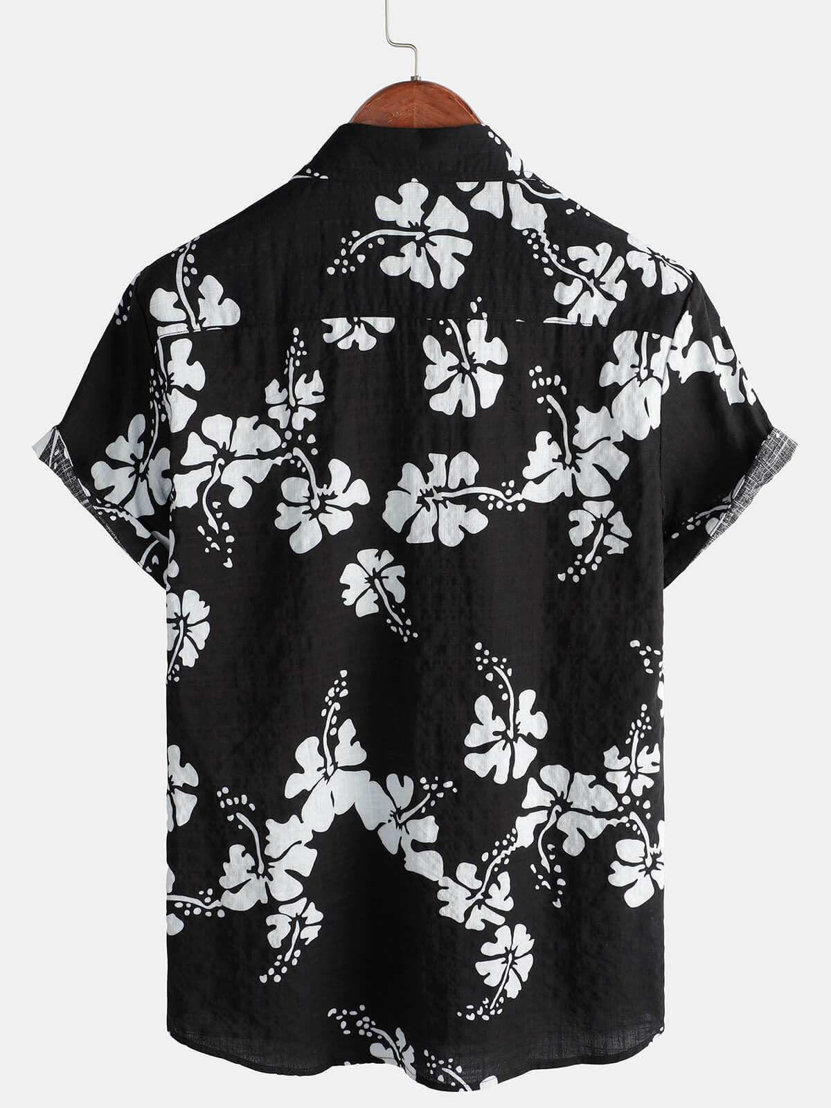 Men's Black Floral Short Sleeve Button Up Beach Tropical Hawaiian Shirt