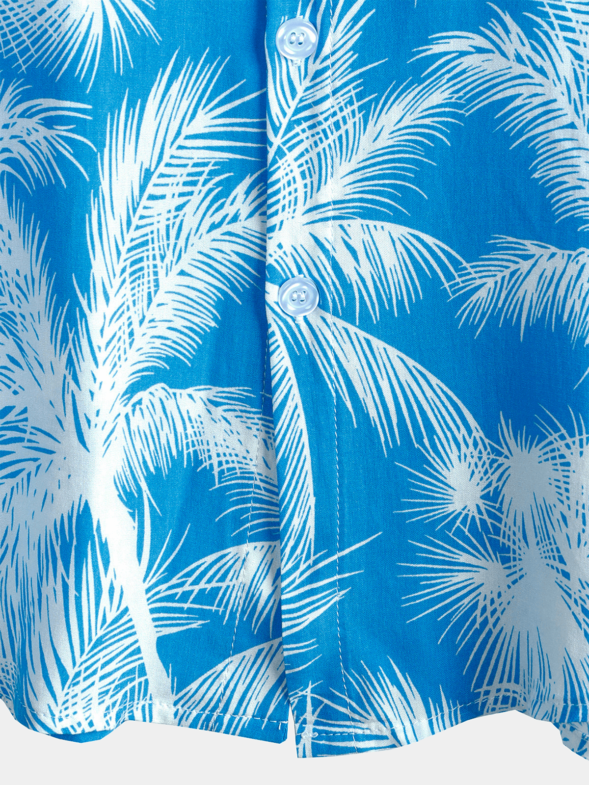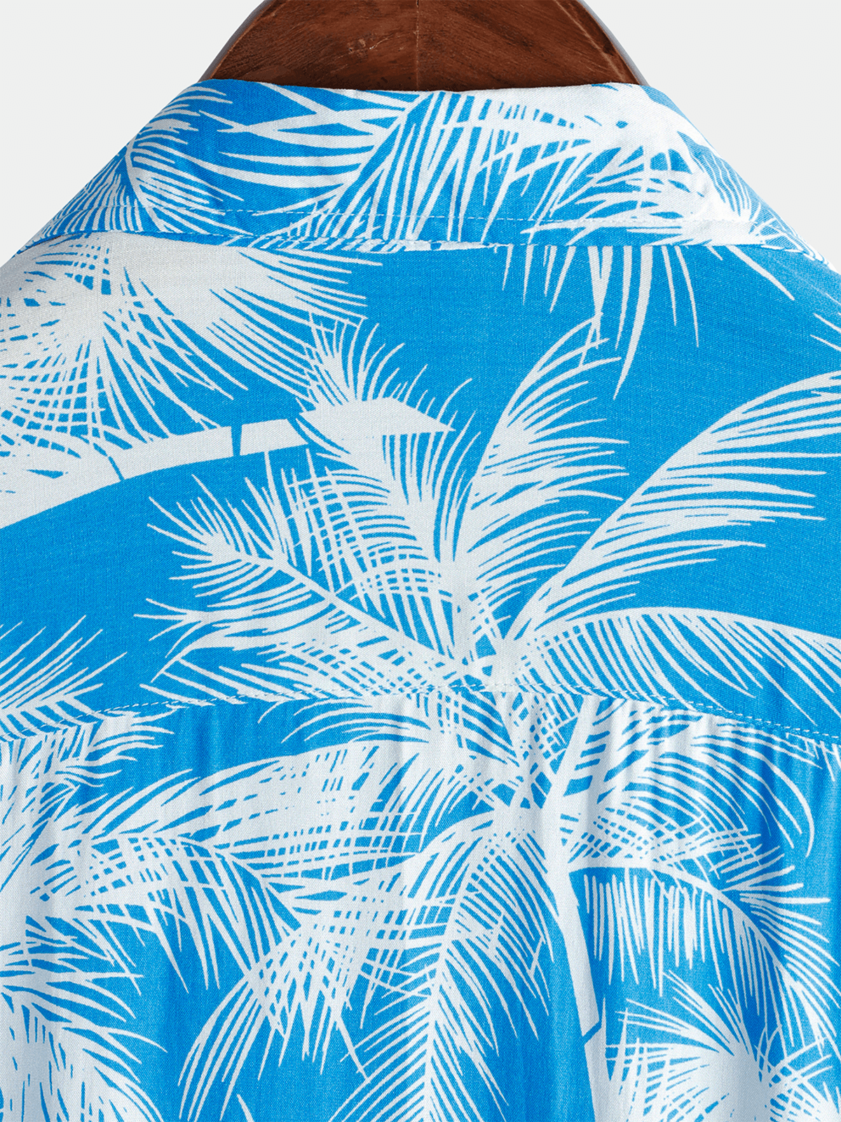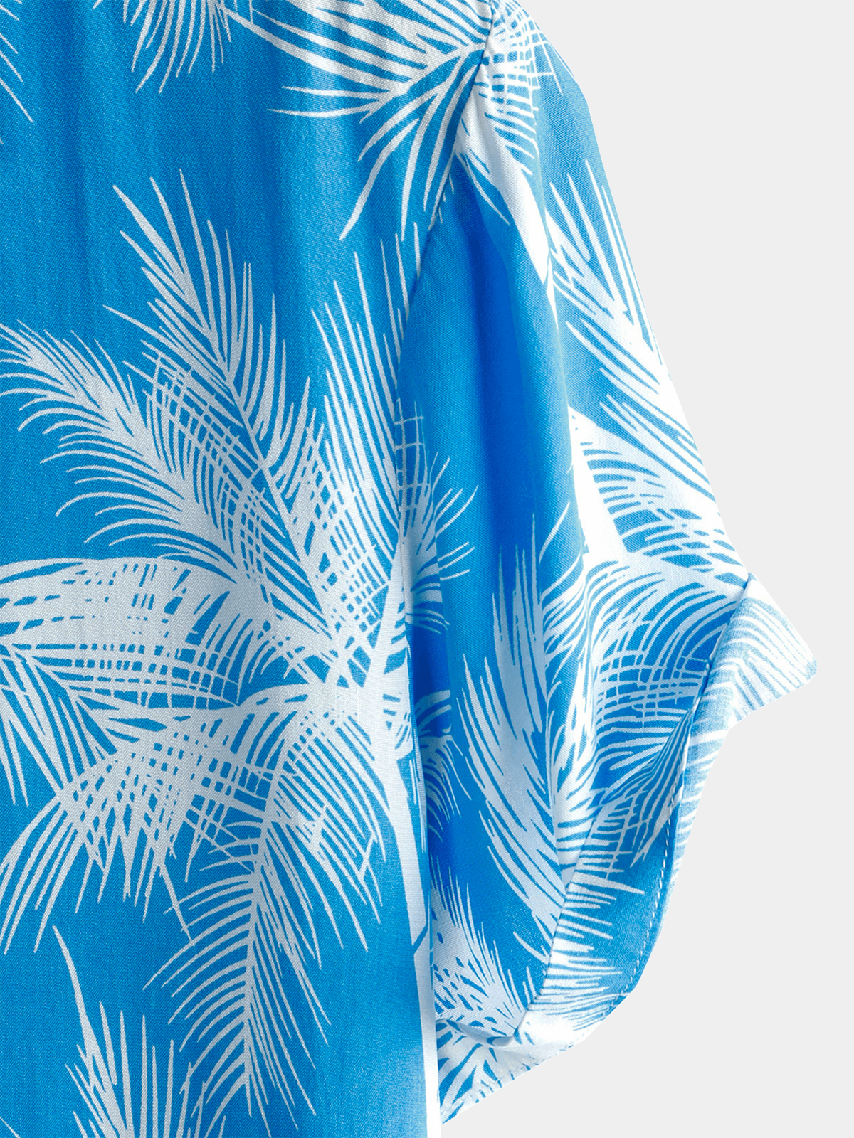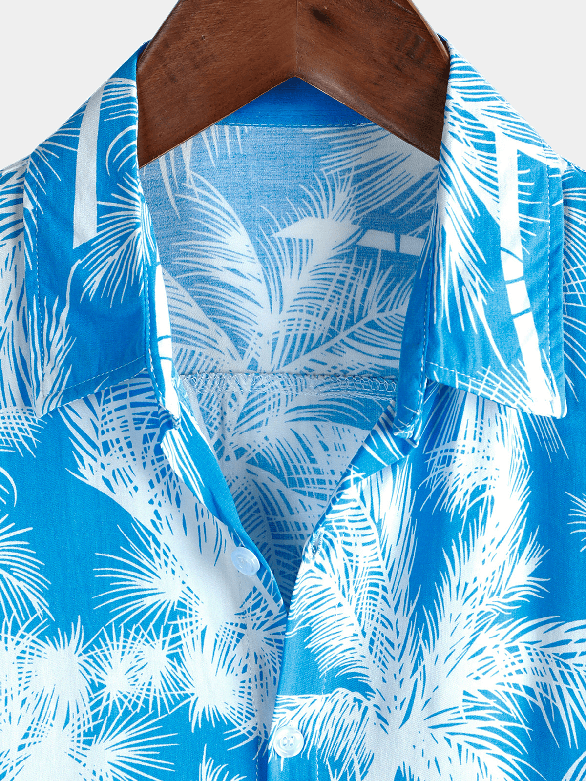 Men's Blue Tropical Print Beach Short Sleeve Shirt
